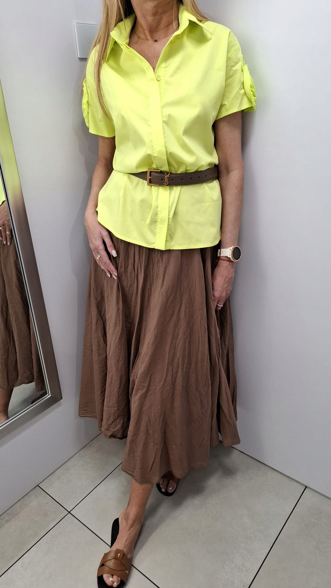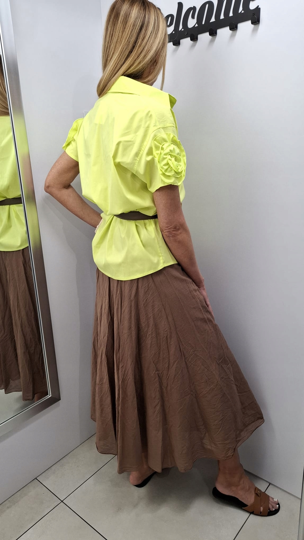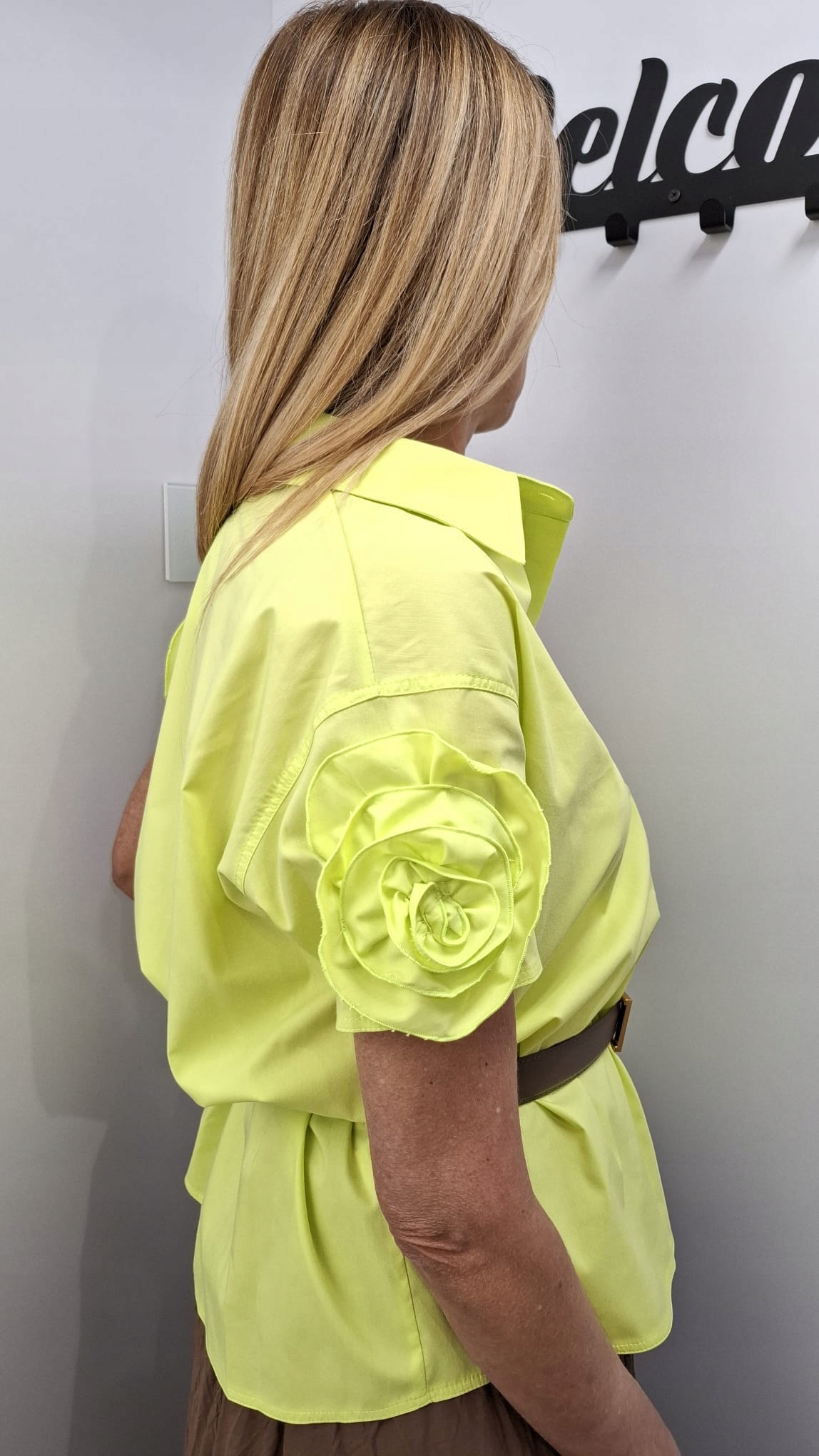 COCOMORE Bluzka Koszula z Kwiatem Limonka 40/L Nowość