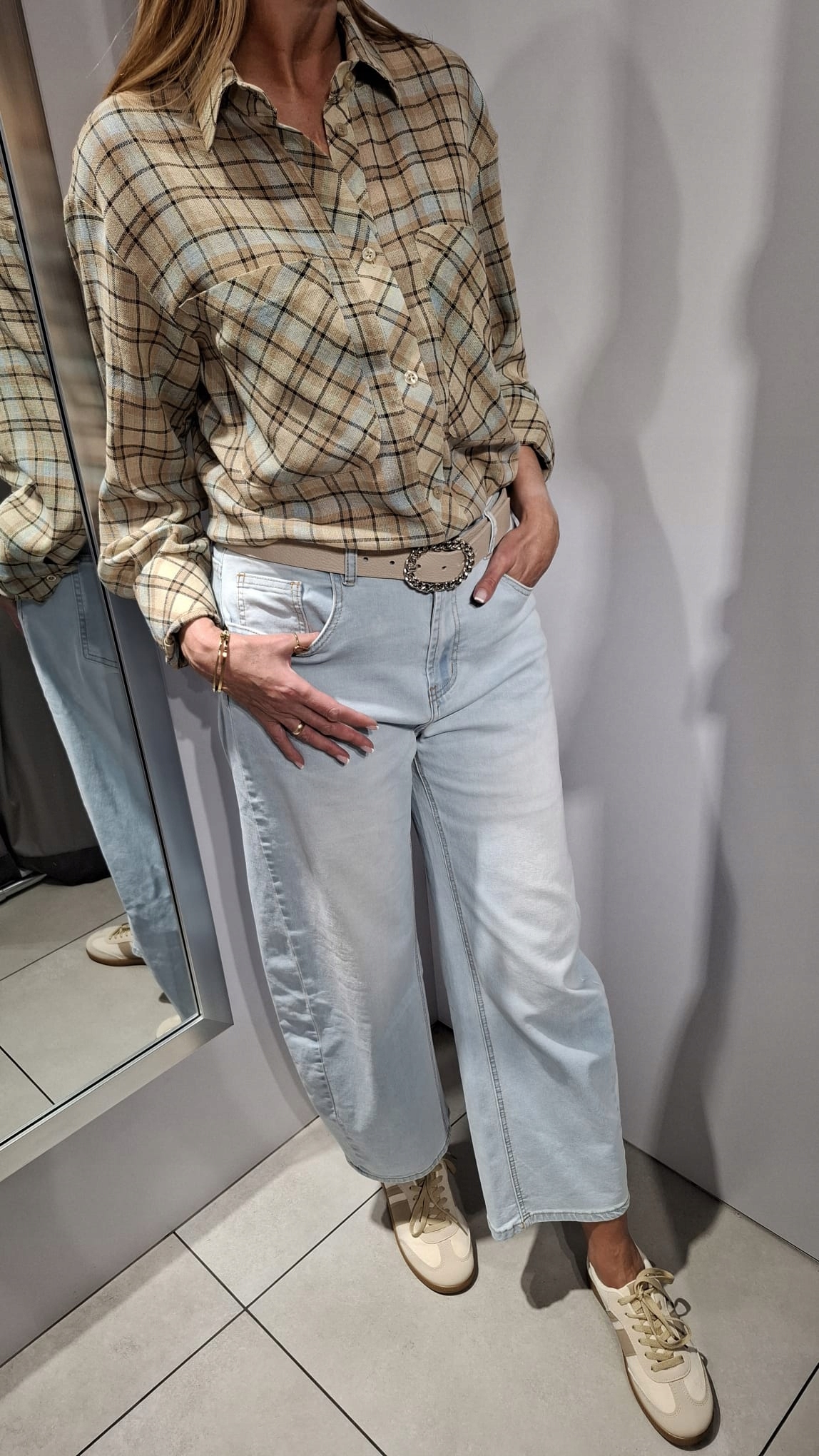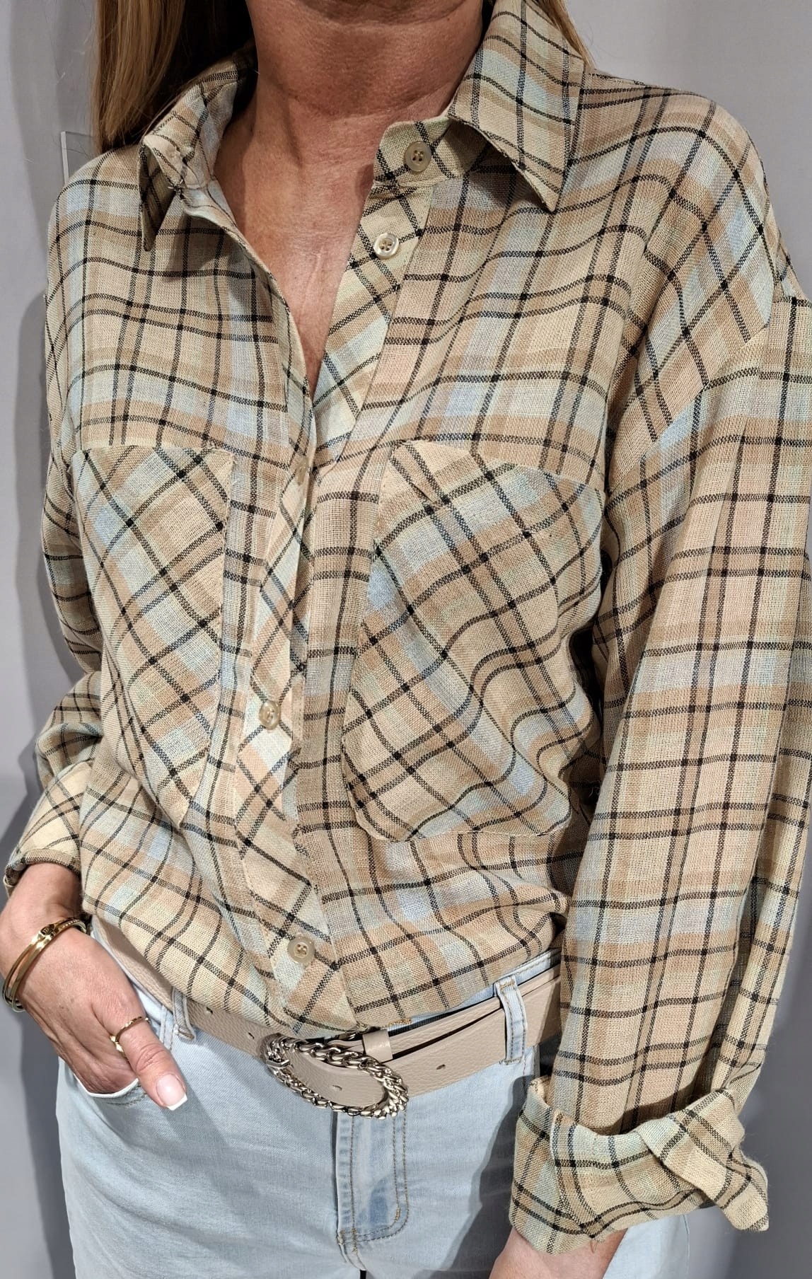 LEMONADA Koszula Bluzka w Kratkę Beżowy + Błękitny UNI Nowość