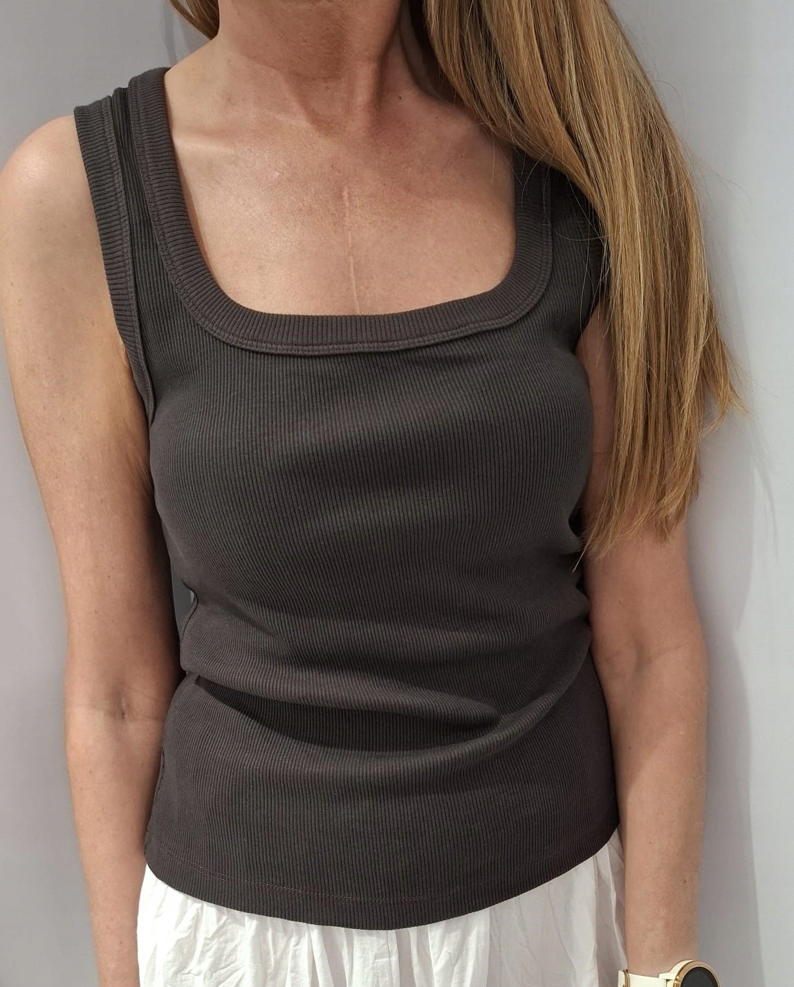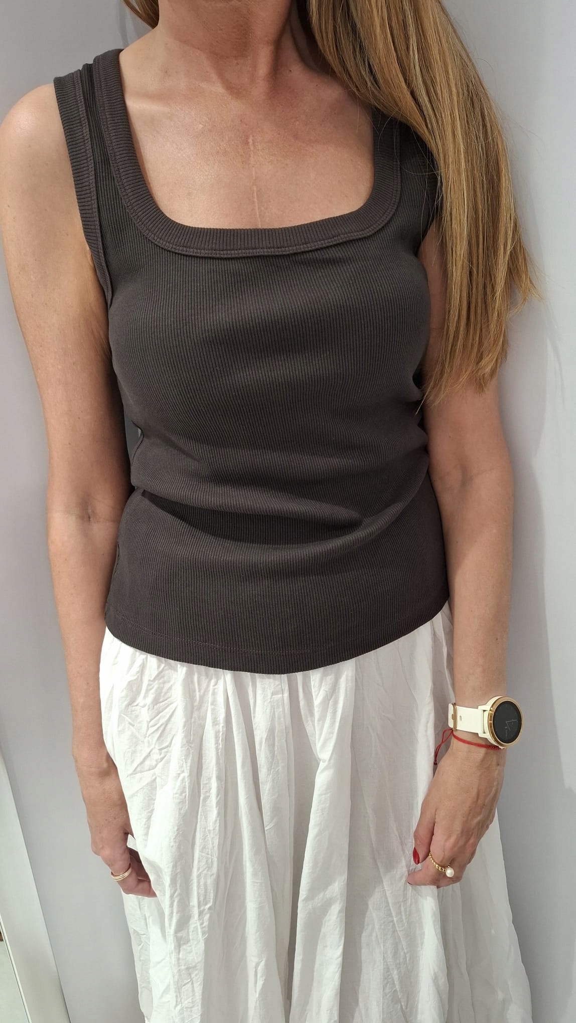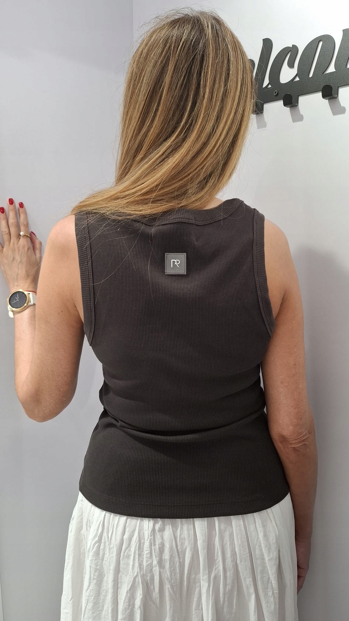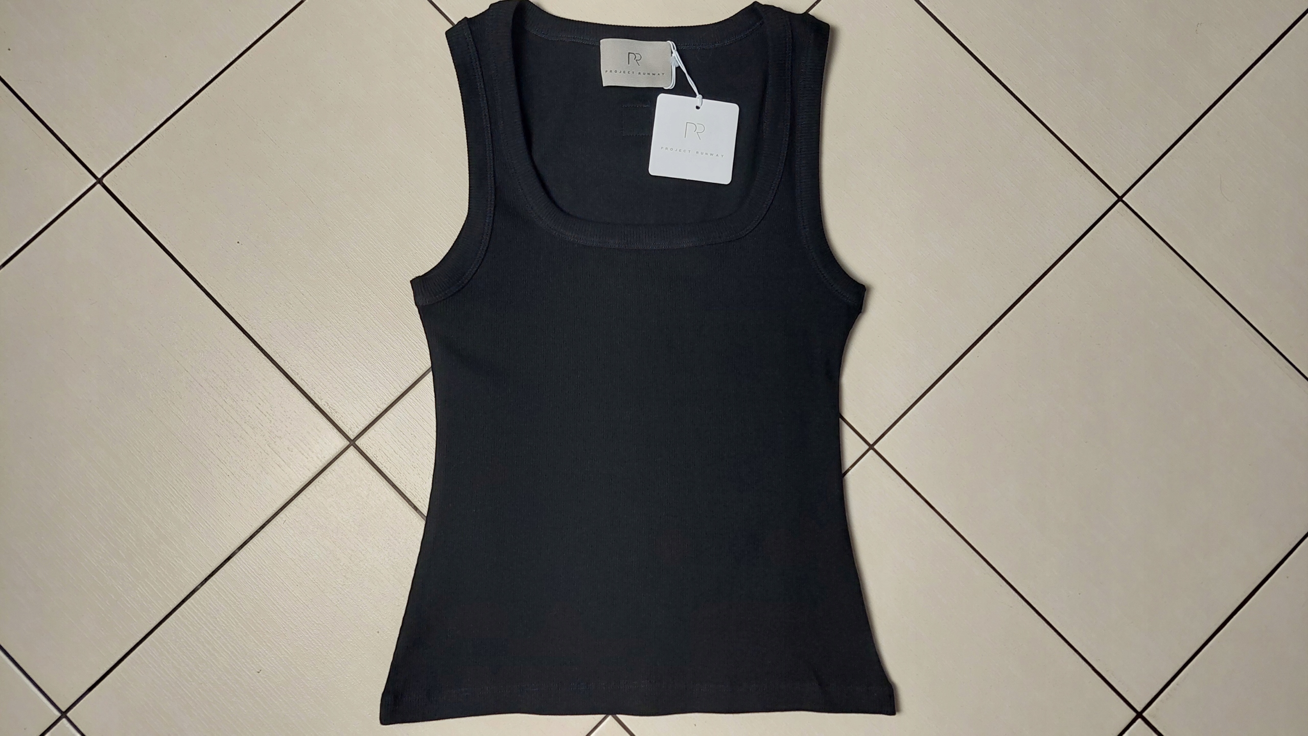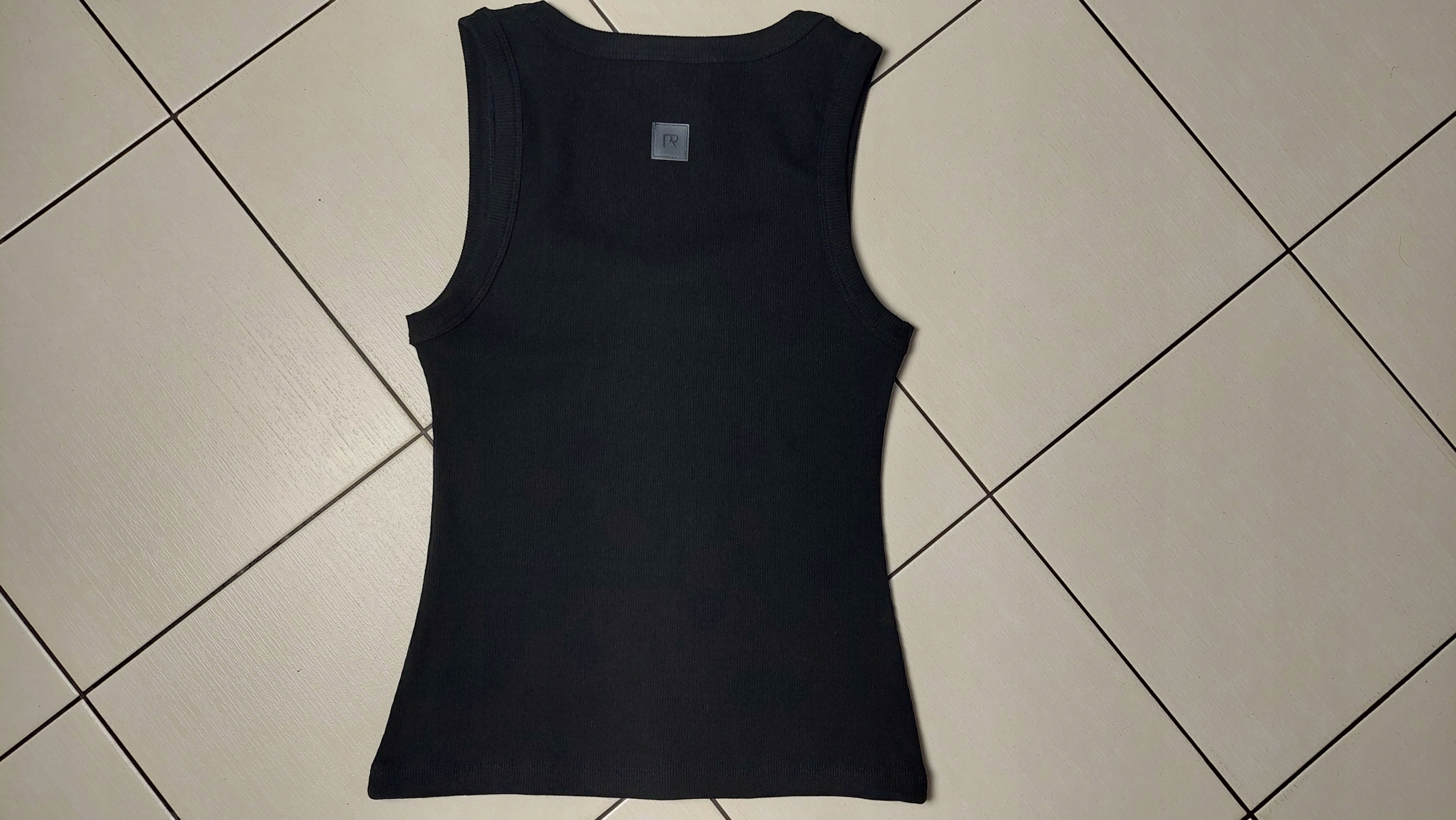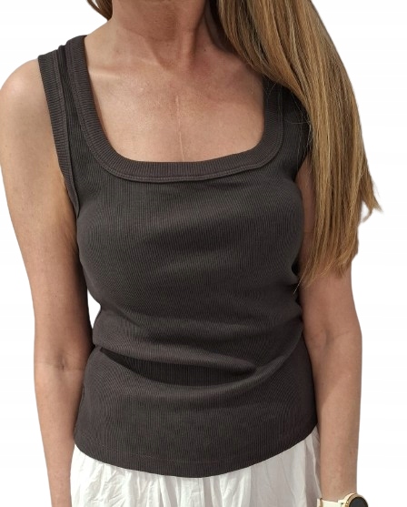 - Rewelacyjna bluzka na ramiączkach. Wykonana z wysokiej jakości prążkowanego materiału. Na plecach znajduje się naszywka z logo producenta