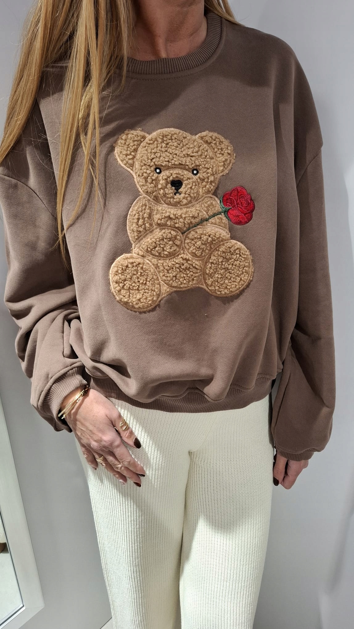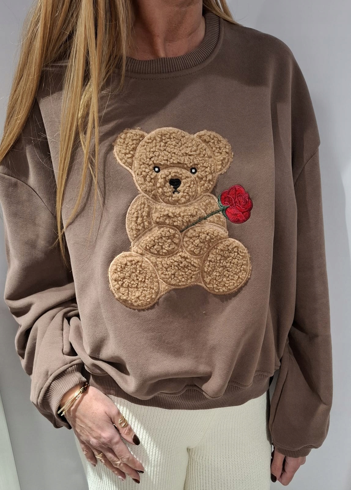 - Oversize bluza wykona z miłego i miękkiego materiału. Na przodzie aplikacja z pluszowym misiem