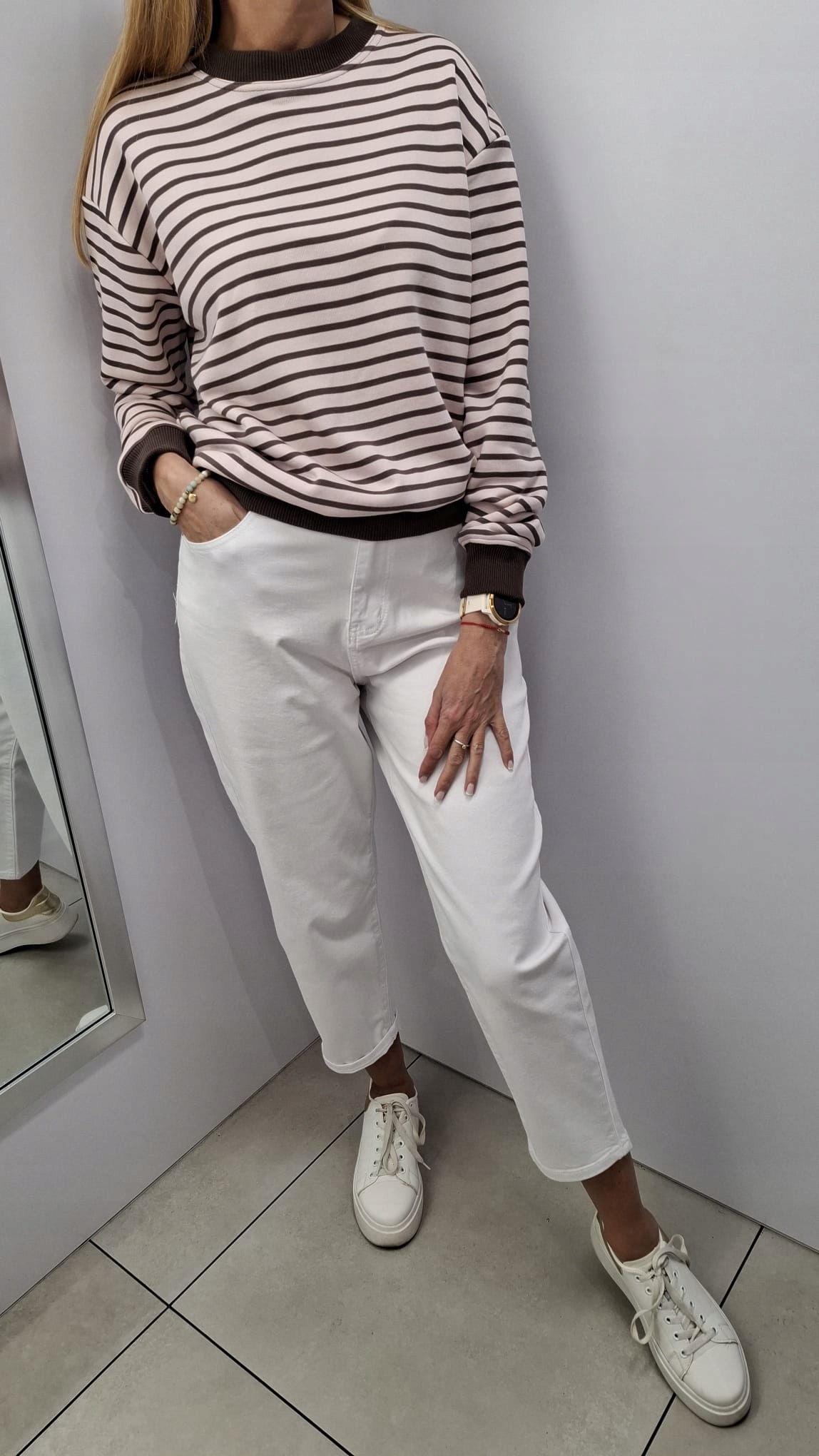 COCOMORE Bluza Dresowa w Paski Blady Róż + Brązowy 40/L NEW
