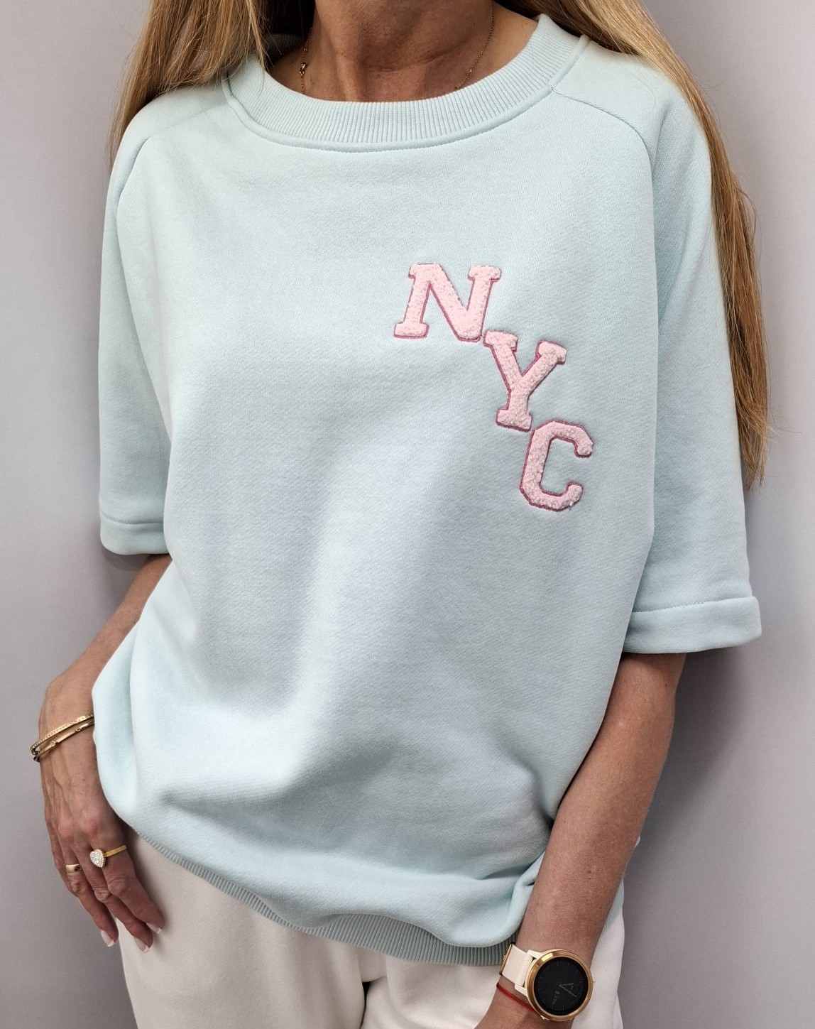 COCOMORE Bluza Dresowa z Naszywką NYC Błękitna 38/M NEW