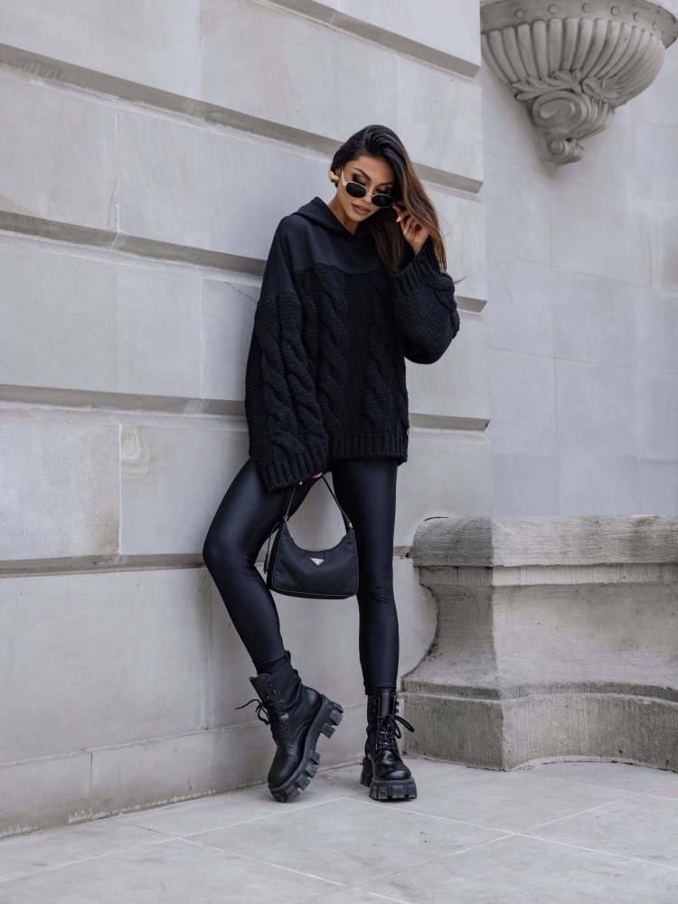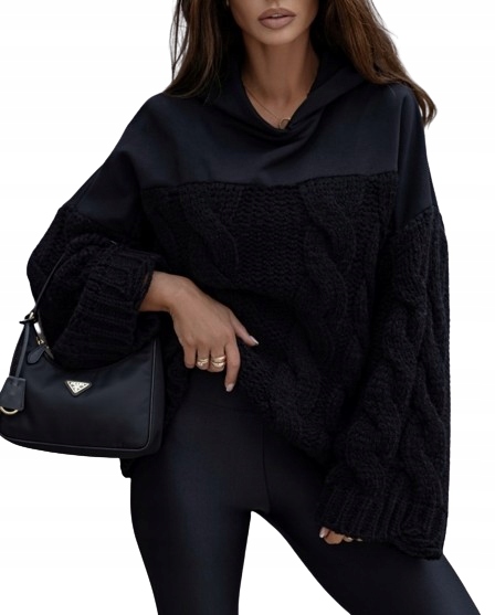 COCOMORE Sweter Bluza z Kapturem Oversize Czarny NEW