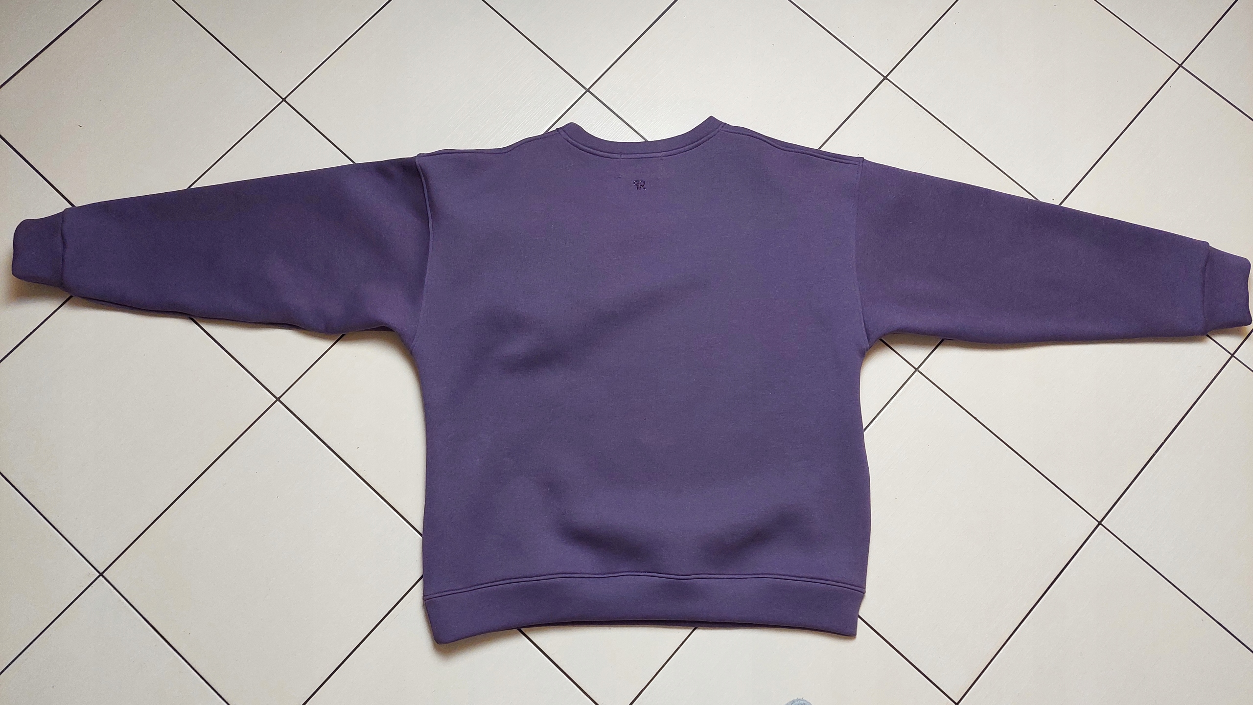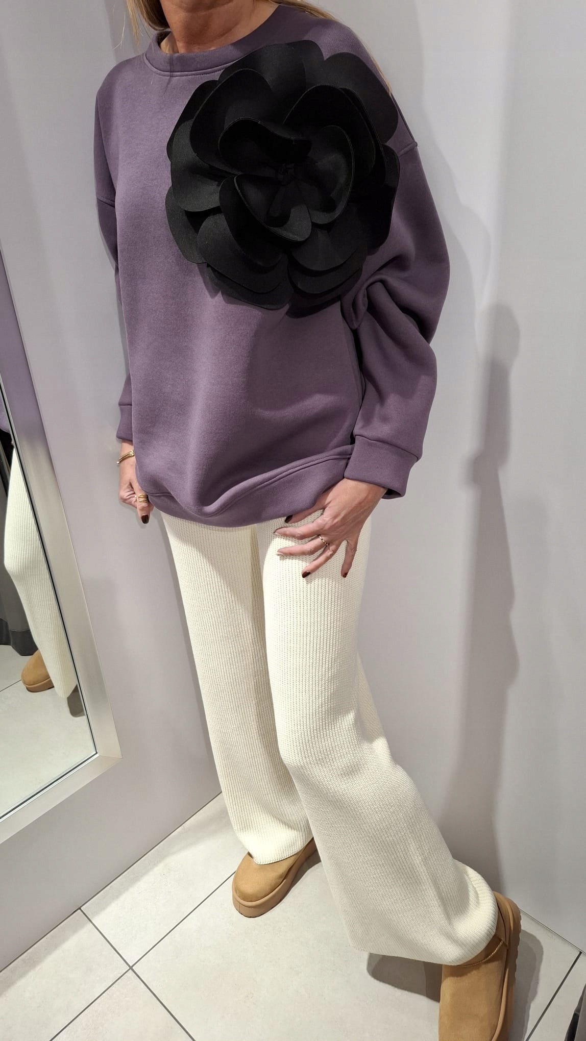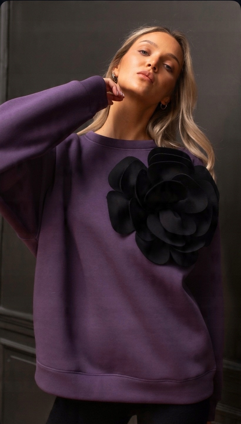 - Rewelacyjna dresowa bluza. Luźny krój oversize. Charakteru nadaje modna naszywka w kształcie kwiatu