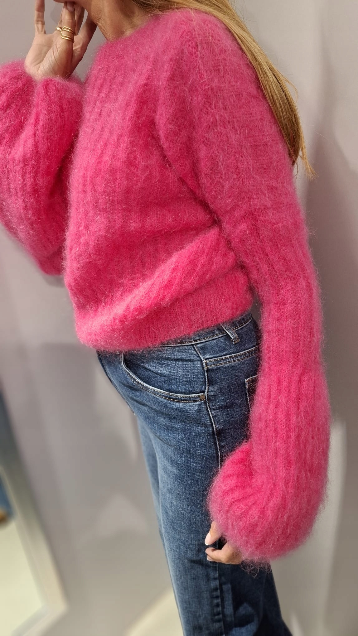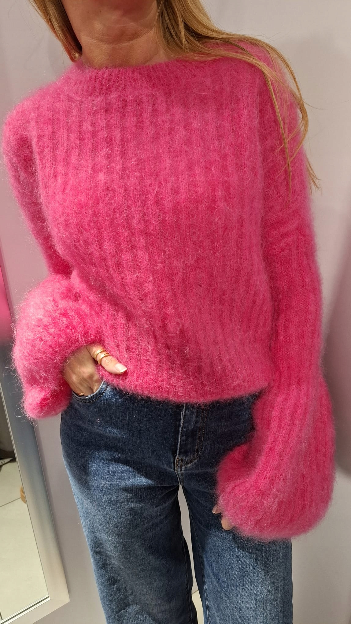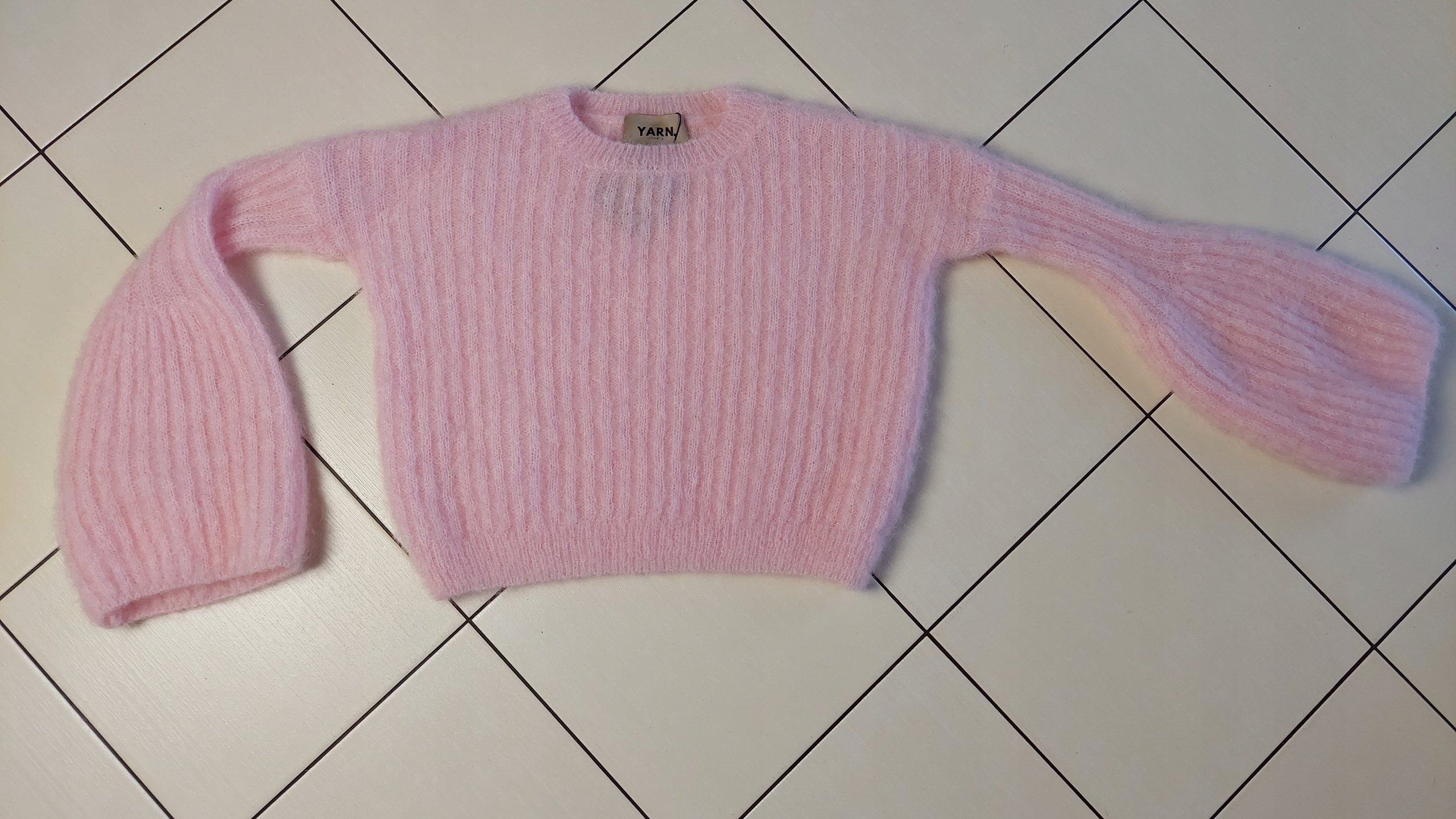 - Rewelacyjny sweter. Wykonany z miękkiej i miłej przędzy premium. Krótki krój. Oryginalności nadają wyjątkowo długie i rozszerzane rękawy