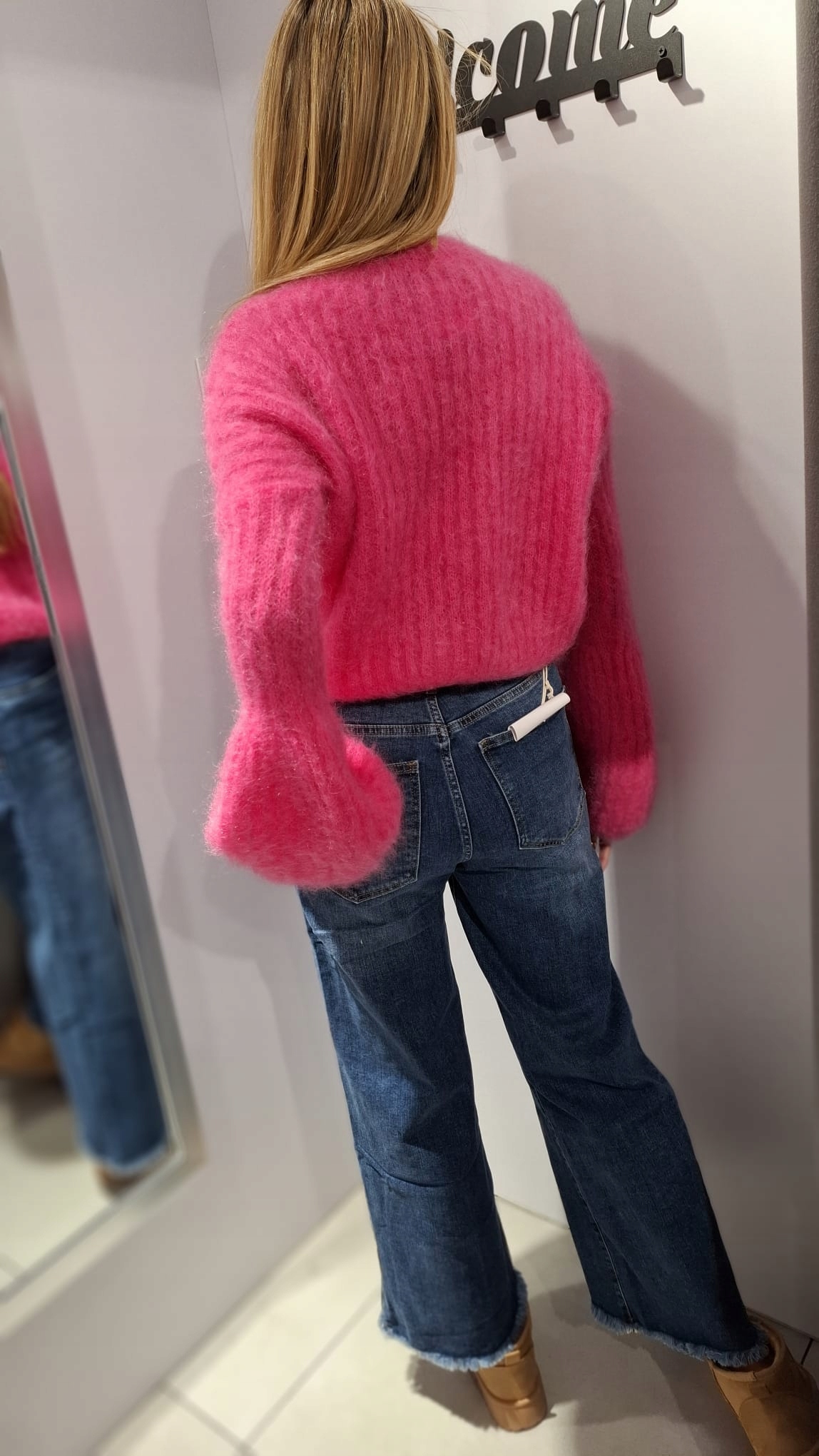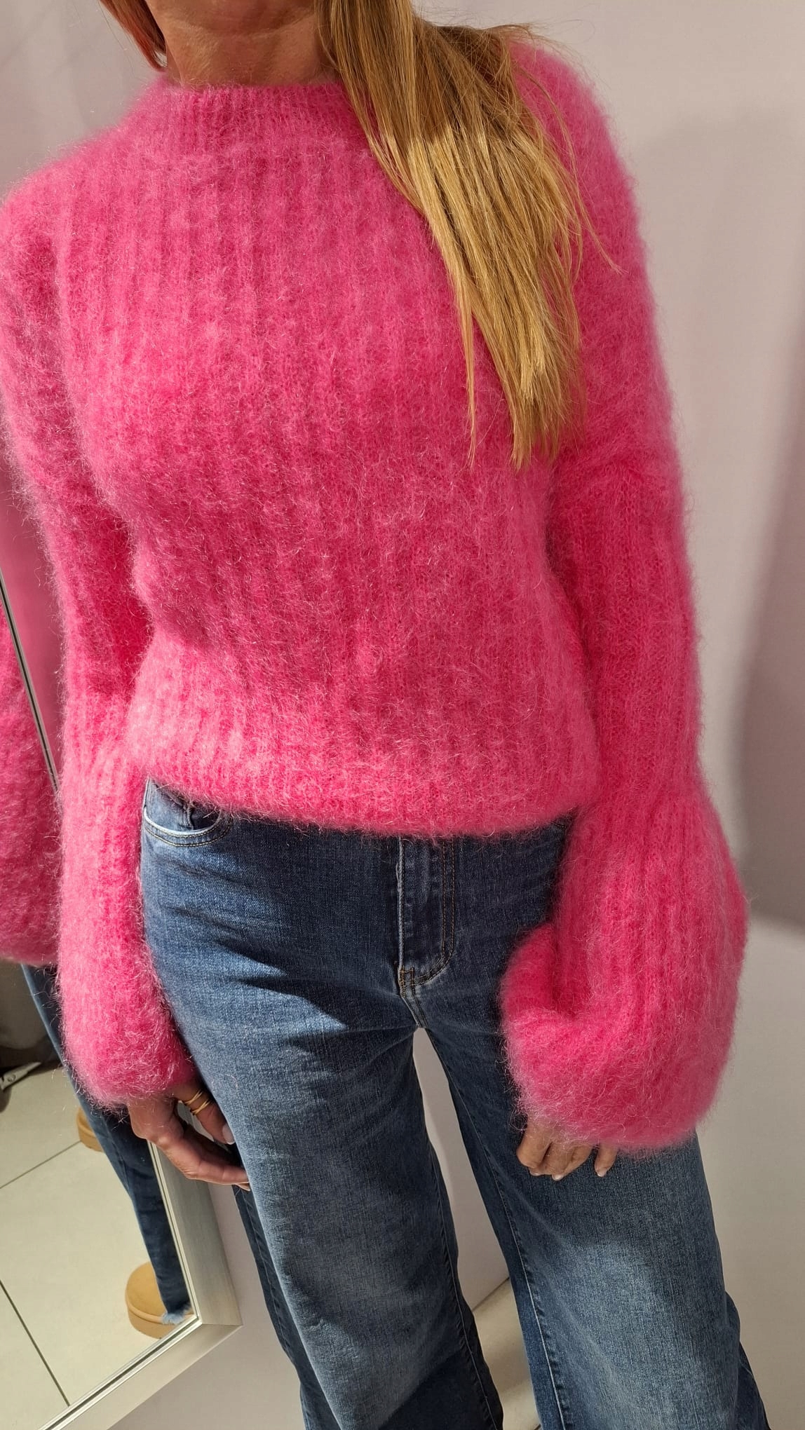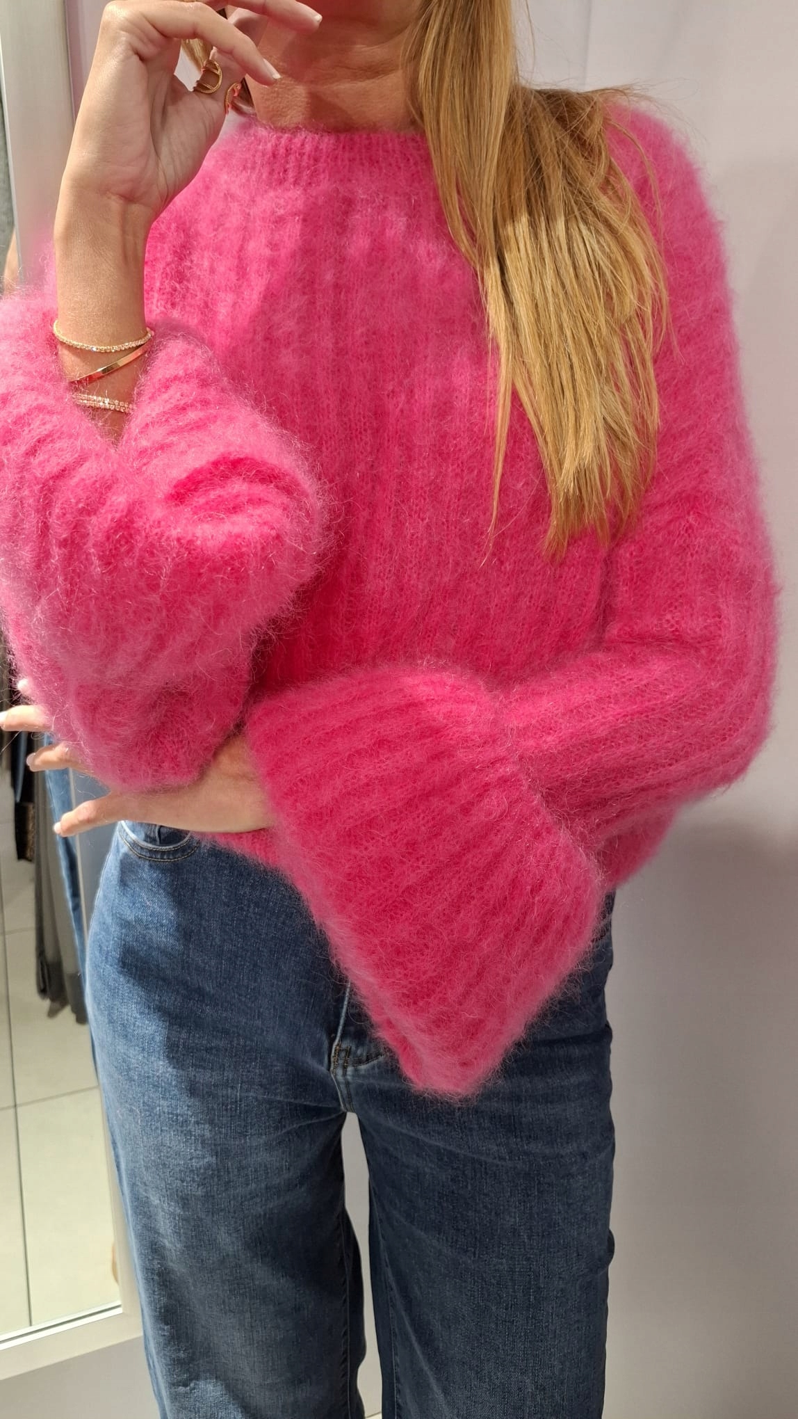 - Rewelacyjny sweter. Wykonany z miękkiej i miłej przędzy premium. Krótki krój. Oryginalności nadają wyjątkowo długie i rozszerzane rękawy