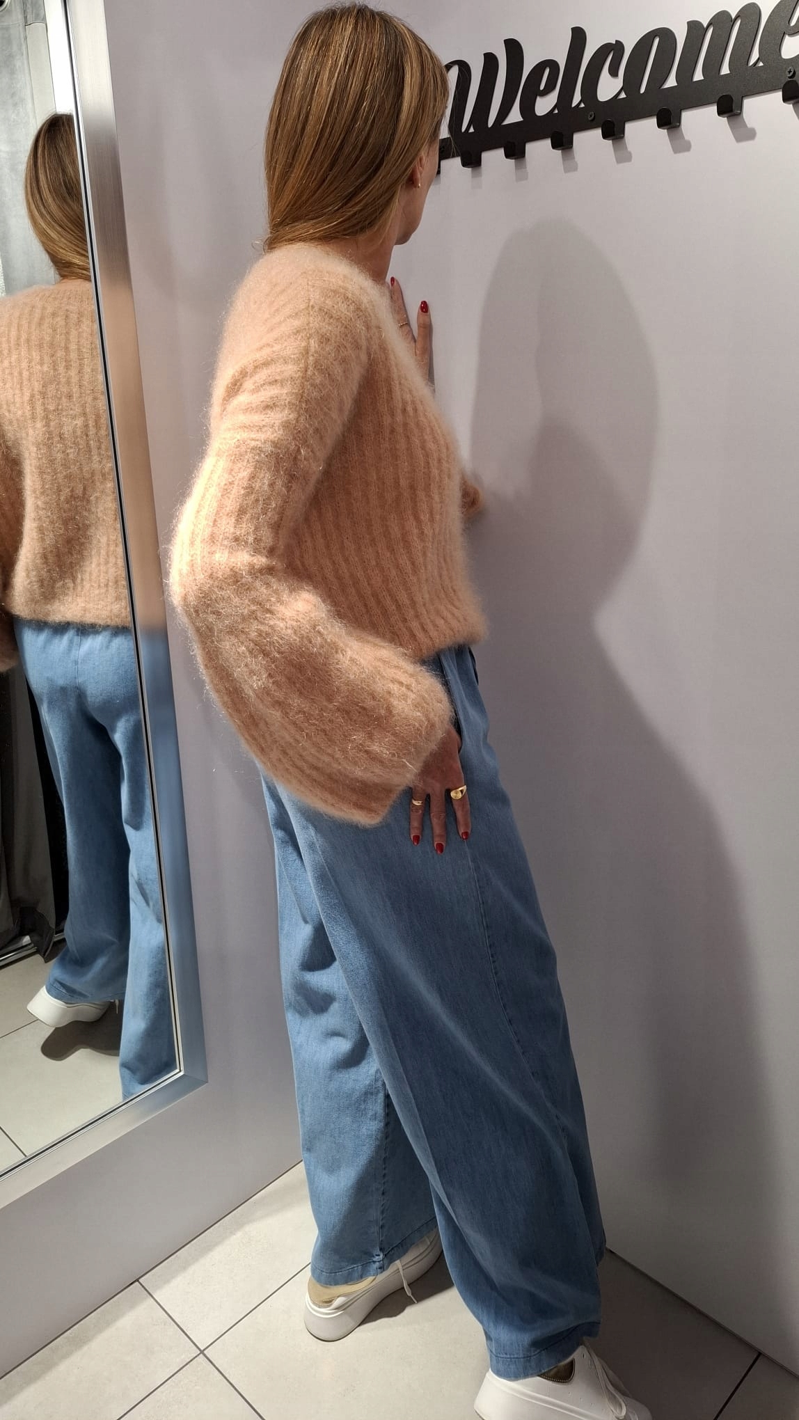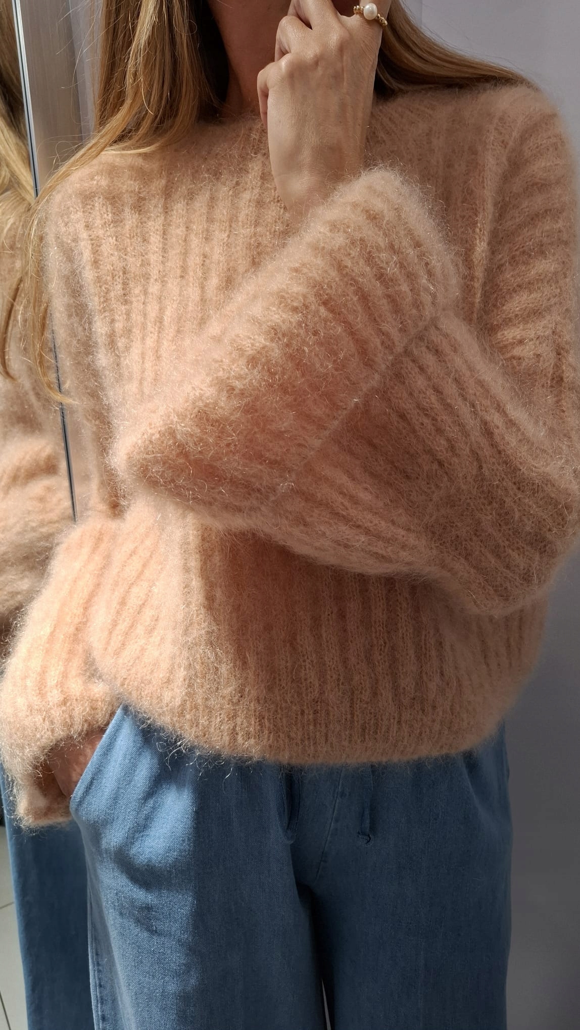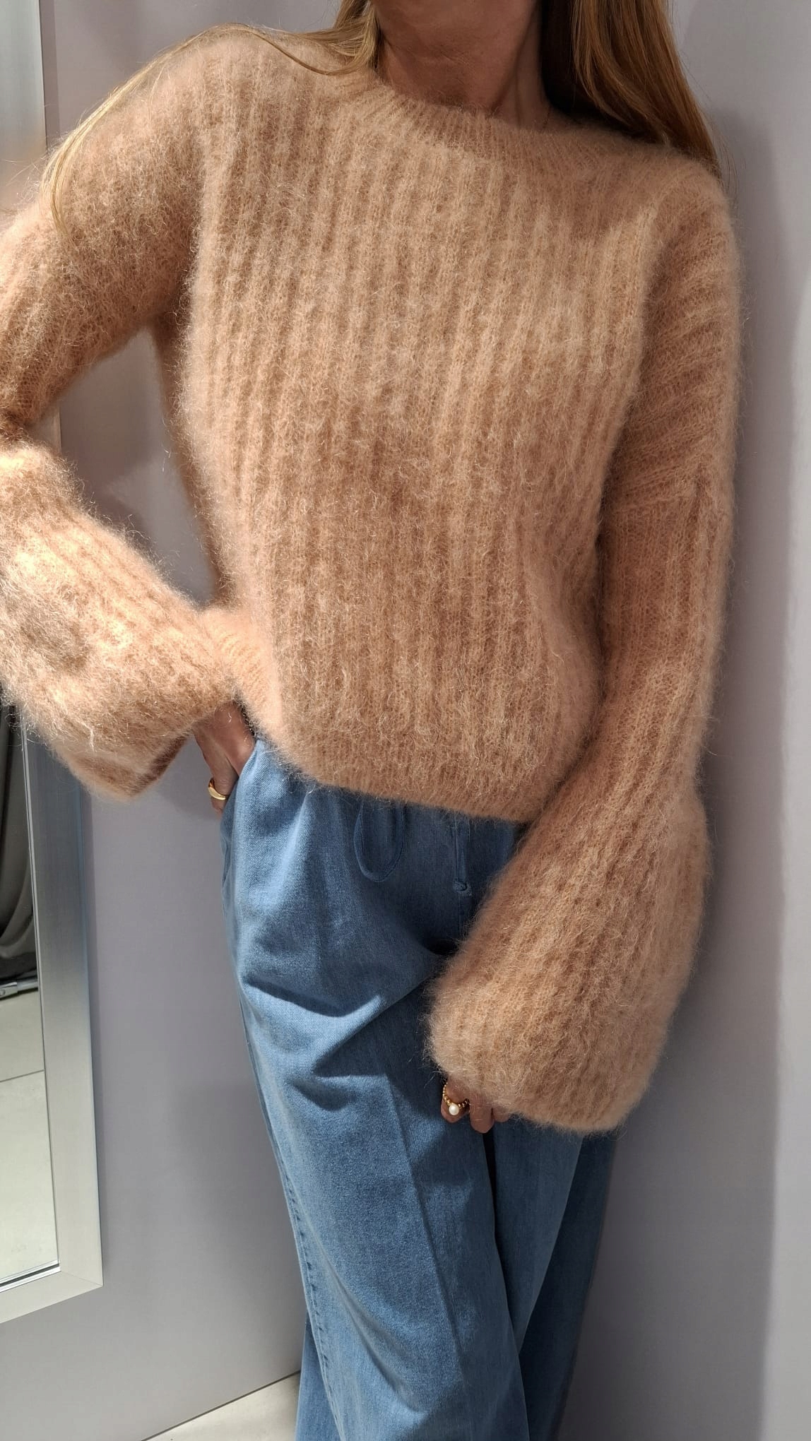 - Rewelacyjny sweter. Wykonany z miękkiej i miłej przędzy premium. Krótki krój. Oryginalności nadają wyjątkowo długie i rozszerzane rękawy