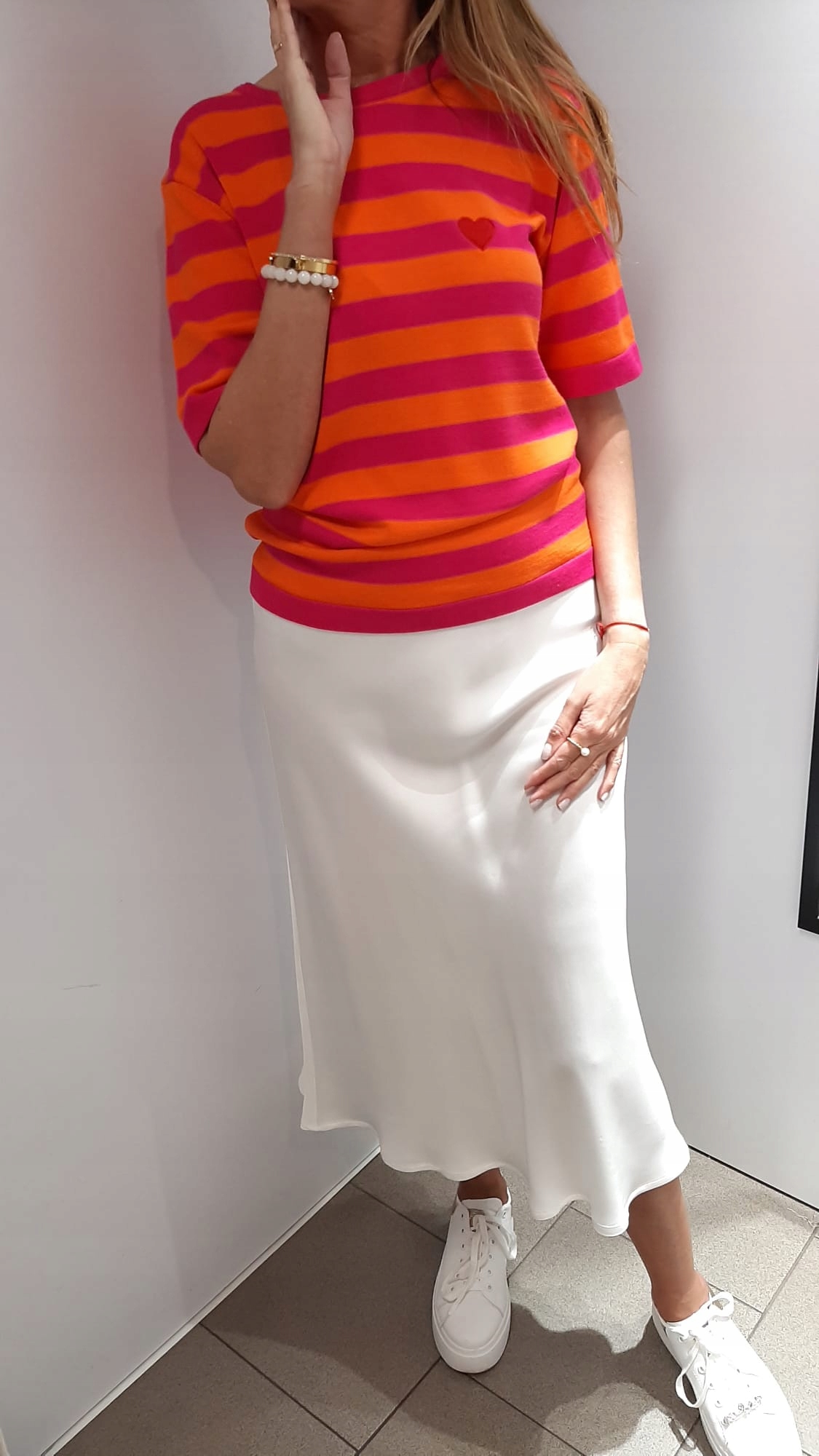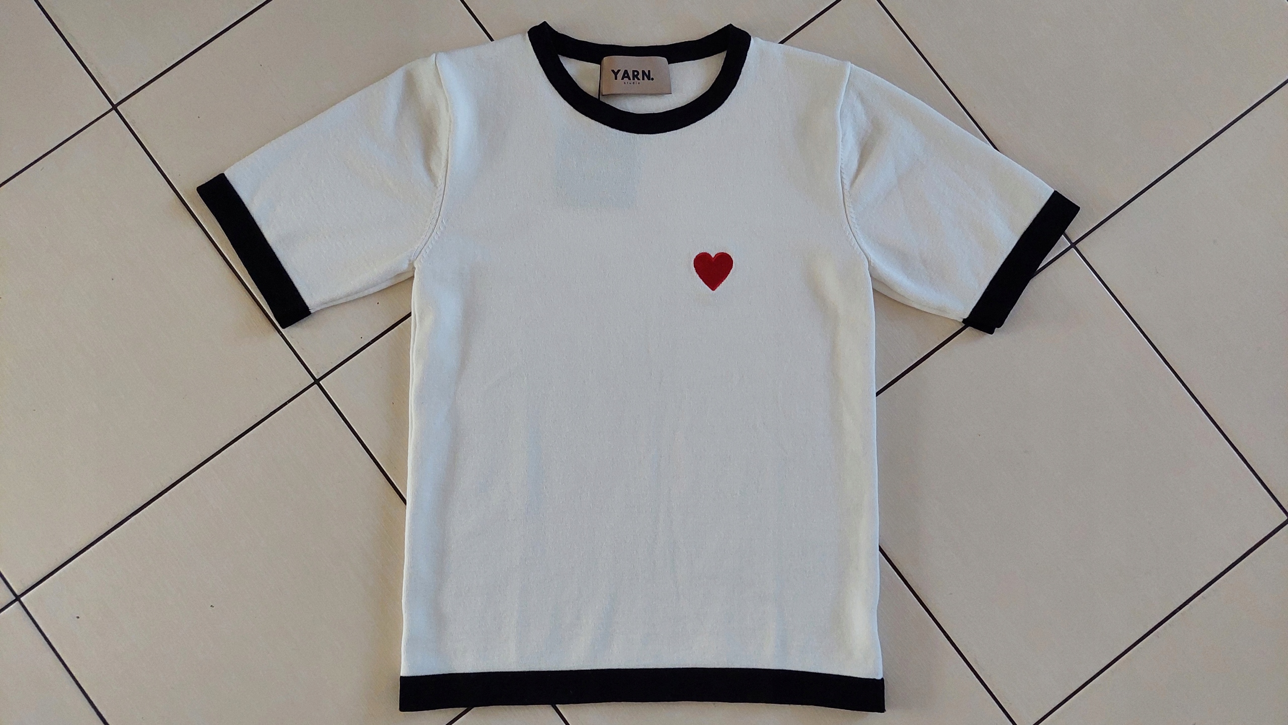 - Sweterkowa bluzka. Wykonana z wysokiej jakości, elastycznego materiału. Klasyczny krój zapewni wygodę. Na przodzie czerwone, haftowane serduszko