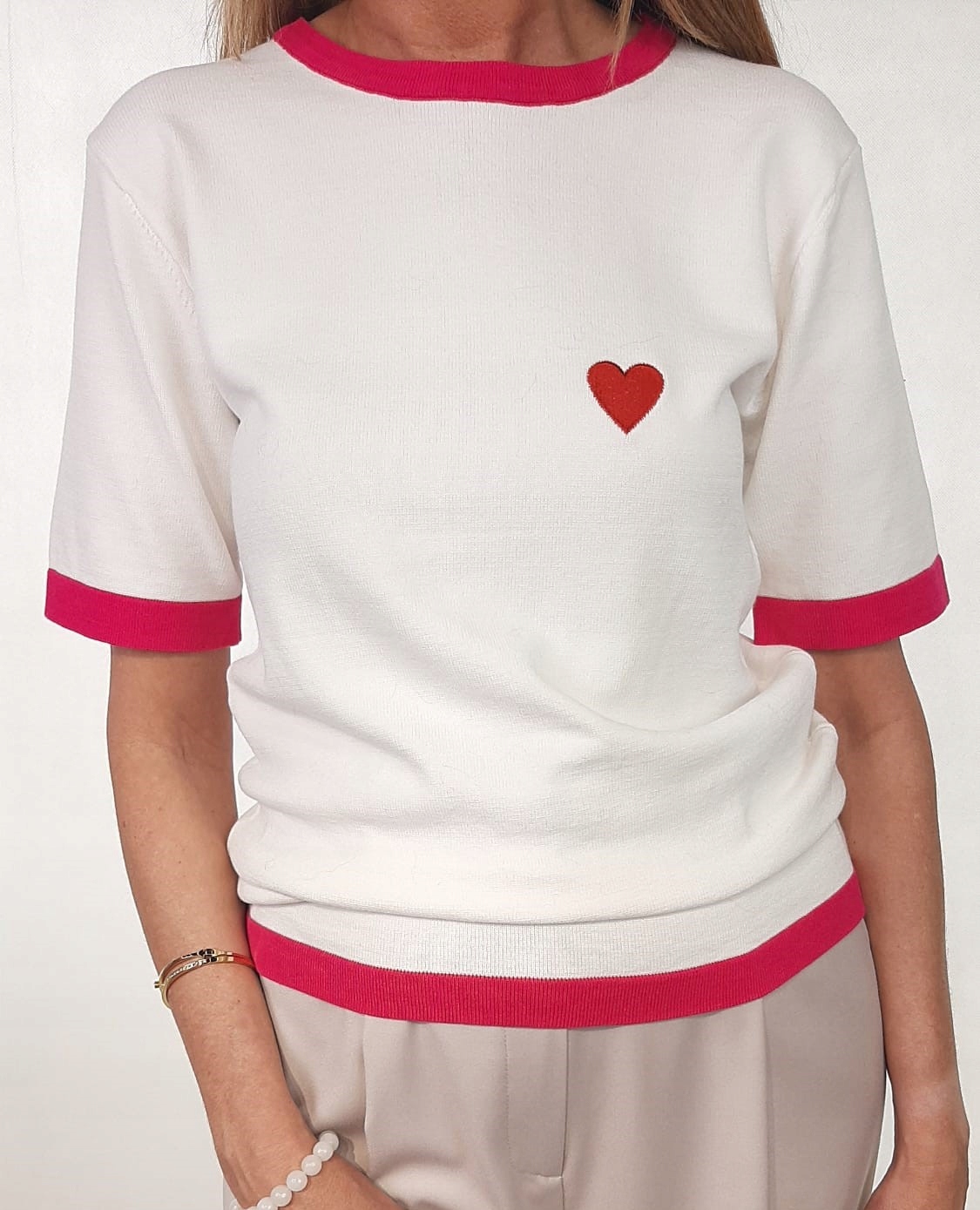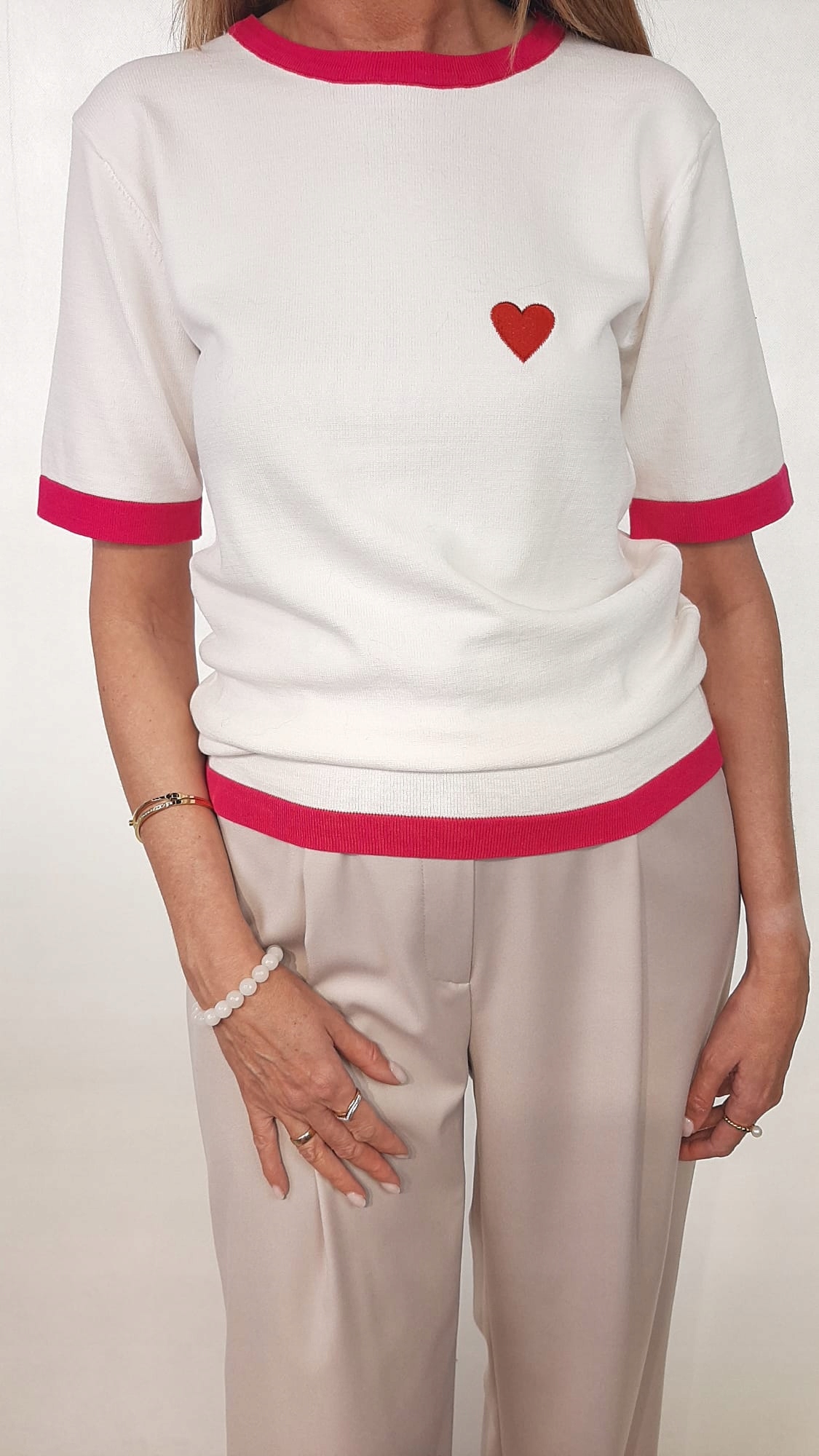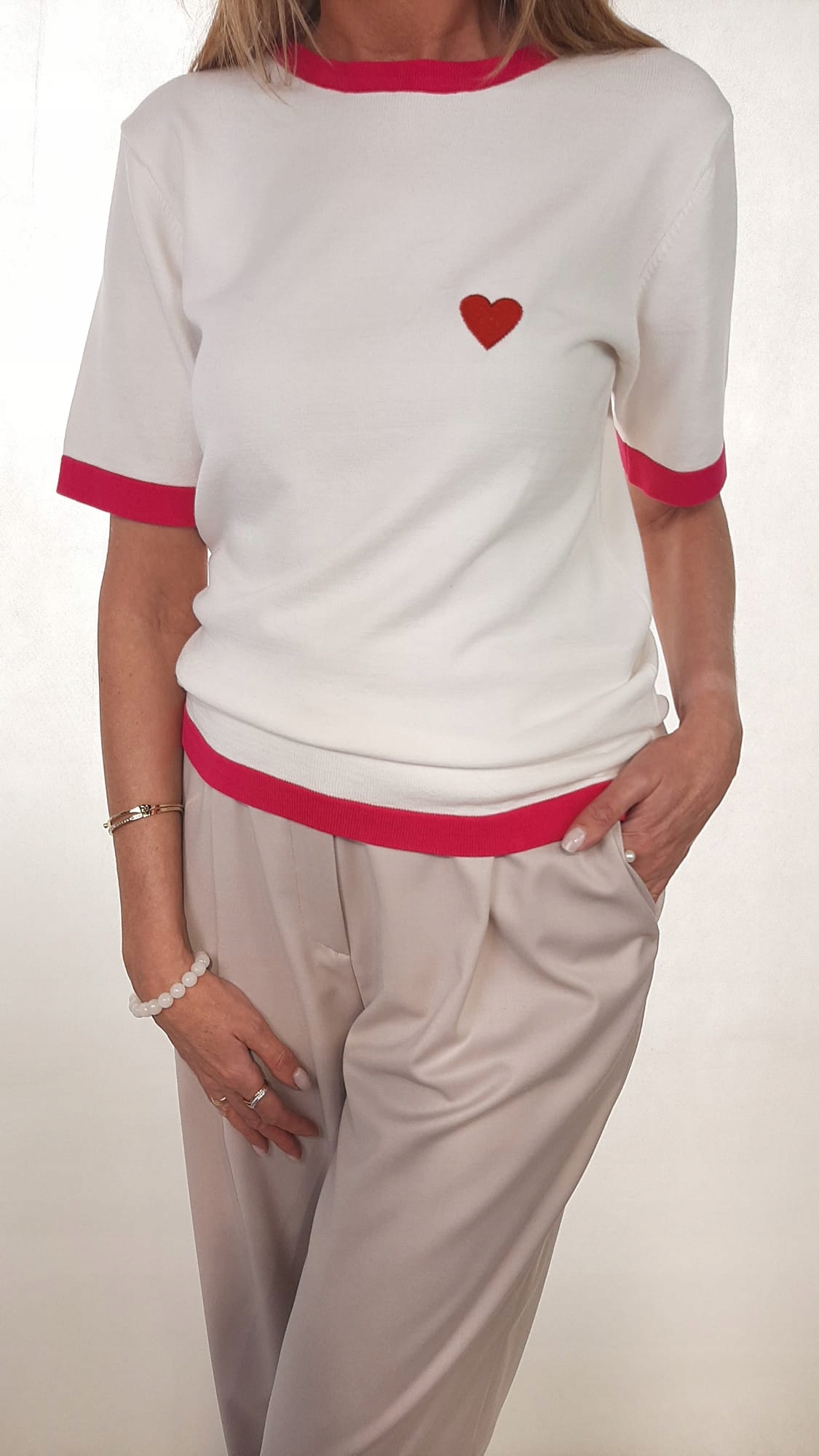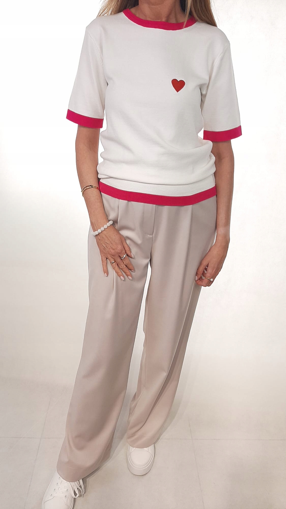 YARN Premium Sweterek Bluzka Biały + Fuksja Serduszko Nowość