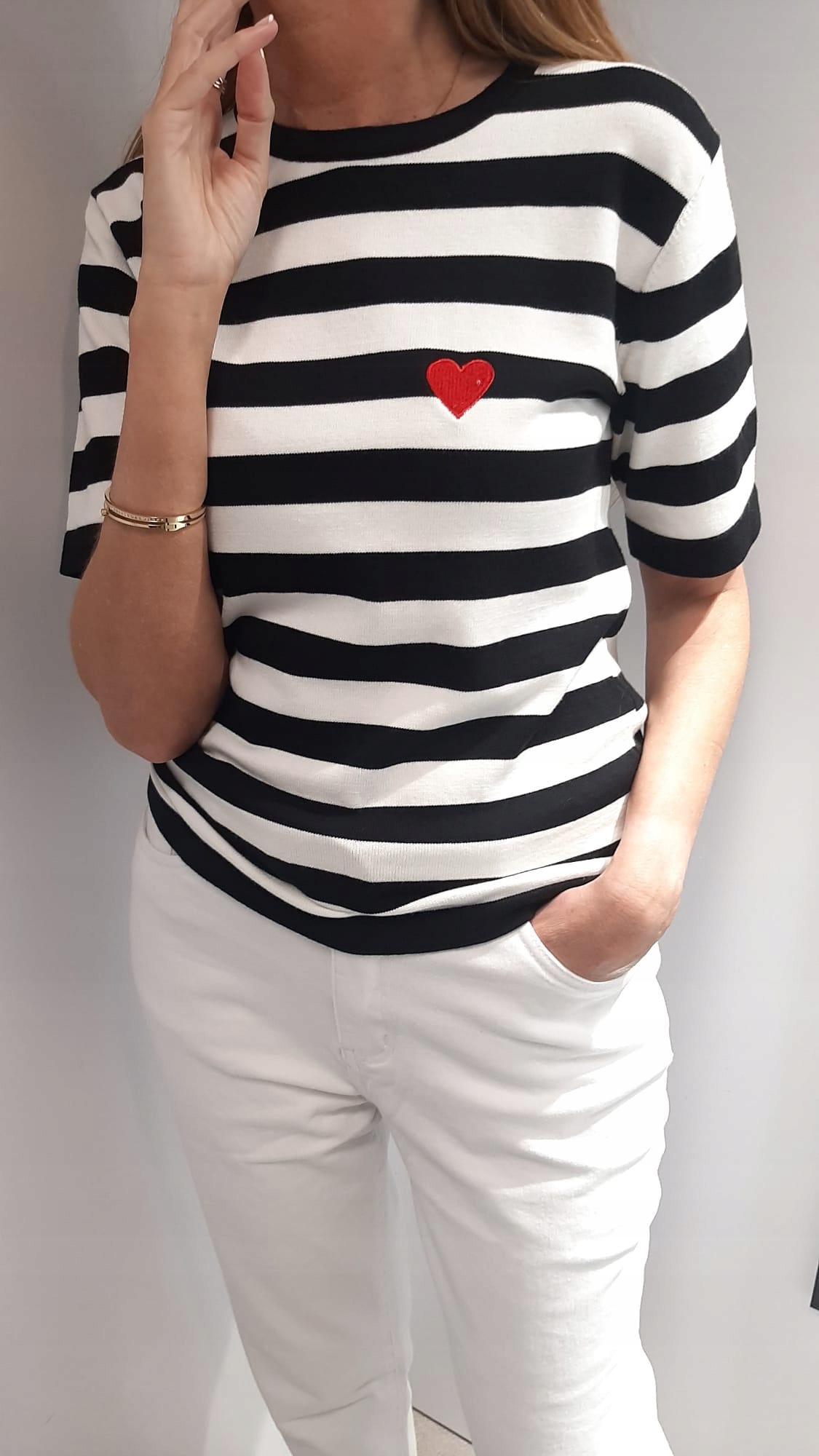 - Sweterkowa bluzka. Wykonana z wysokiej jakości, elastycznego materiału. Klasyczny krój zapewni wygodę. Na przodzie haftowane serduszko