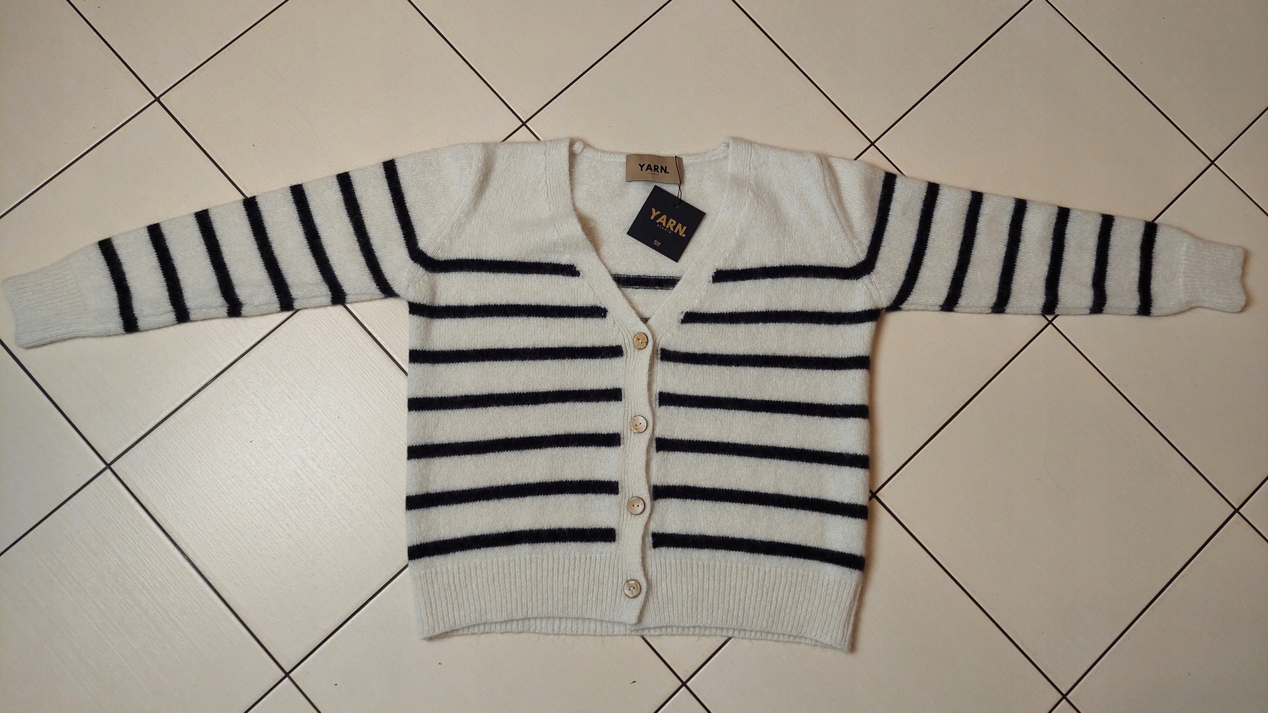 YARN Sweter Kardigan w Paski Alpaka + Wełna Biały + Czarny Nowość