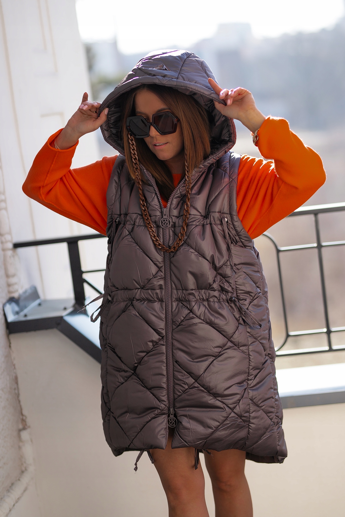 - Rewelacyjny pikowany bezrękawnik z Kapturem. Ozdobne logo na kapturze. Dzięki dwukierunkowemu zamkowi można odpiąć również od dołu. Troczki do regulacji szerokości