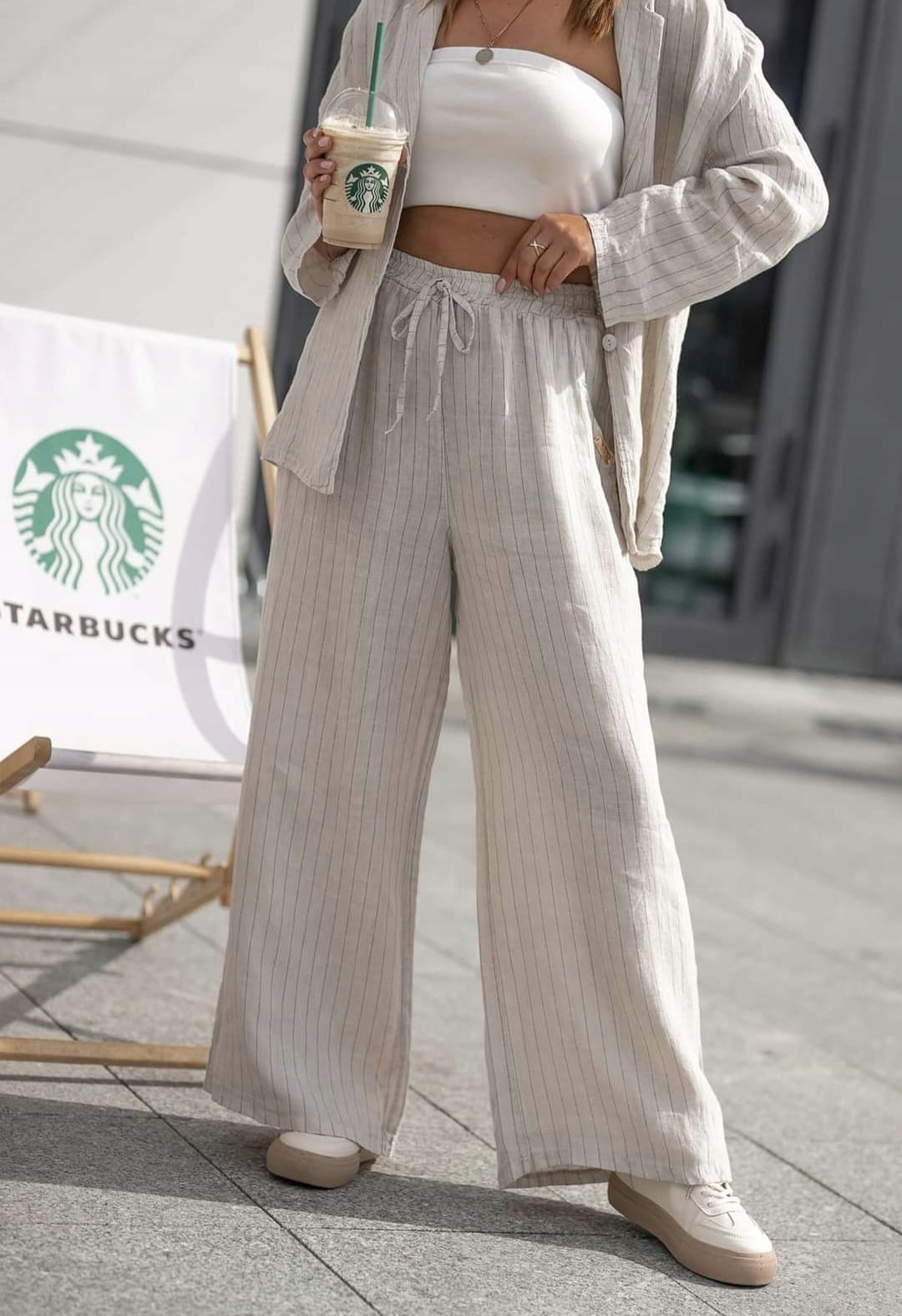 - Rewelacyjny komplet na lato marynarka ze spodniami. Wykonany z wysokiej jakości lnu.