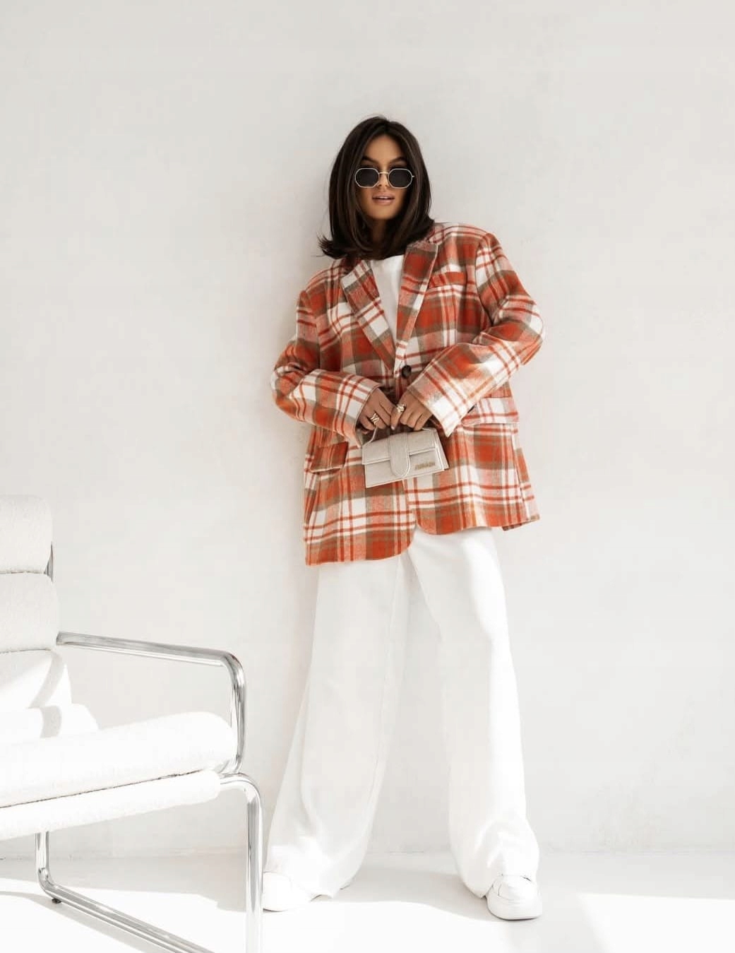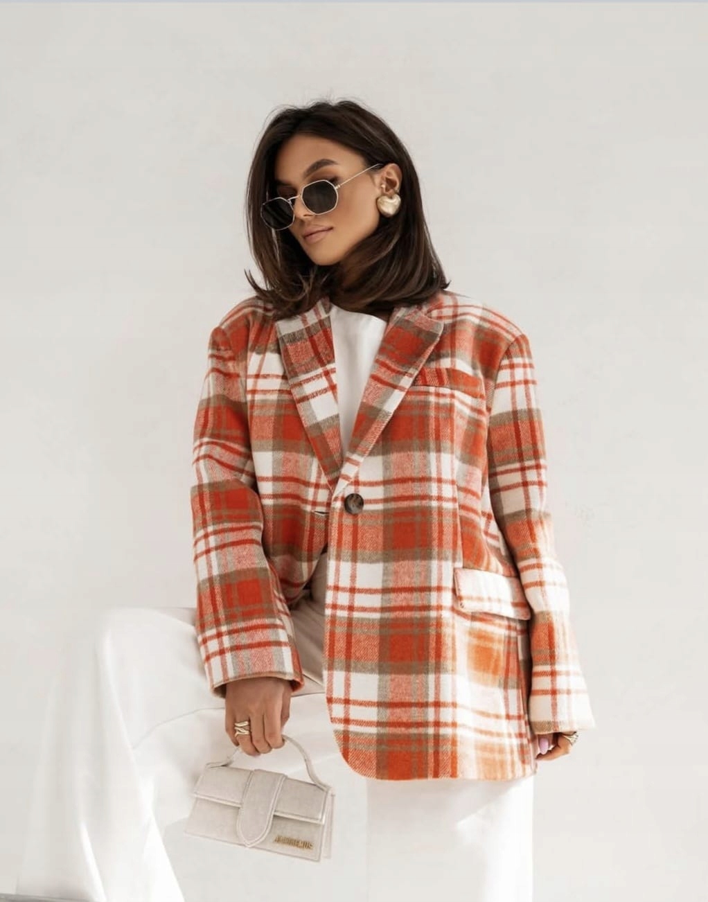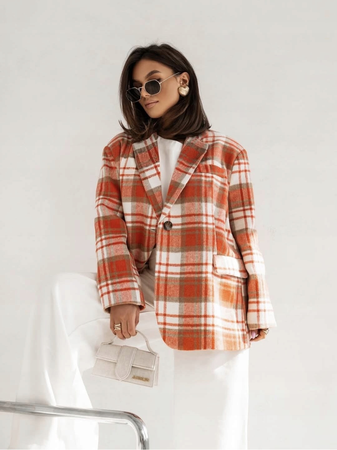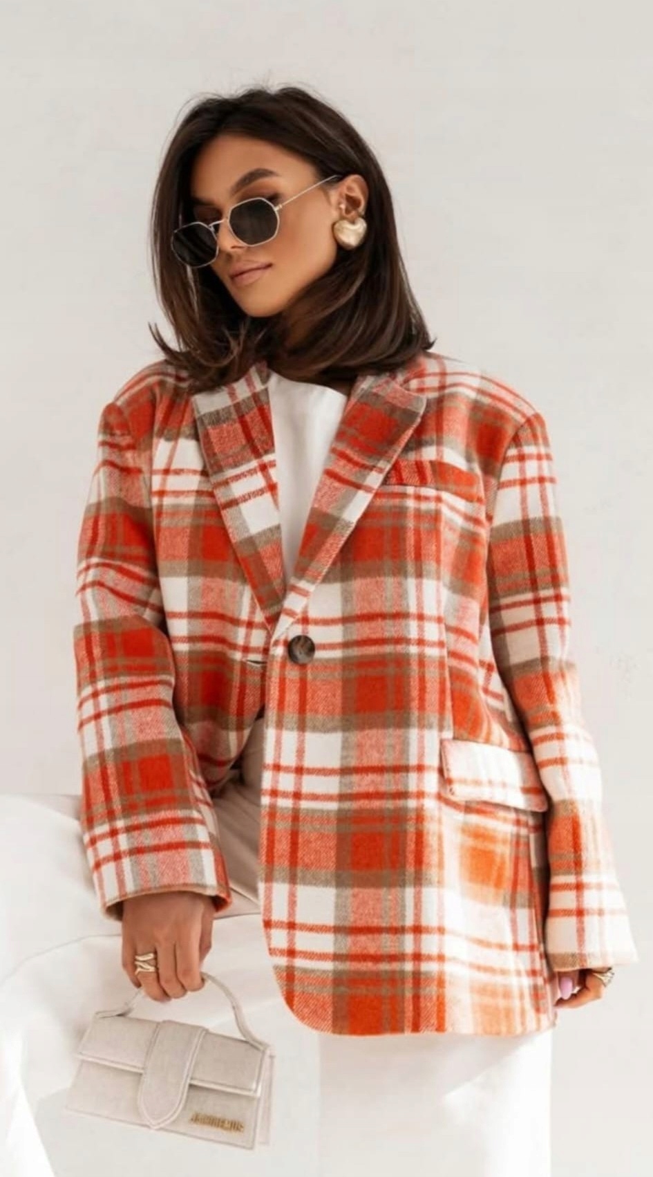COCOMORE Marynarka Kurtka w Kratkę Oversize Pomarańczowa NEW
