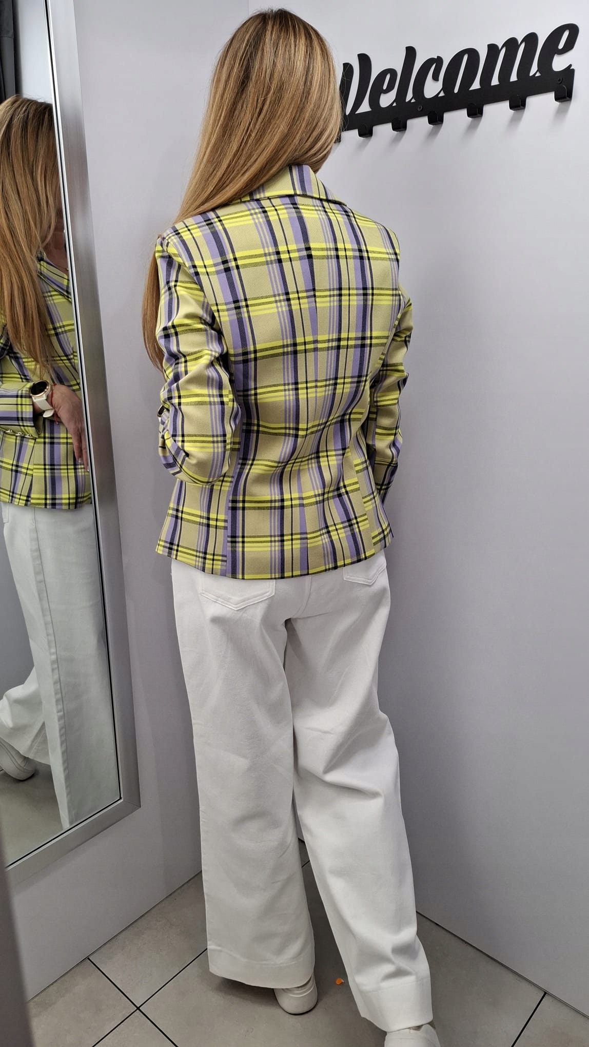 COCOMORE Marynarka w Kratkę Limonka + Fioletowy 36/S