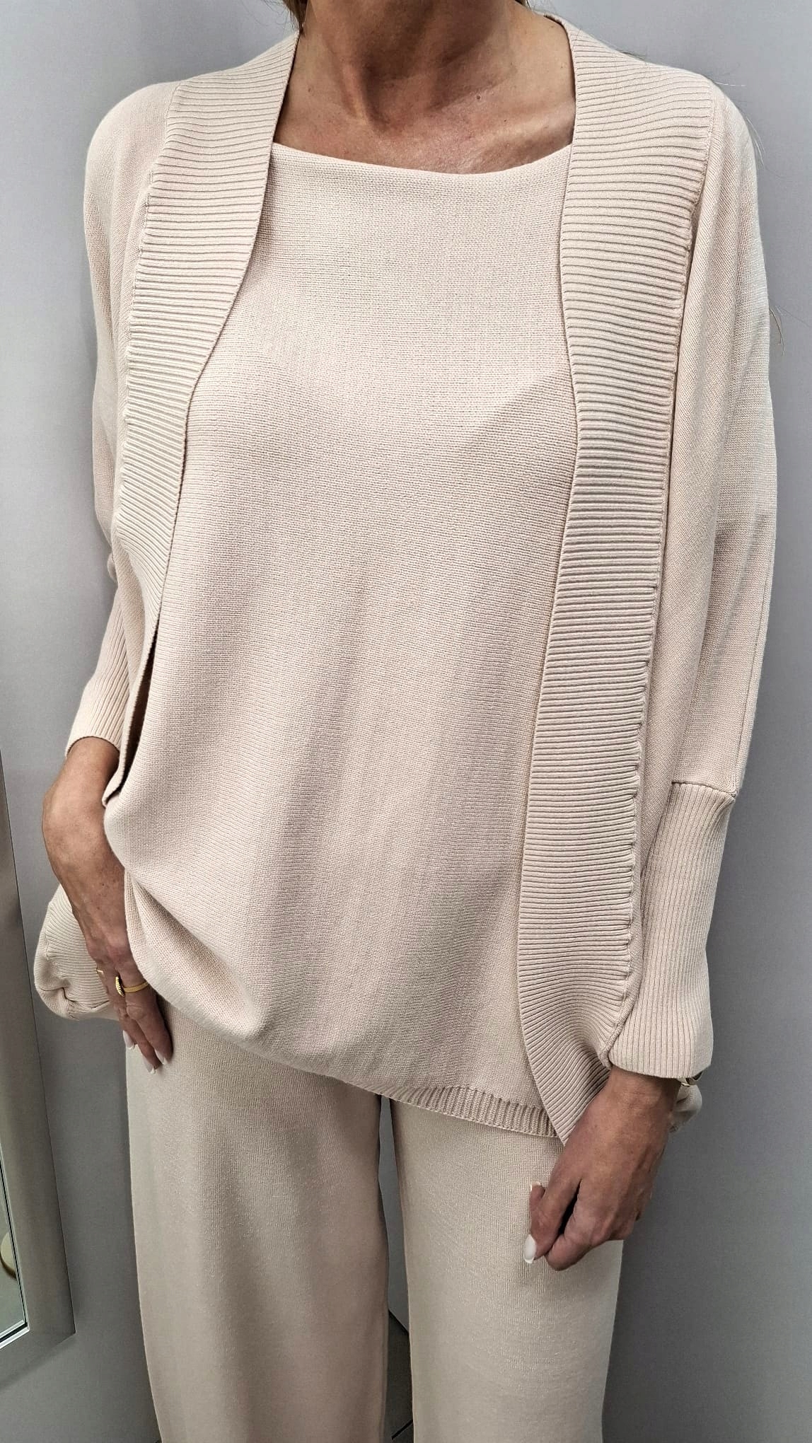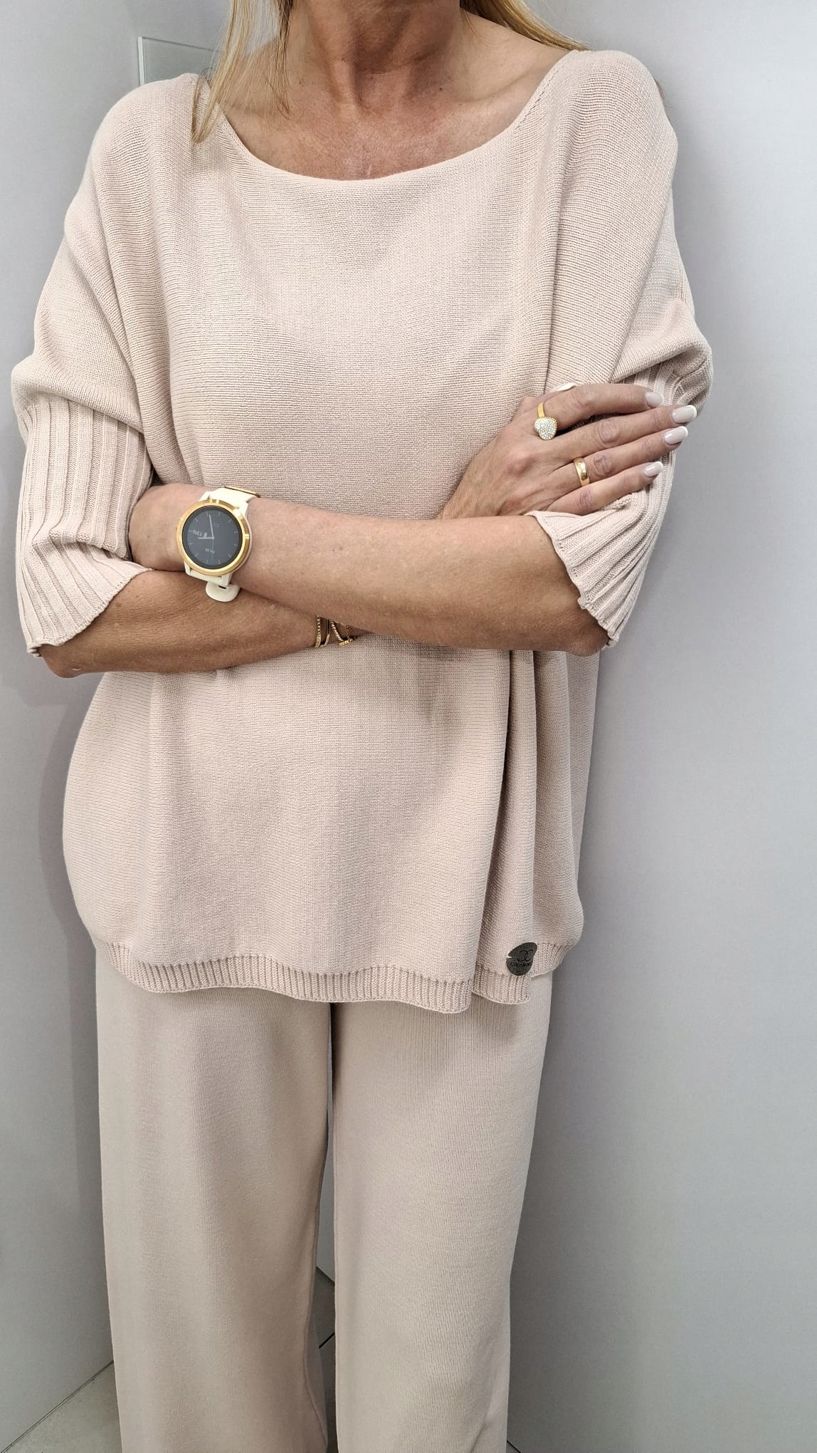 - Rewelacyjna sweterkowa bluzka. Wykonana z miłej i miękkiej przędzy. Krój Oversize. Możliwość skompletowania ze spodniami i kardiganem narzutką.