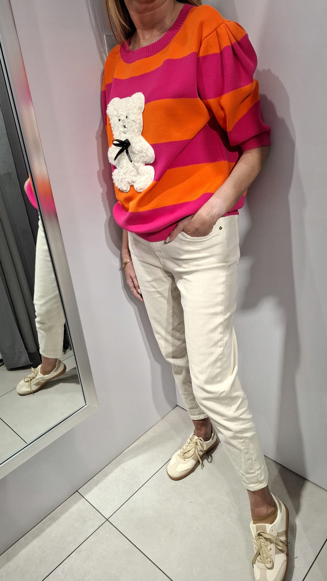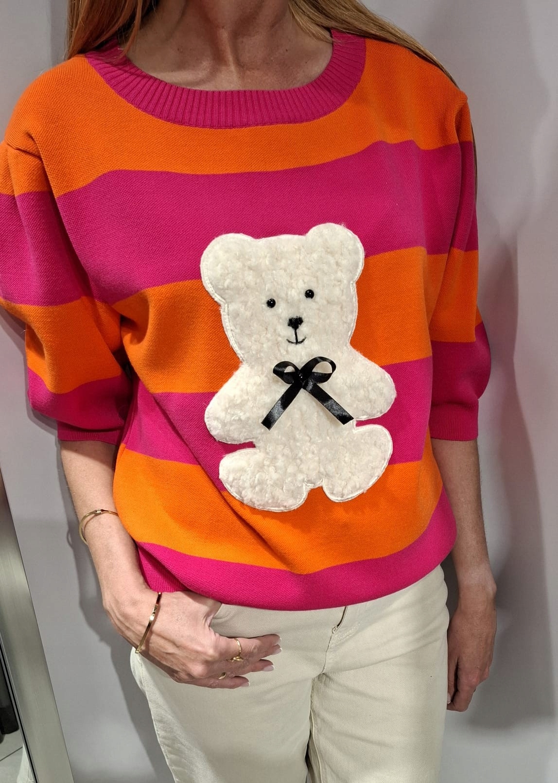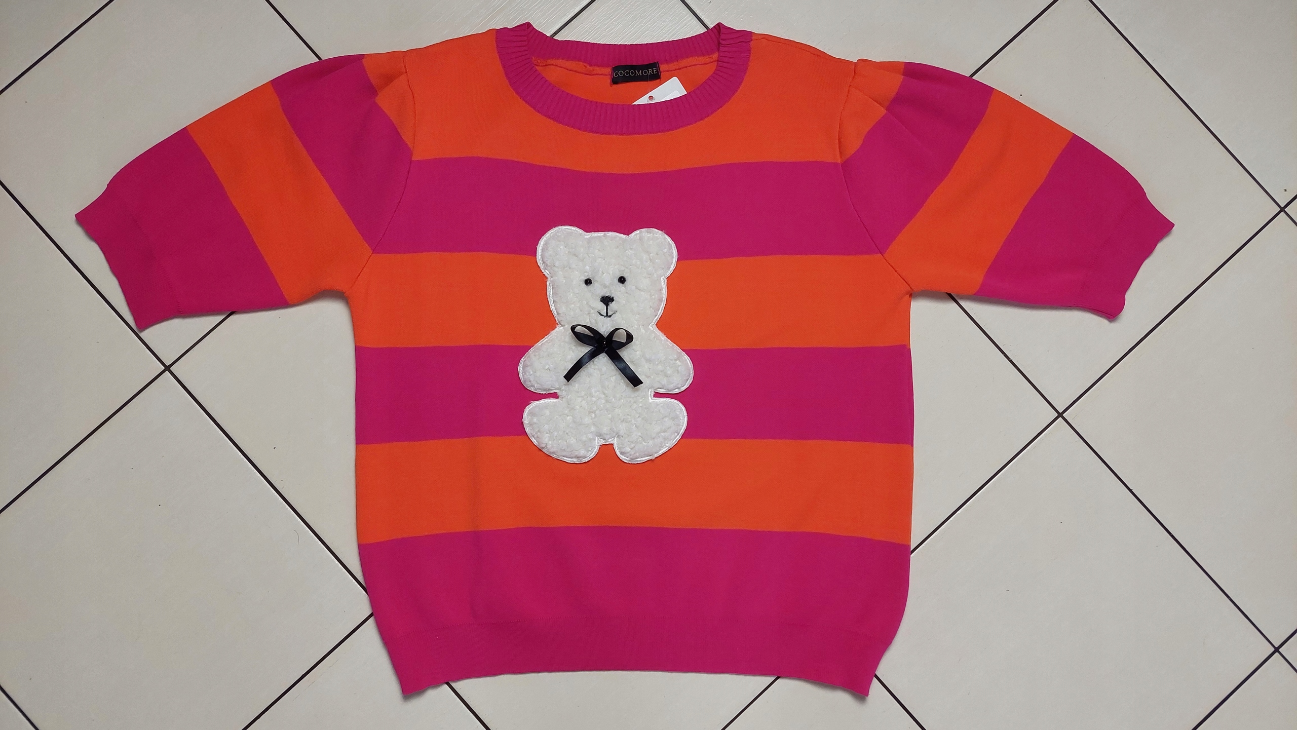 COCOMORE Sweter Pasy Amarantowy + Pomarańczowy MISIU Nowość