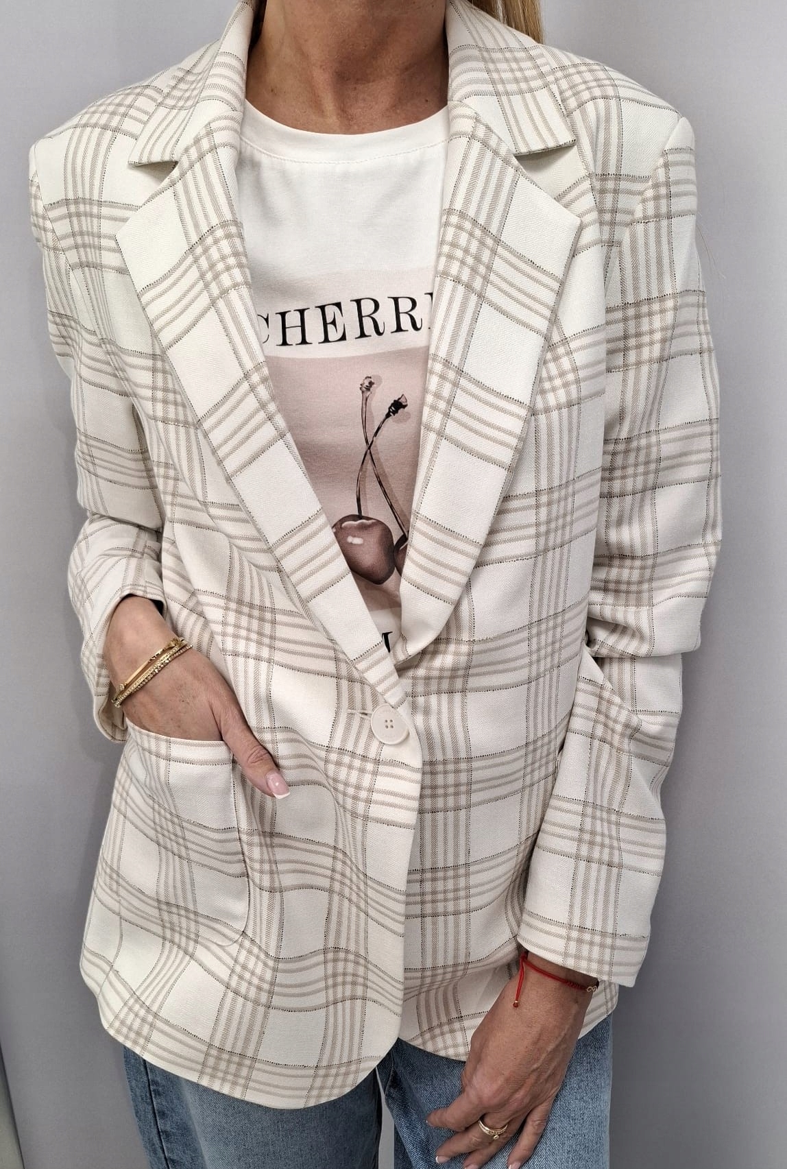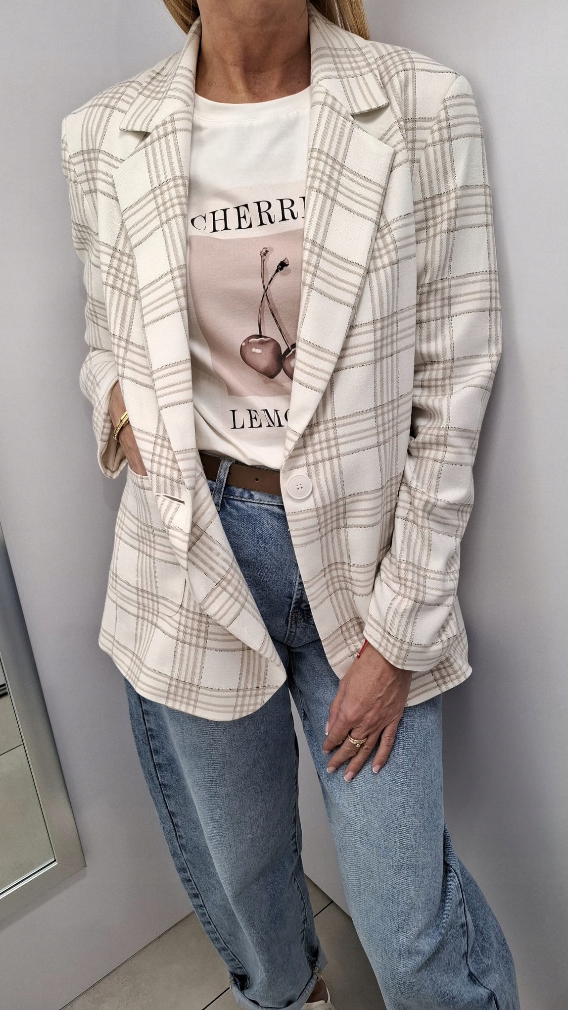 LEMONADA Marynarka w Kratkę Ecru + Beżowy 36/S Nowość