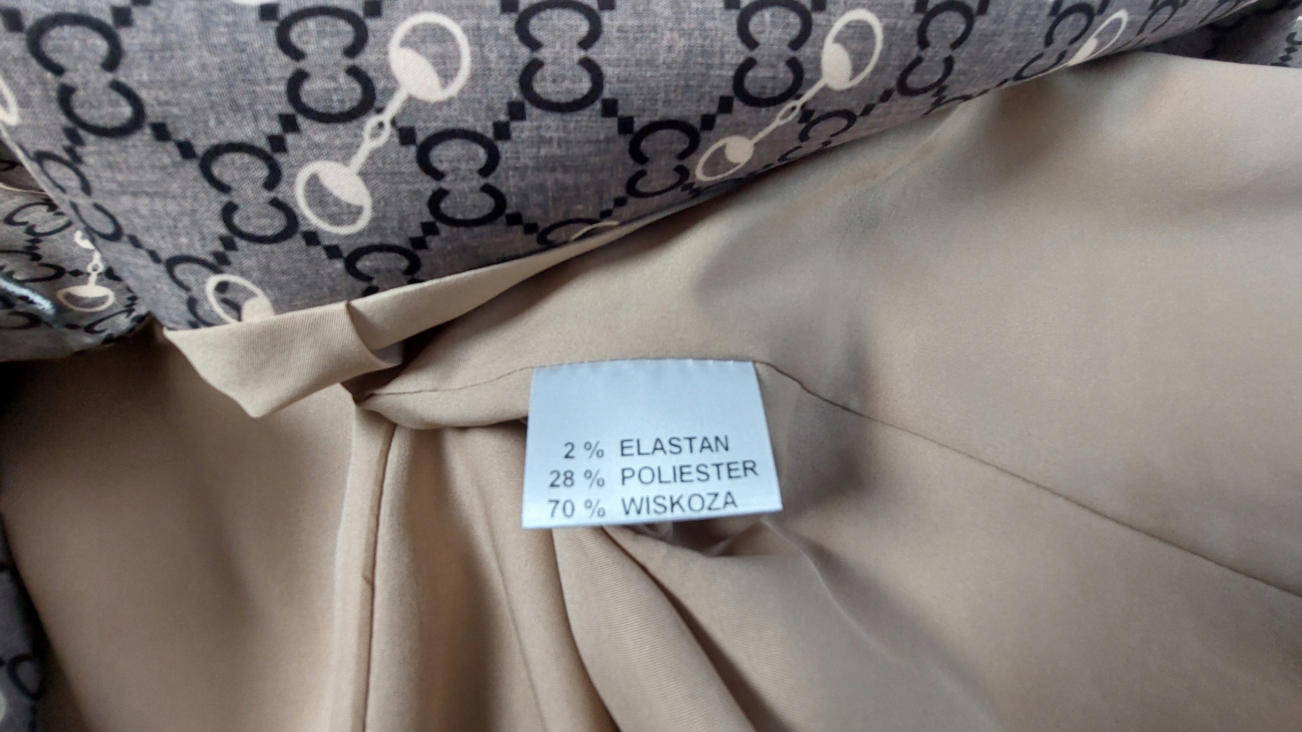 - Skład 70% WISKOZA, 28% POLIESTER, 2% ELASTAN