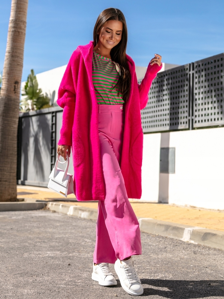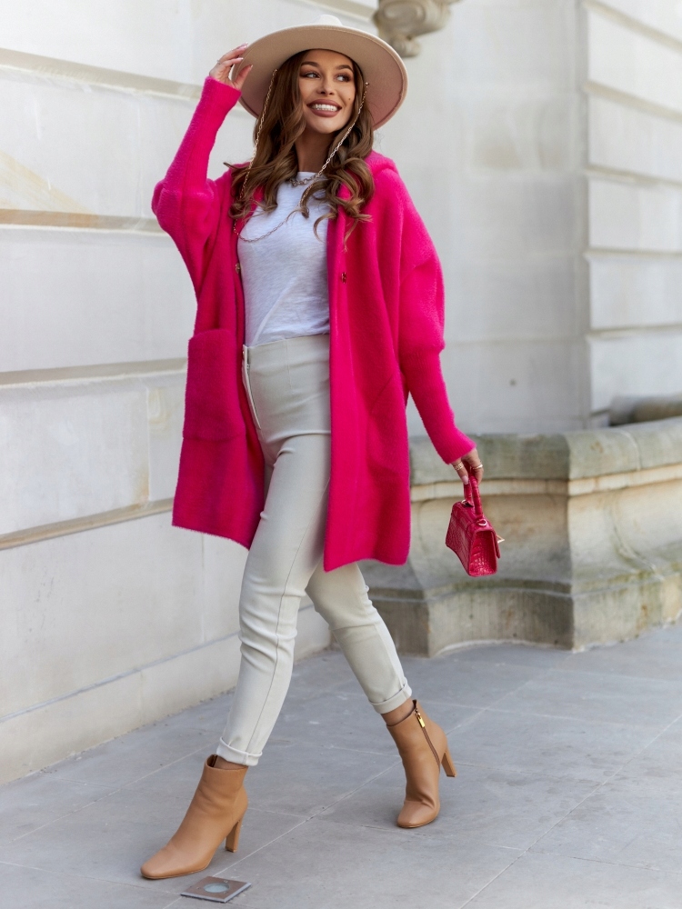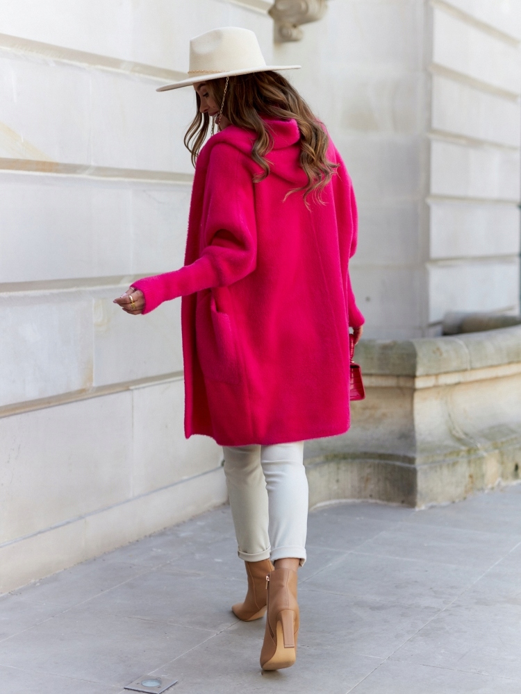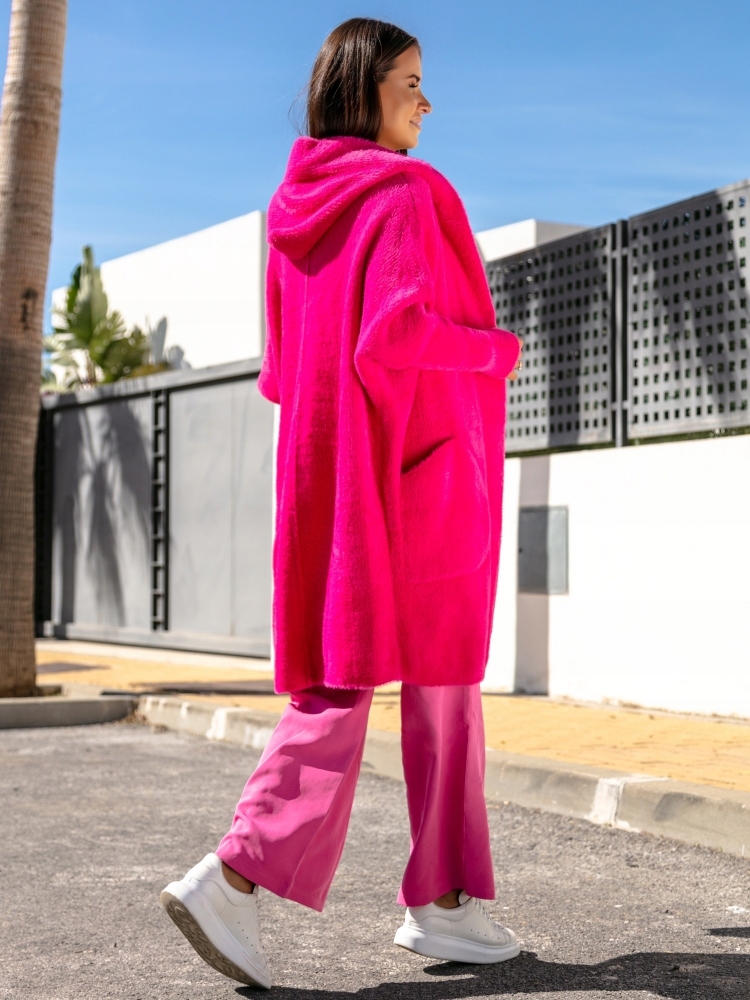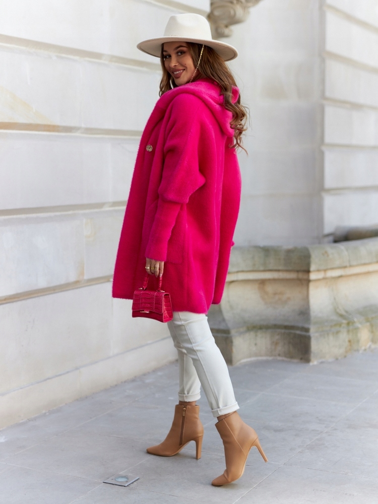 COCOMORE Płaszcz Alpaka Kaptur Różowy Amarantowy