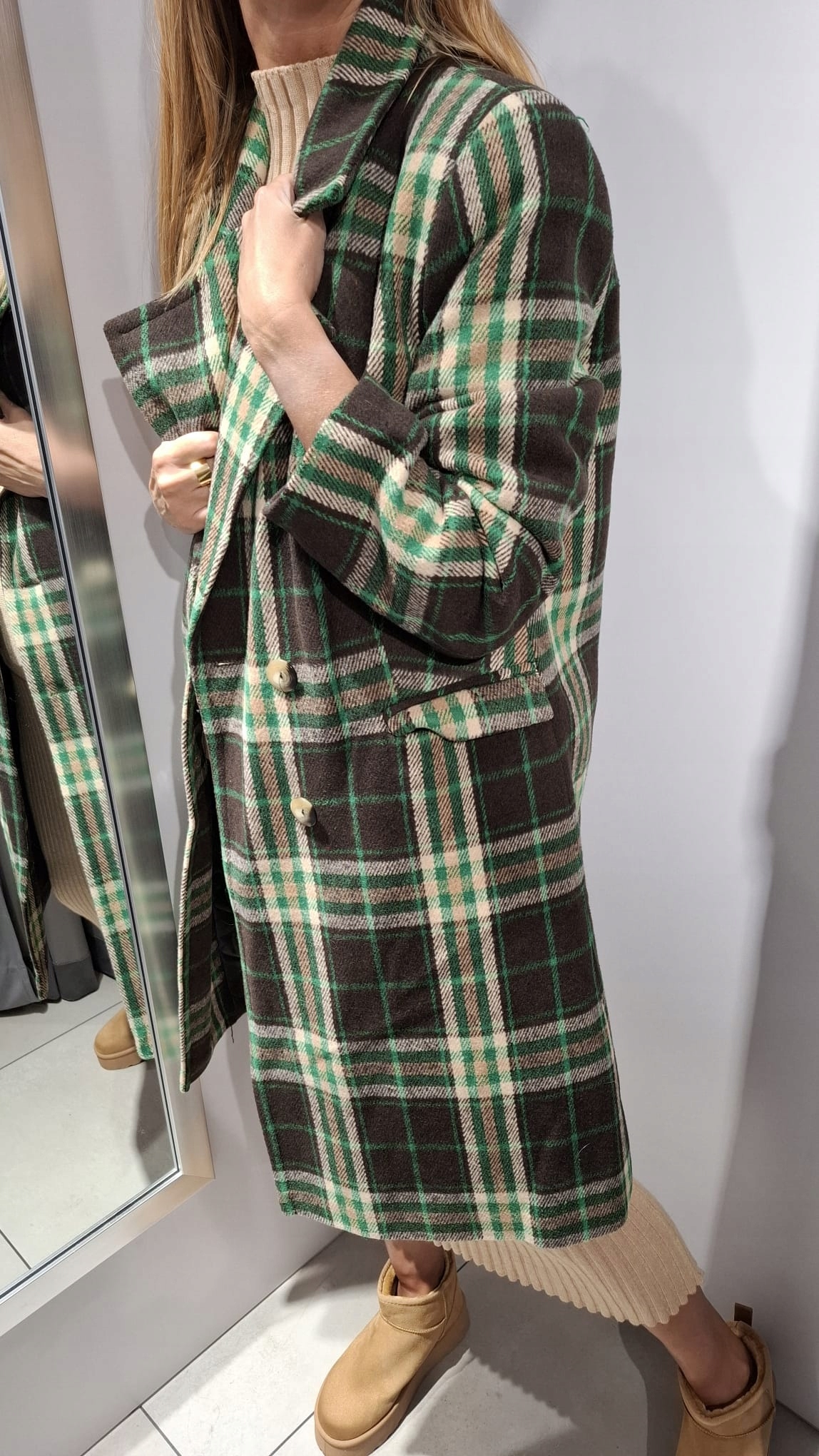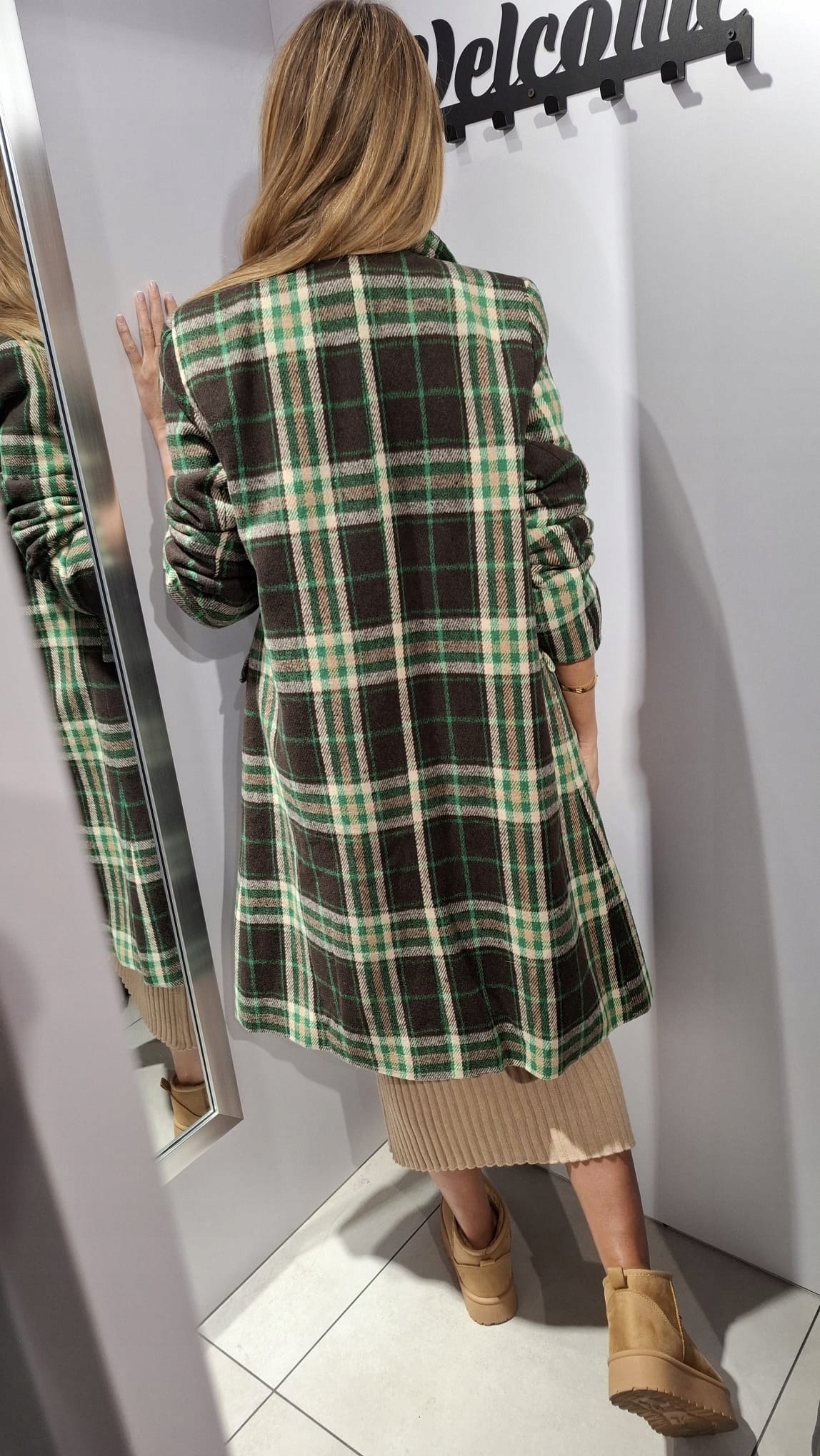 Płaszcz w Kratkę Zielony + Brązowy + Ecru BB 40/l