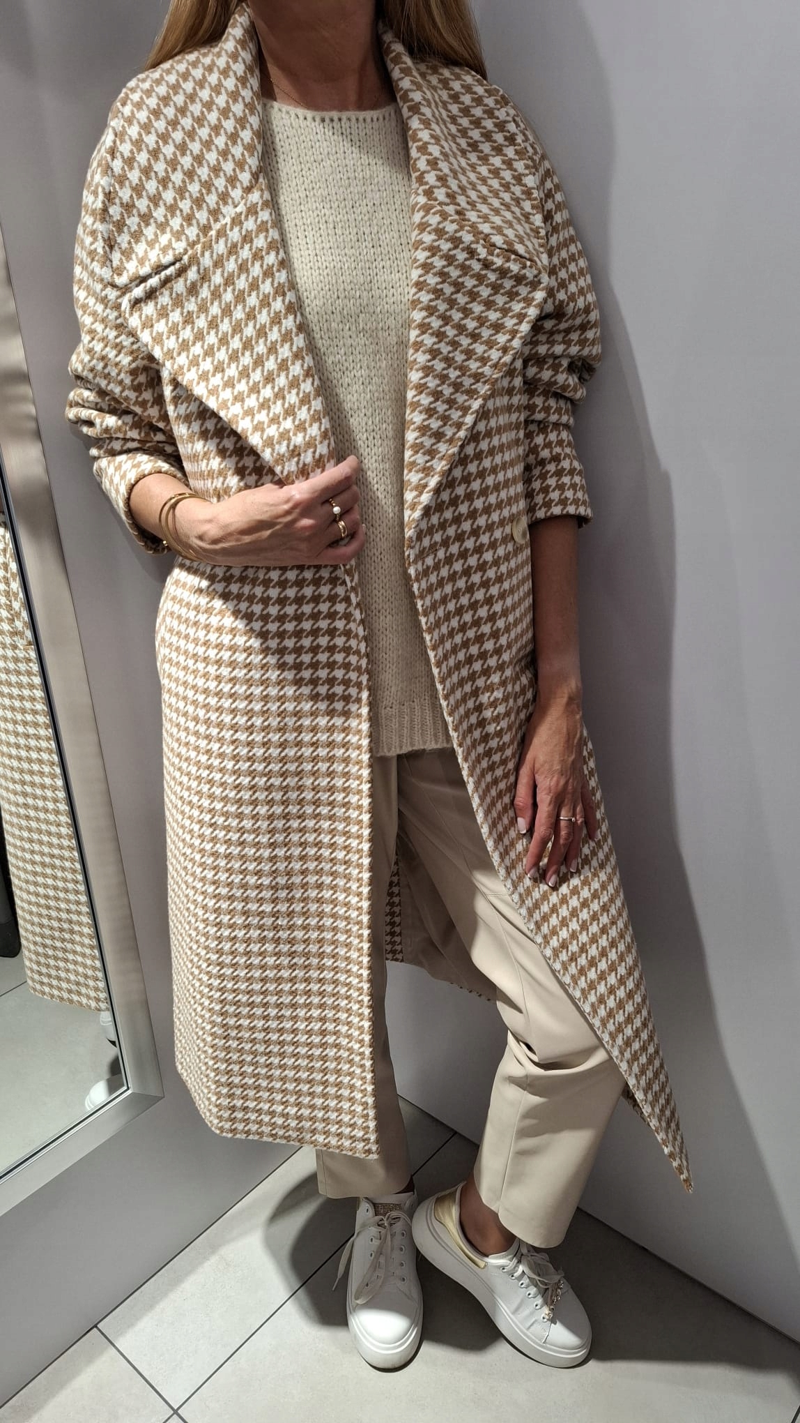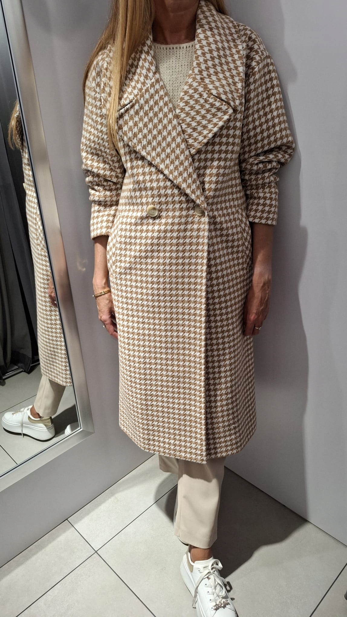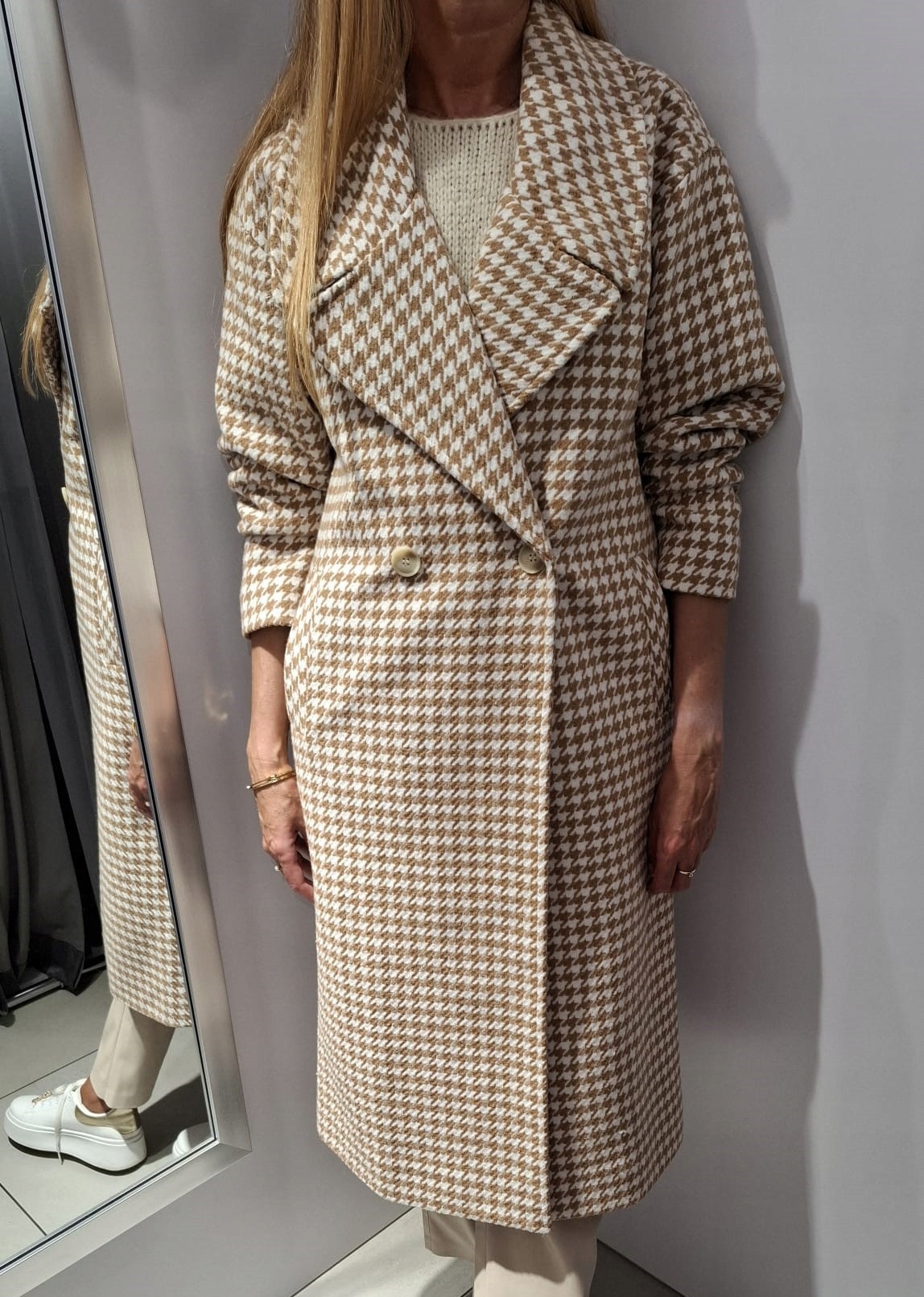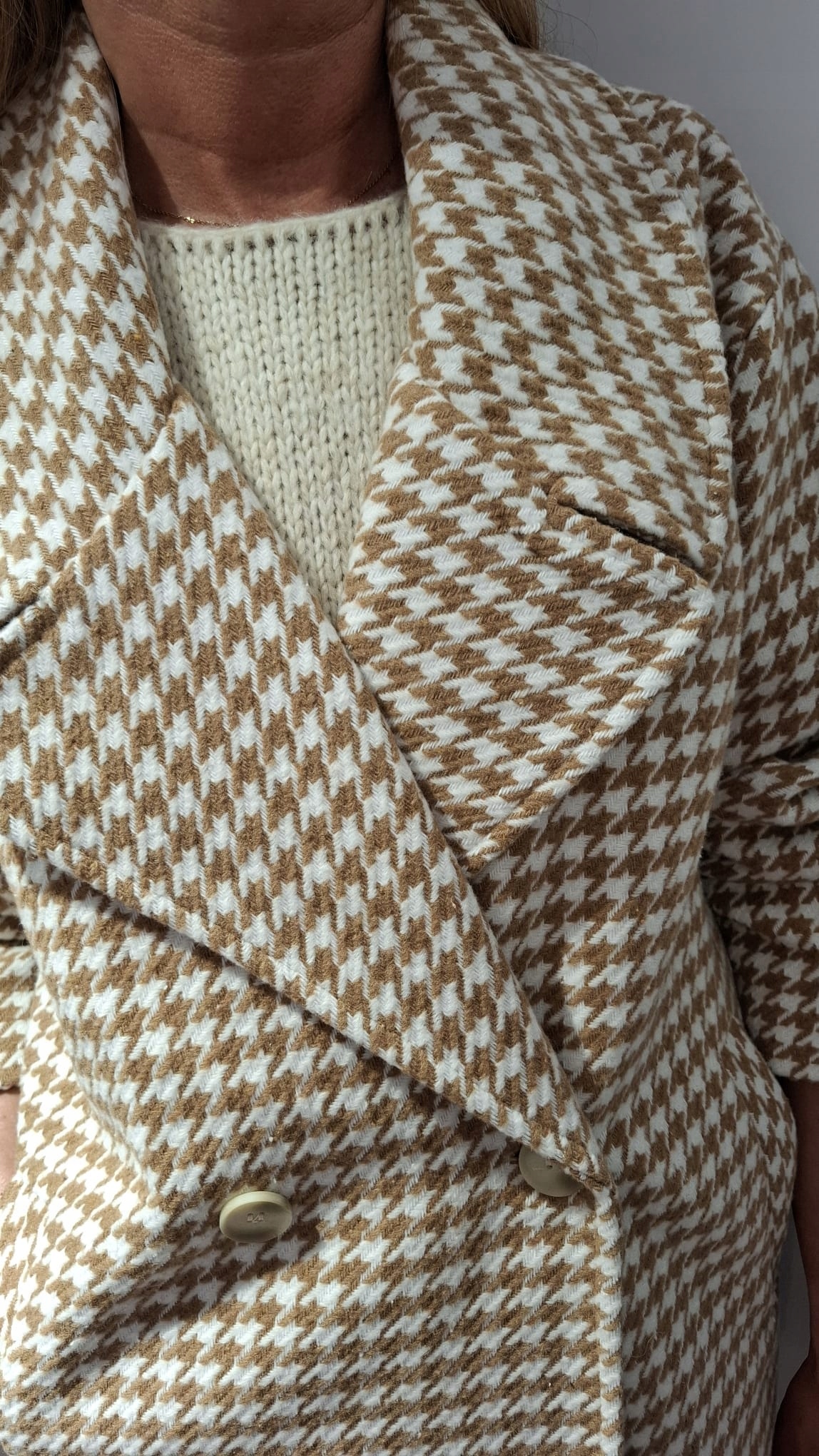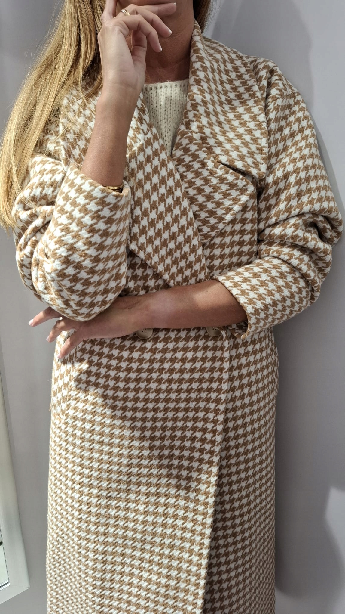 Płaszcz w Pepitkę Camelowy + Biały SEMPRE 1 38/40 – M/L UNI