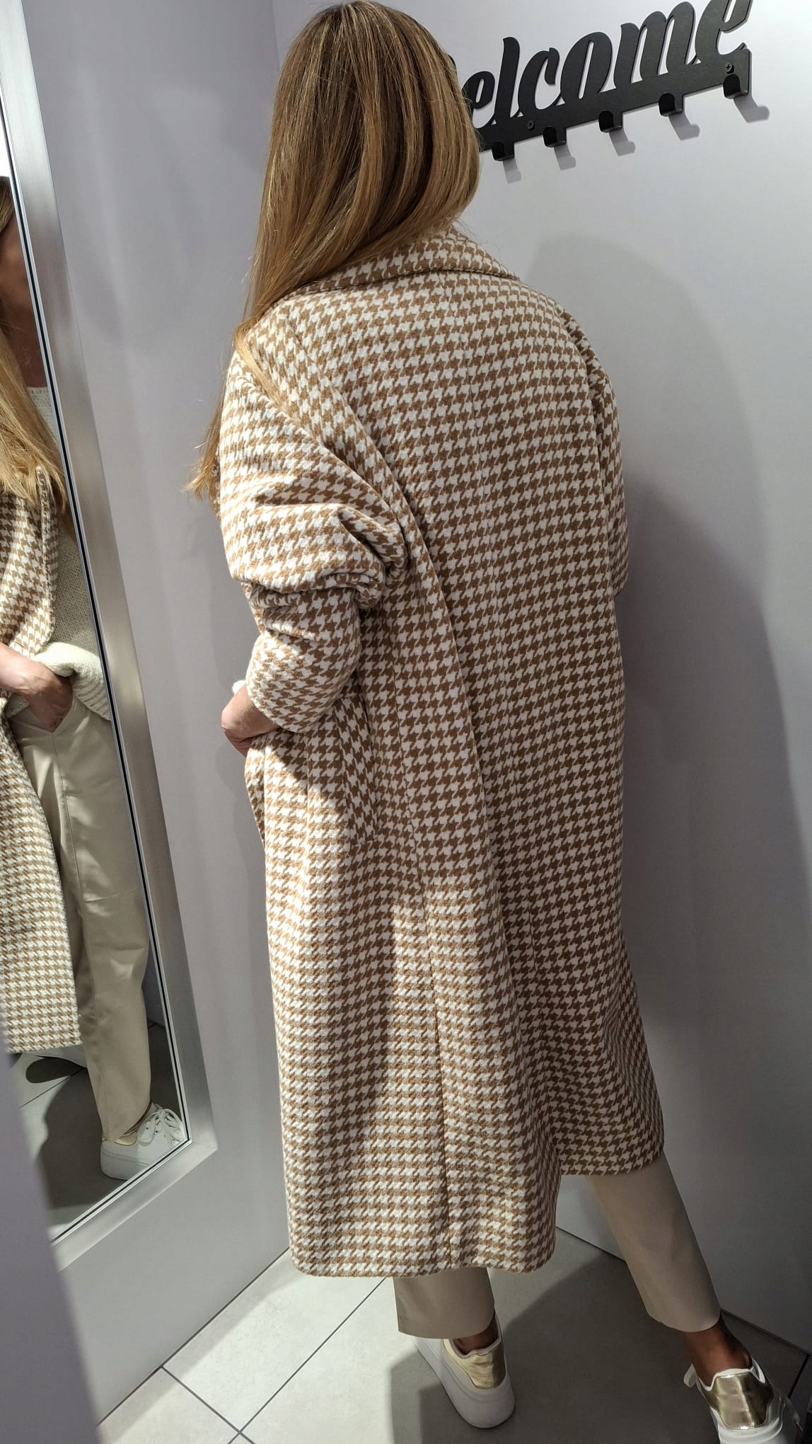 - Elegancki ponadczasowy Płaszcz, wykonany z wysokiej jakości materiału w pepitkę. Dwie kieszenie, podszewka