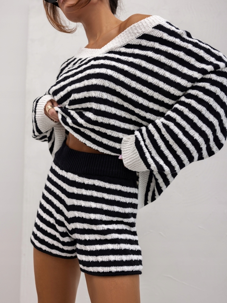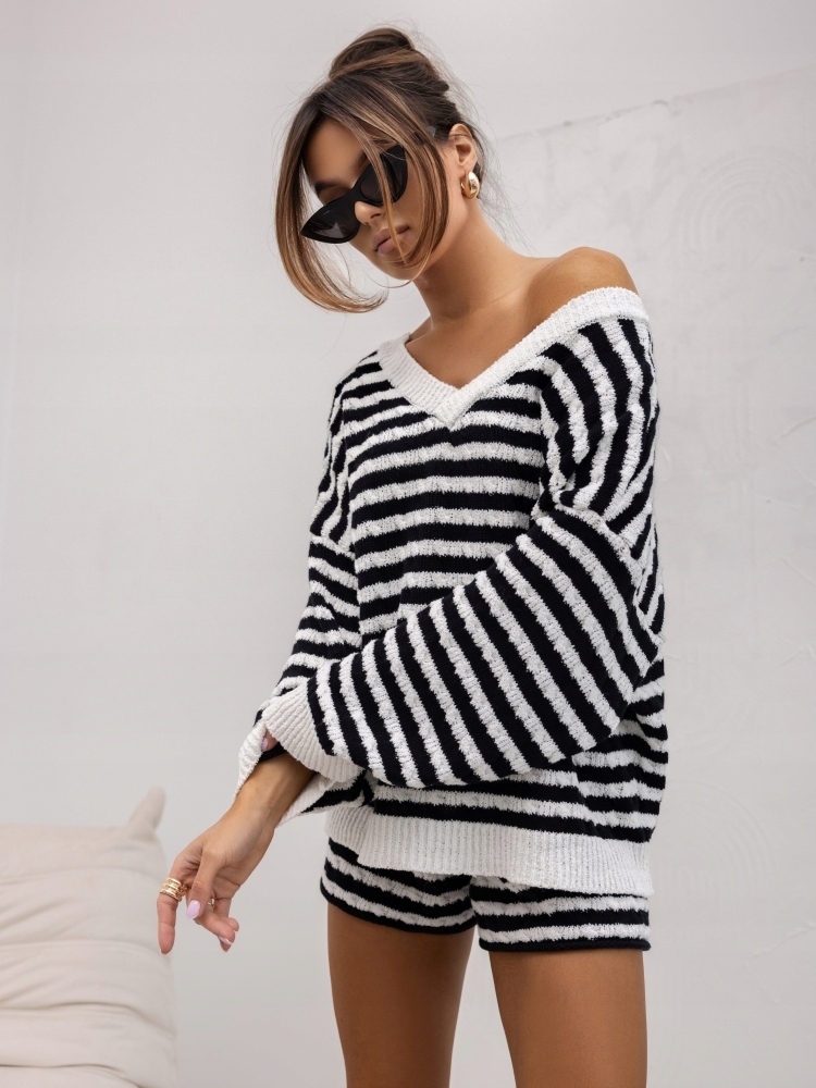 COCOMORE Spodenki Szorty w Paski Biały + Czarny Nowość