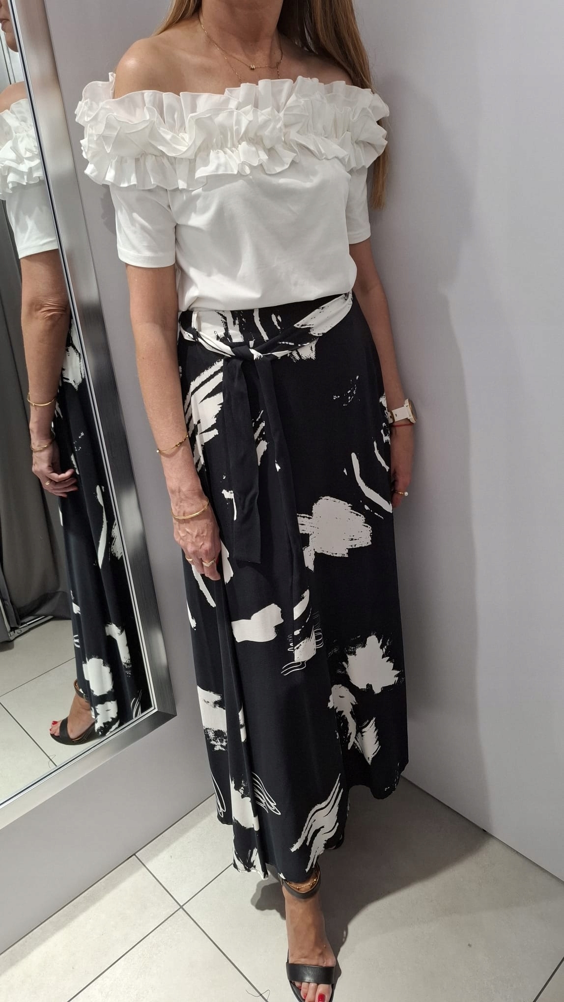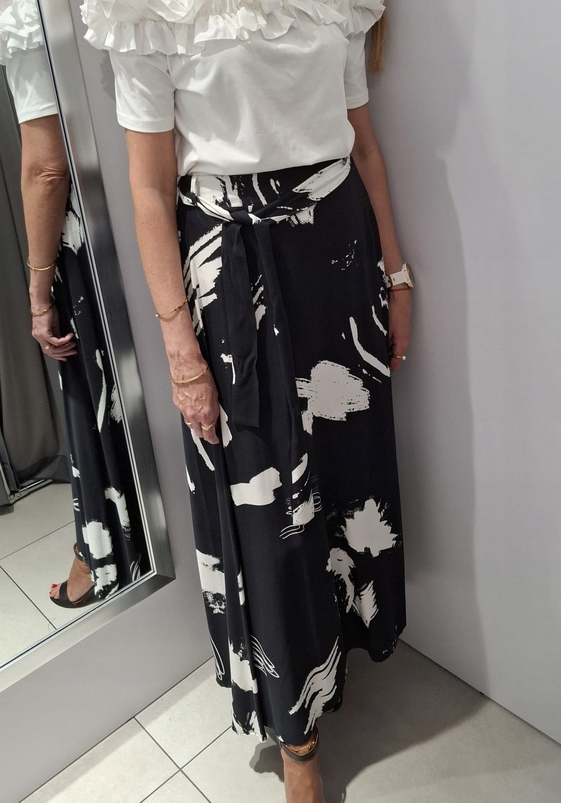 COCOMORE Długa Spódnica Czarny + Biały 38/M Nowość