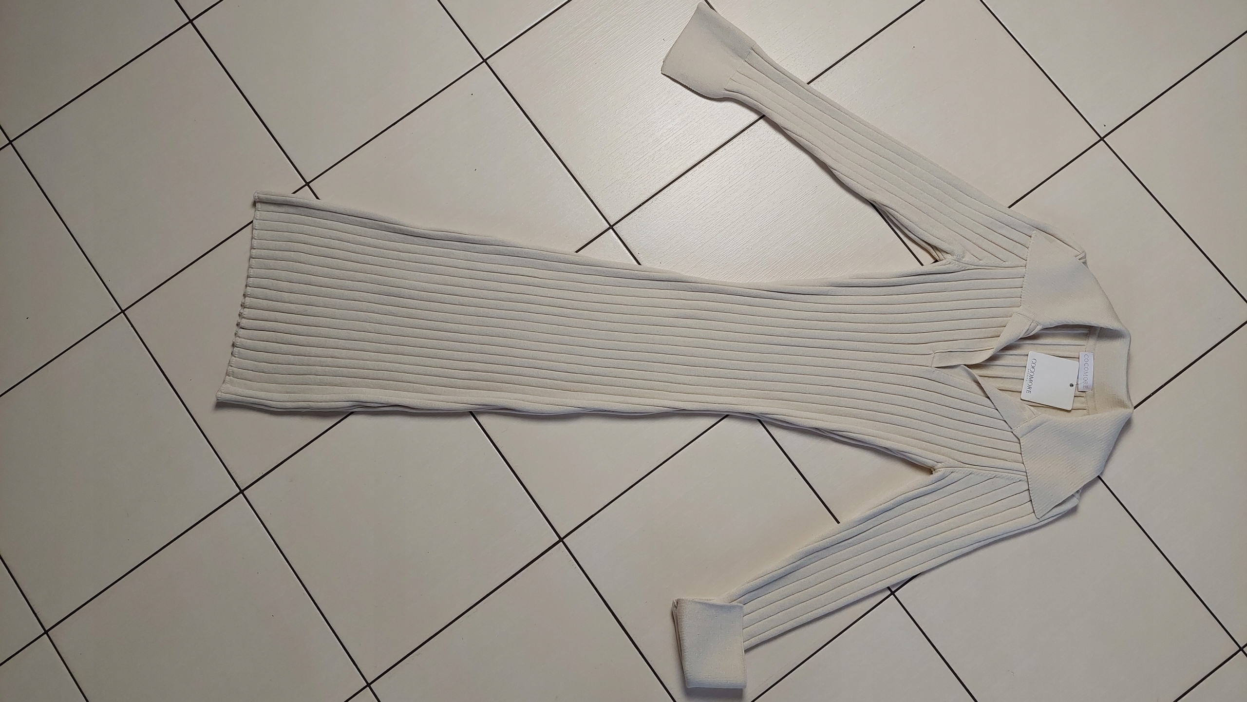 COCOMORE Sukienka Sweterkowa Polo Prążkowana Beżowa UNI Nowość