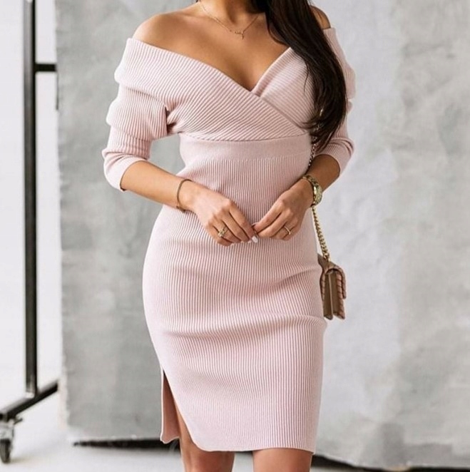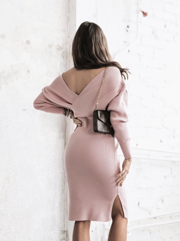- Elegancka sukienka, wykonana z wysokiej jakości sweterkowego materiału. Szyku dodaje taliowany krój oraz dekolt V. Dodatkowym atutem są rękawy ze ściągaczem