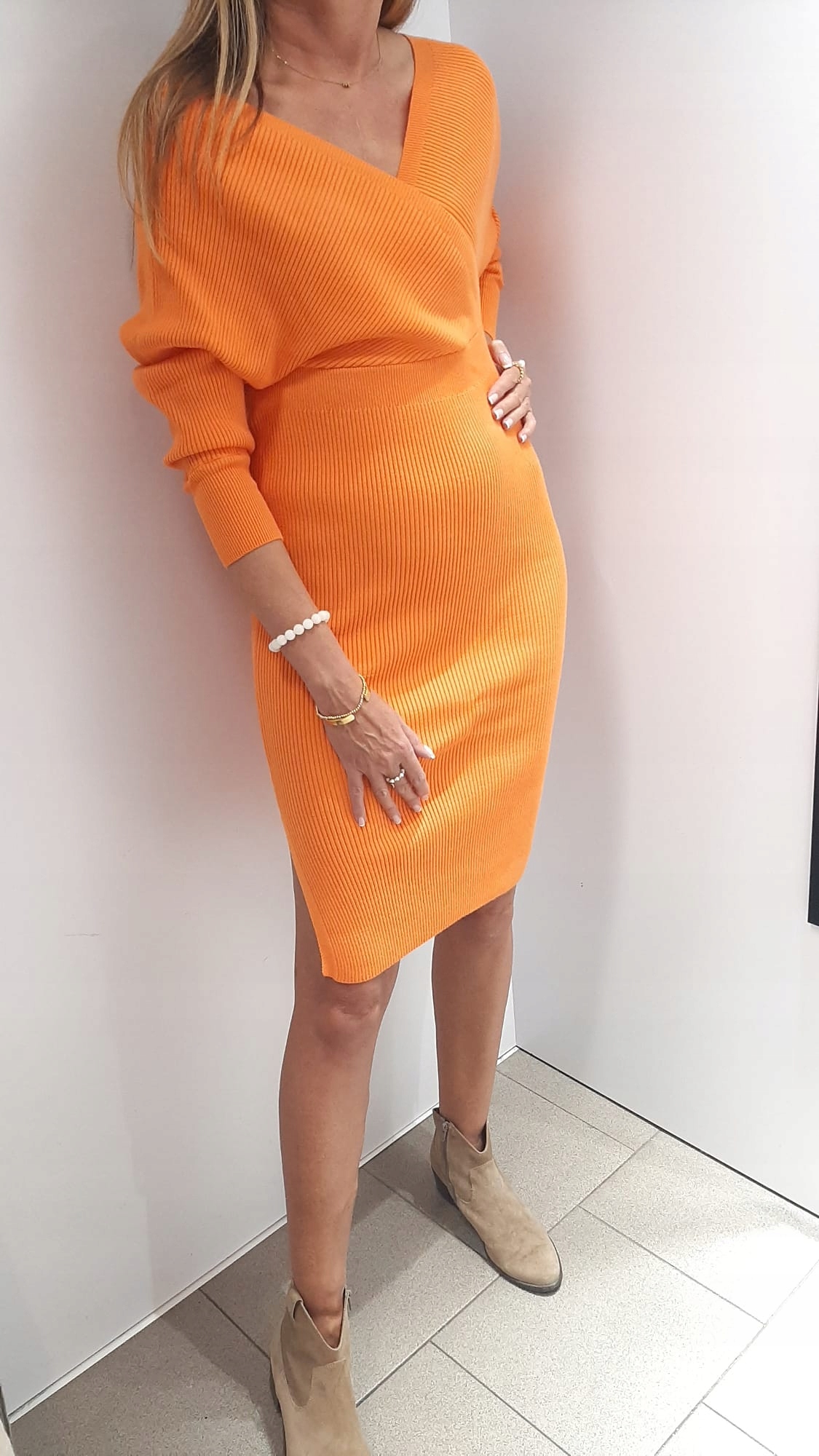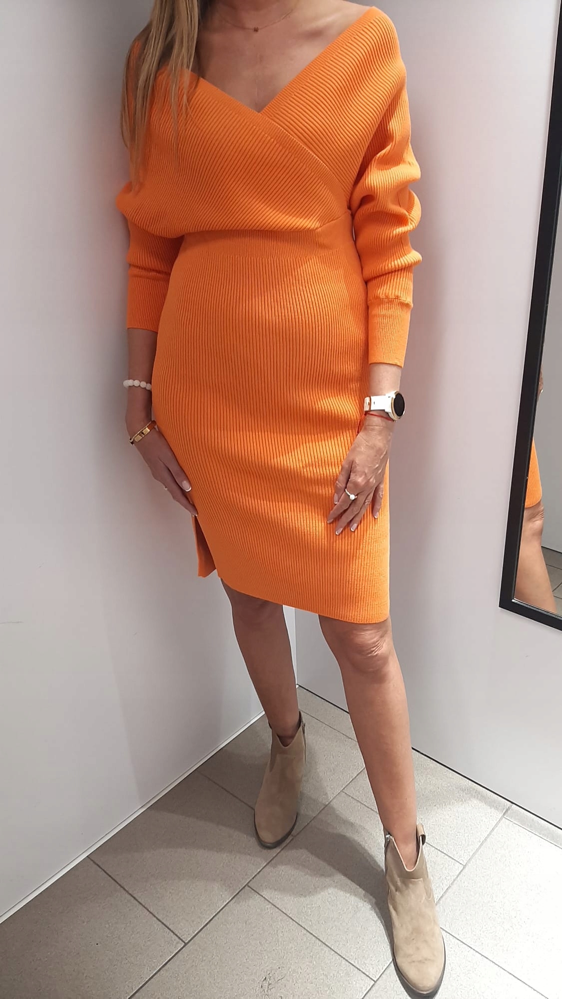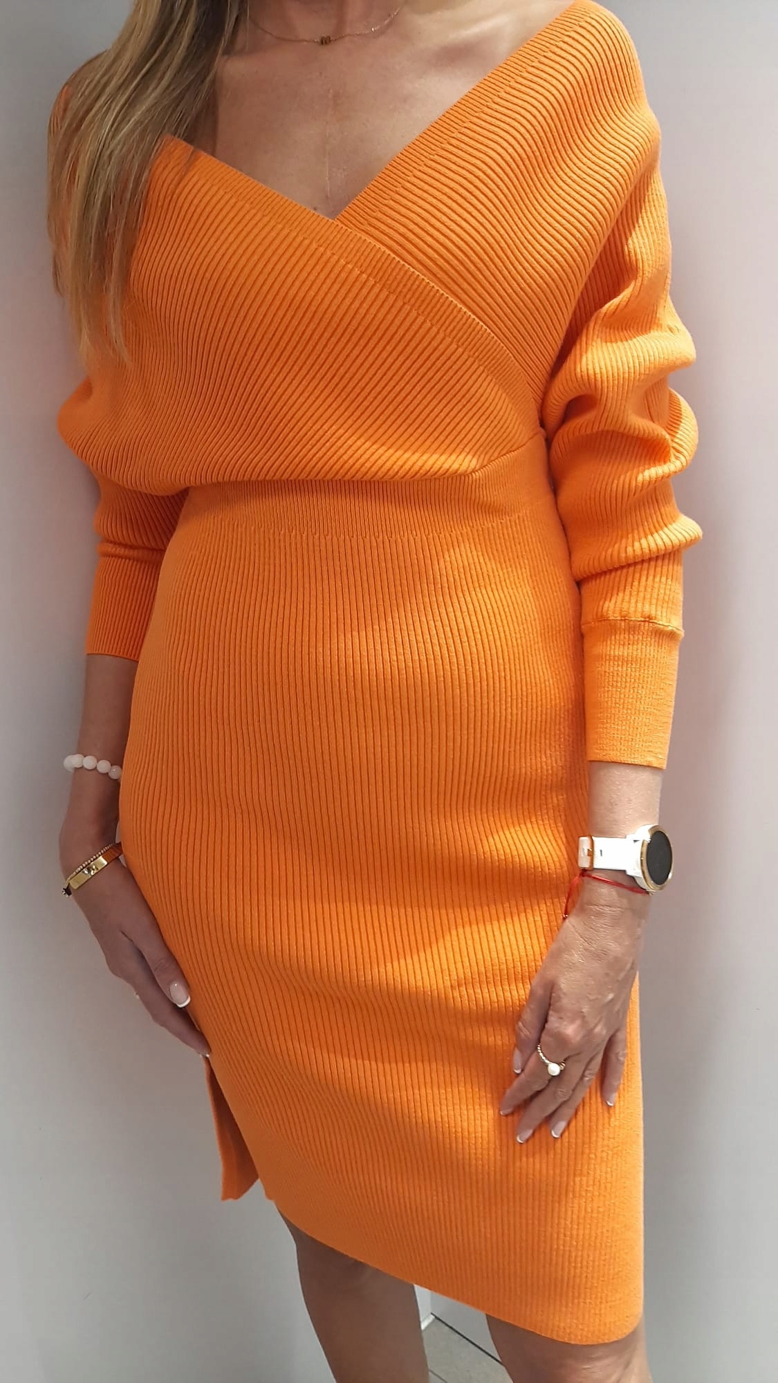 COCOMORE Sukienka Sweterkowa V Pomarańczowa