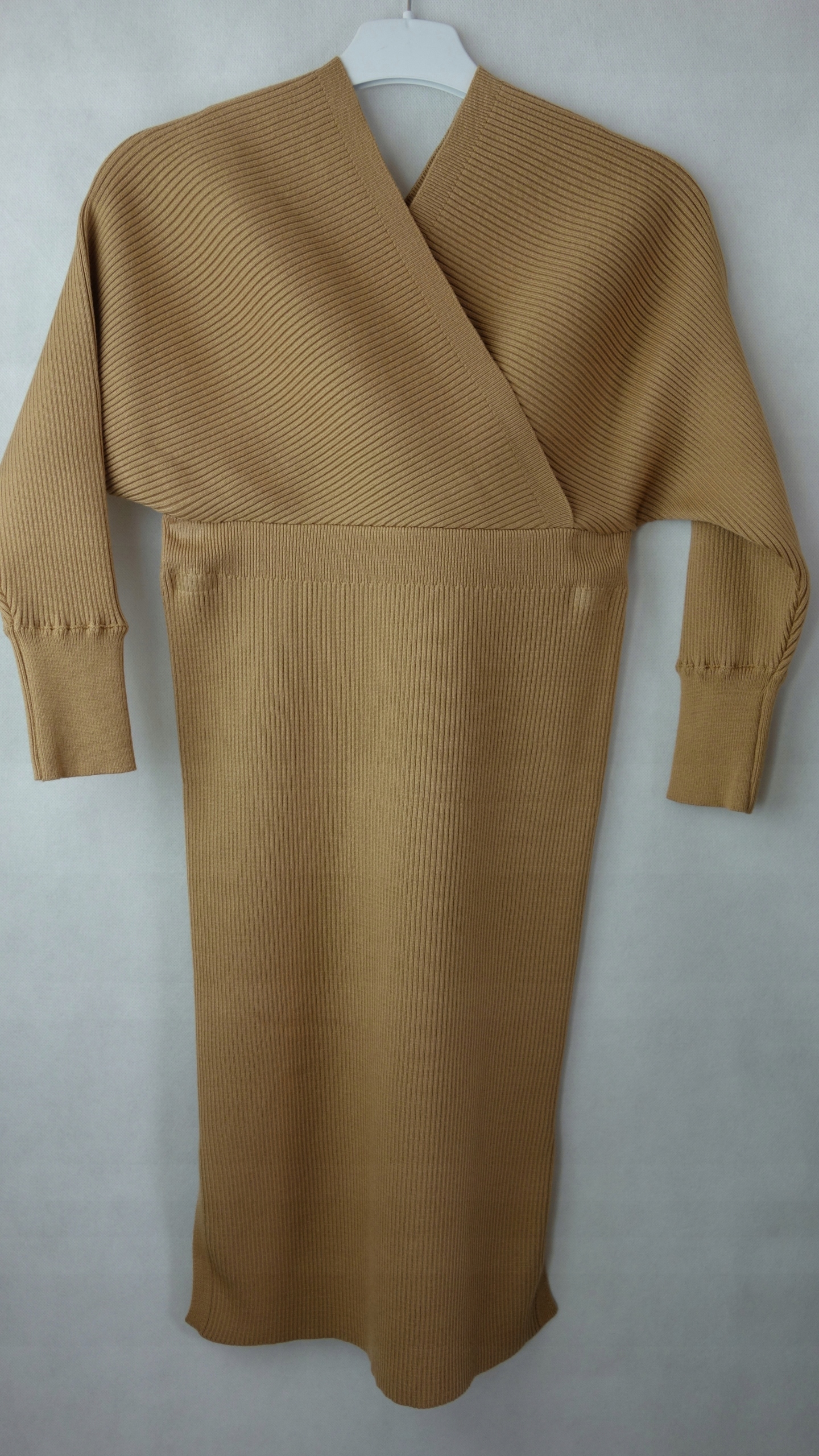 - Elegancka sukienka, wykonana z wysokiej jakości sweterkowego materiału. Szyku dodaje taliowany krój oraz dekolt V. Dodatkowym atutem są rękawy ze ściągaczem