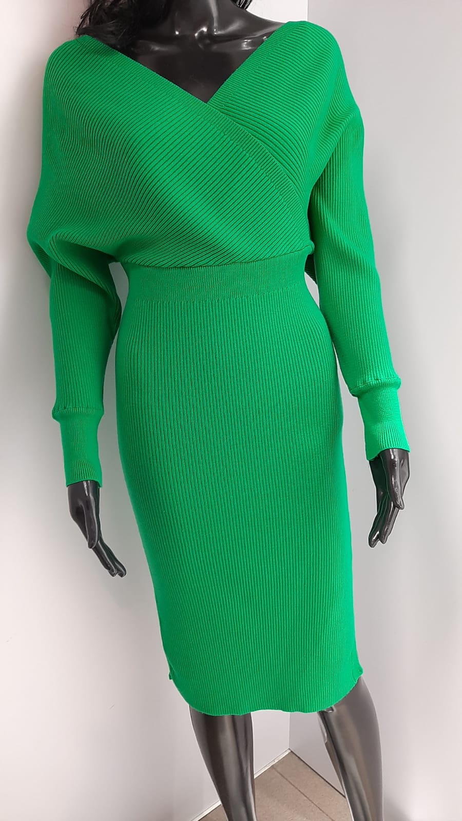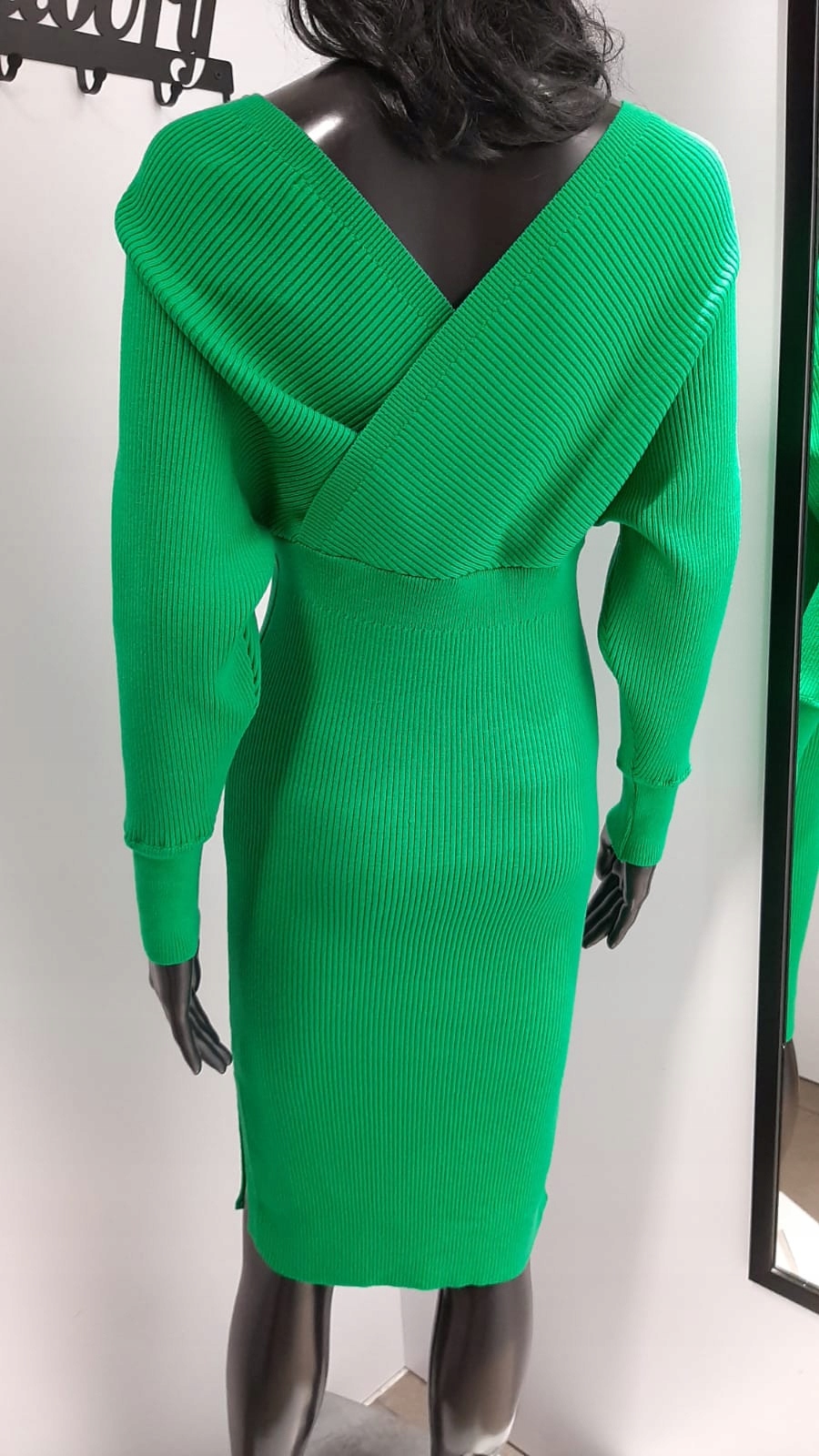 - Elegancka sukienka, wykonana z wysokiej jakości sweterkowego materiału. Szyku dodaje taliowany krój oraz dekolt V. Dodatkowym atutem są rękawy ze ściągaczem