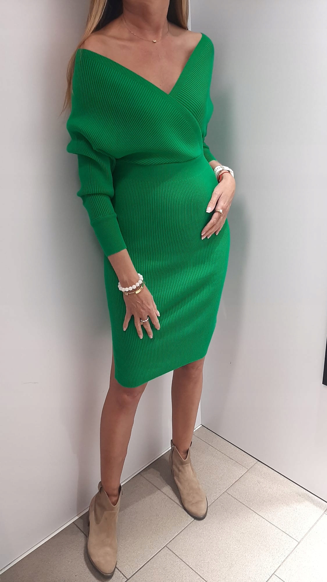 COCOMORE Sukienka Sweterkowa V Zielona