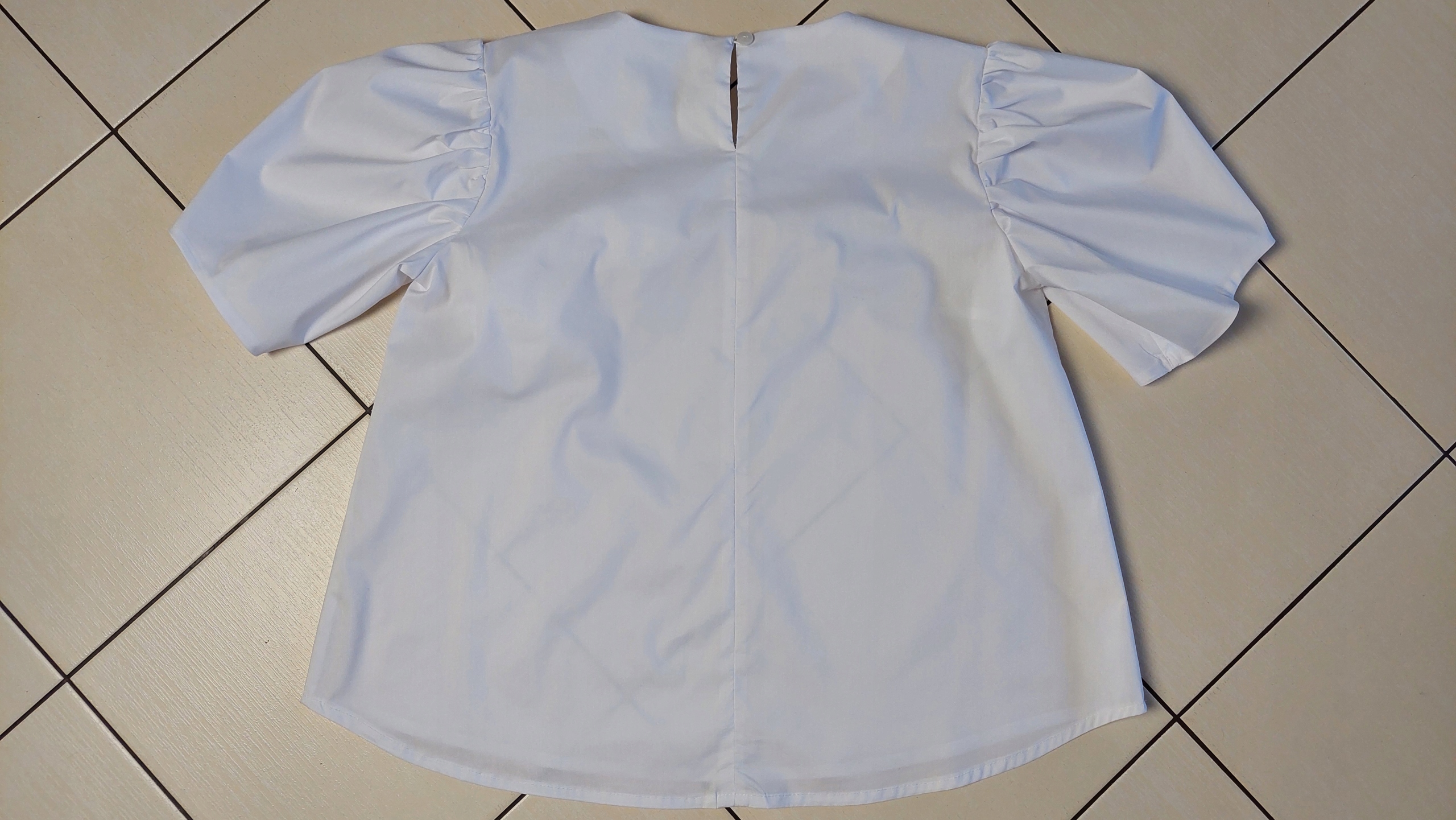 - Rewelacyjna bluzka, wykonana z koszulowego materiału. Charakteru nadają bufiaste rękawy oraz ozdobne kwiaty z tego samego materiału, przypinane na agrafkę. Dodatkowo na przodzie znajduje się blaszka z logo producenta. Z tyłu na górze zapięcie na guzik. Luźny krój zapewni wygodę