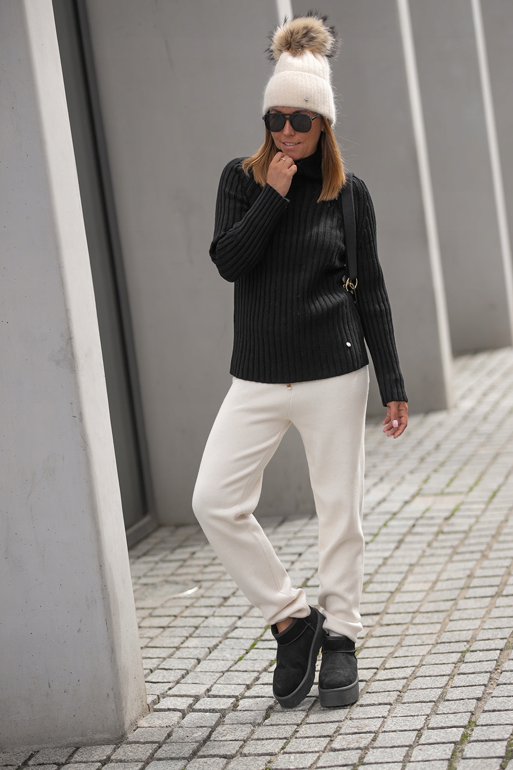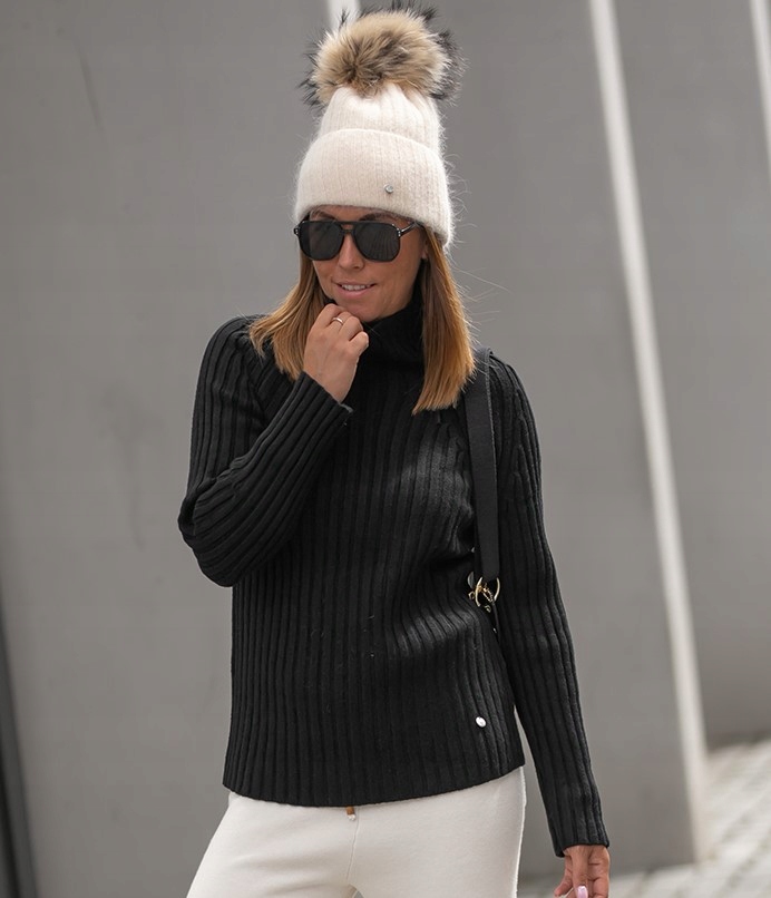 BASTET Sweter w Prążki Półgolf Czarny NEW