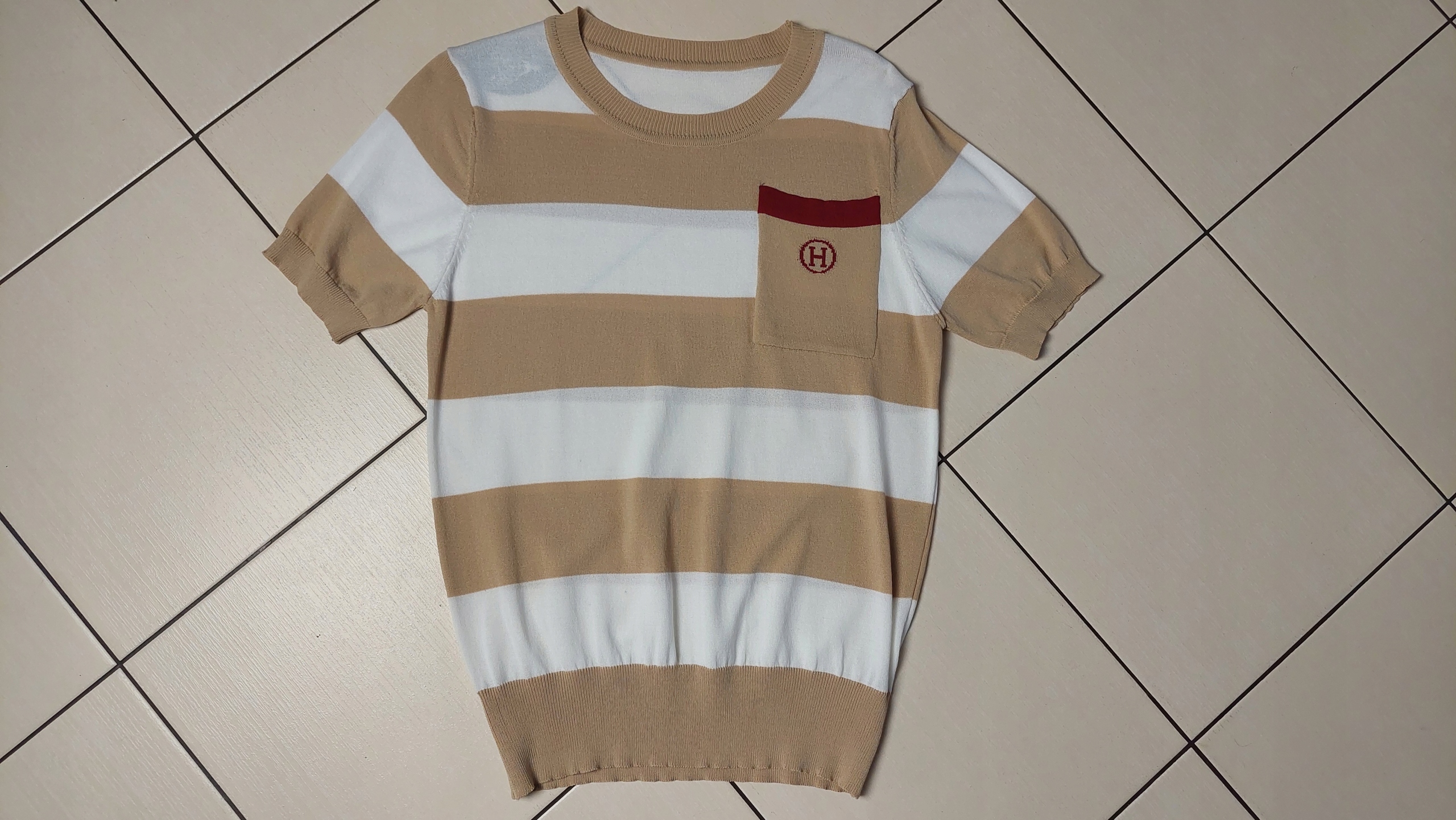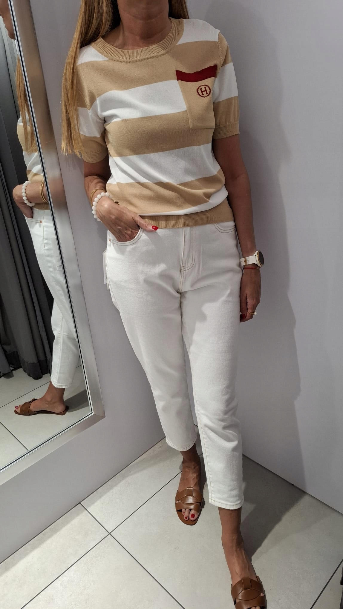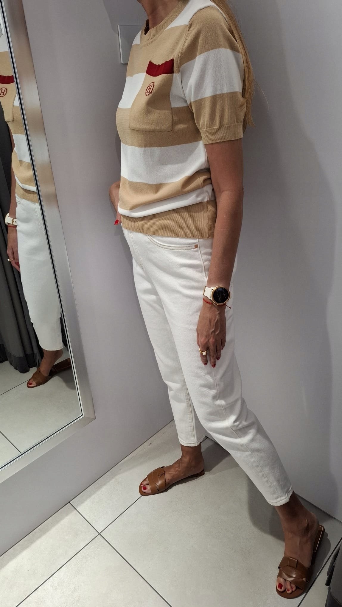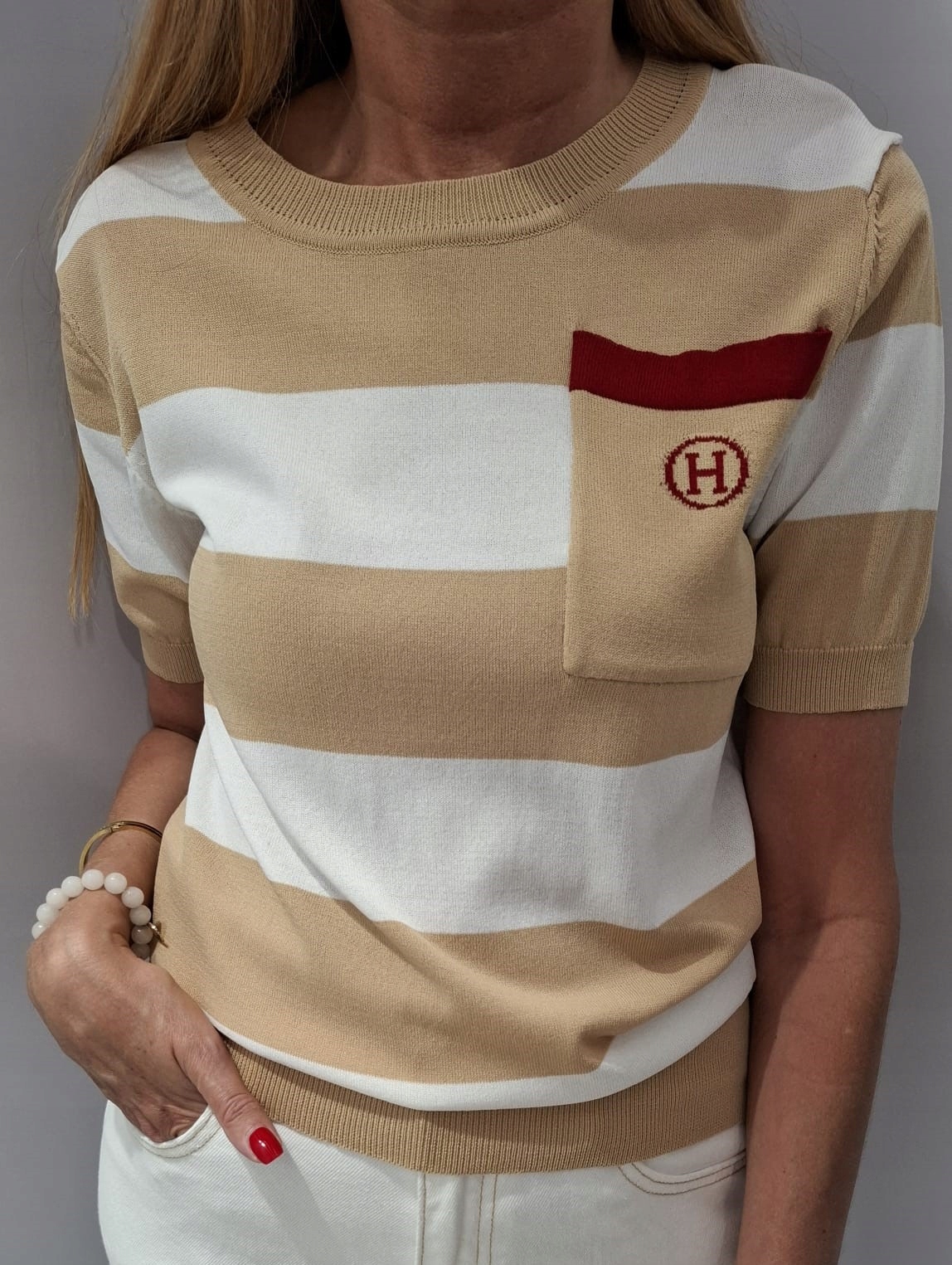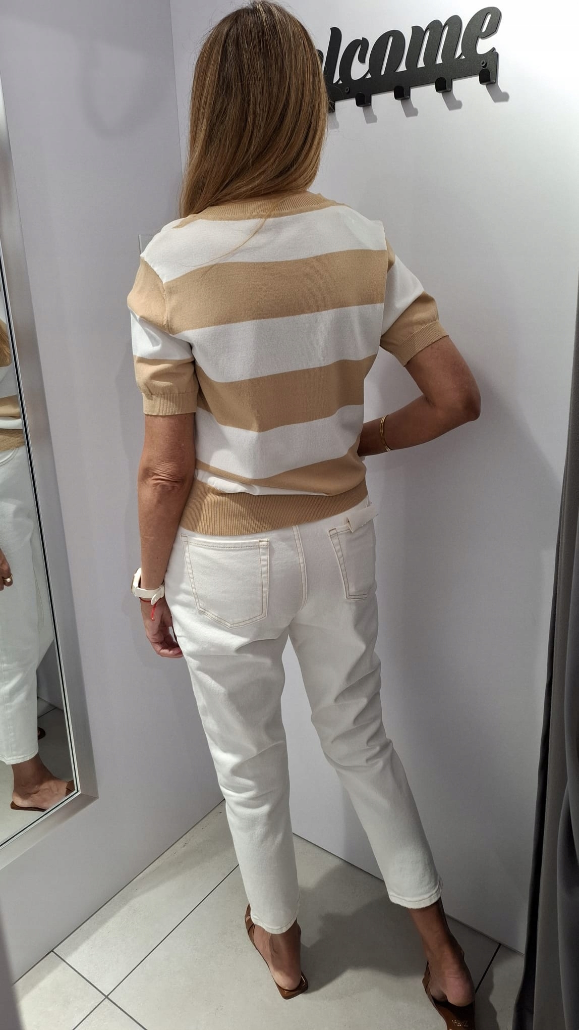 Bluzka w Paski z kieszonką Camel + Biały 36 – 40 NEW