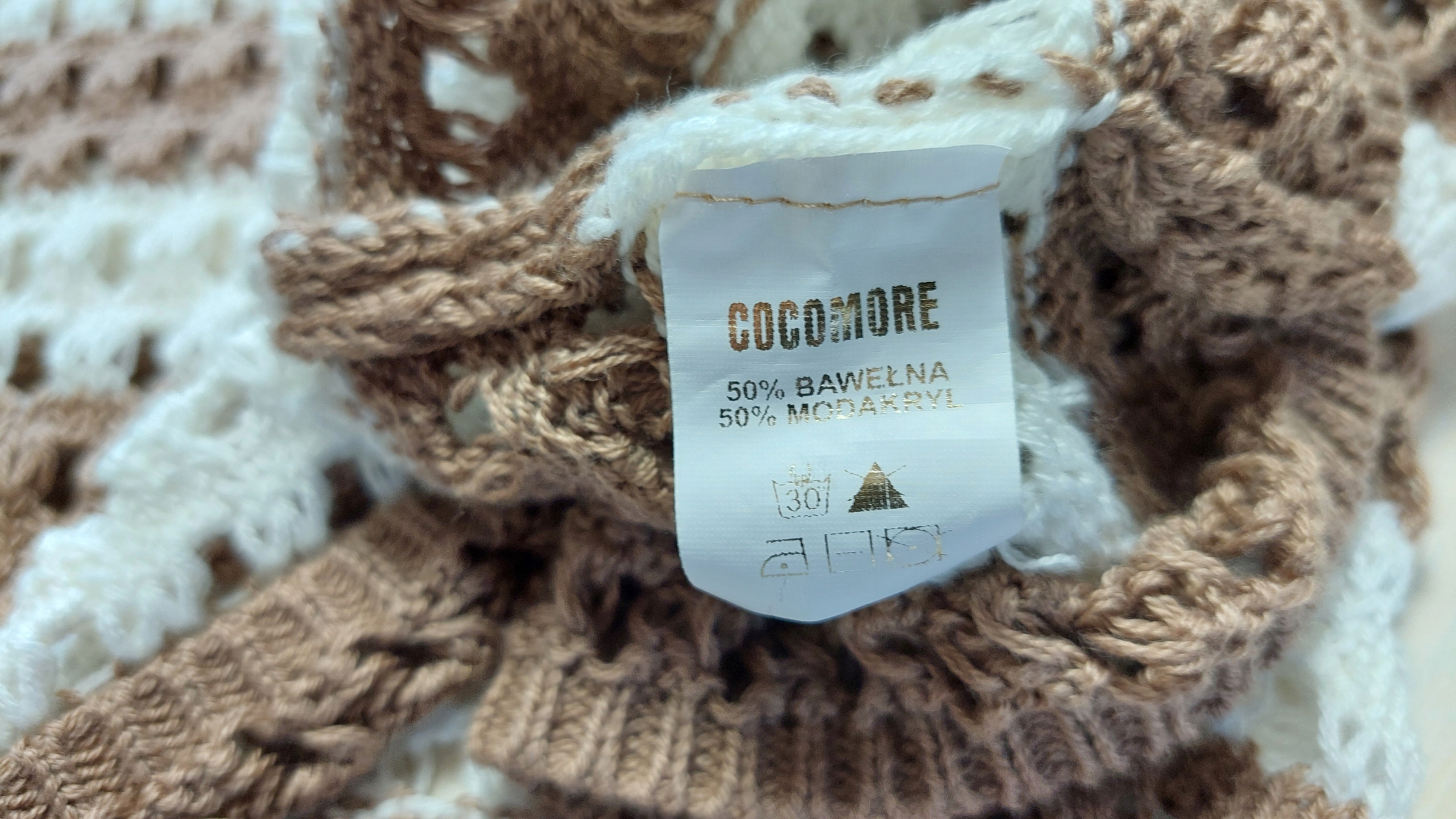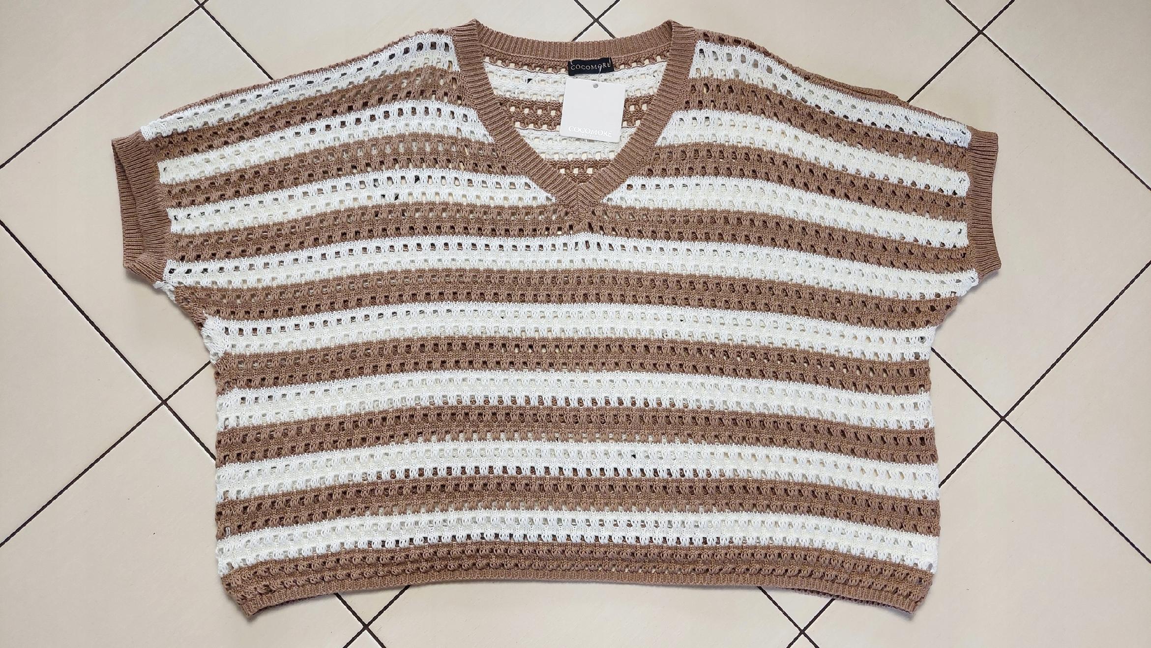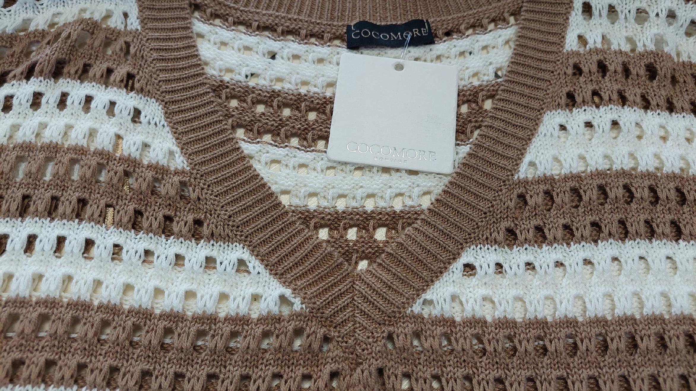 COCOMORE Ażurowy Sweter w Pasy Camelowy + Ecru Nowość