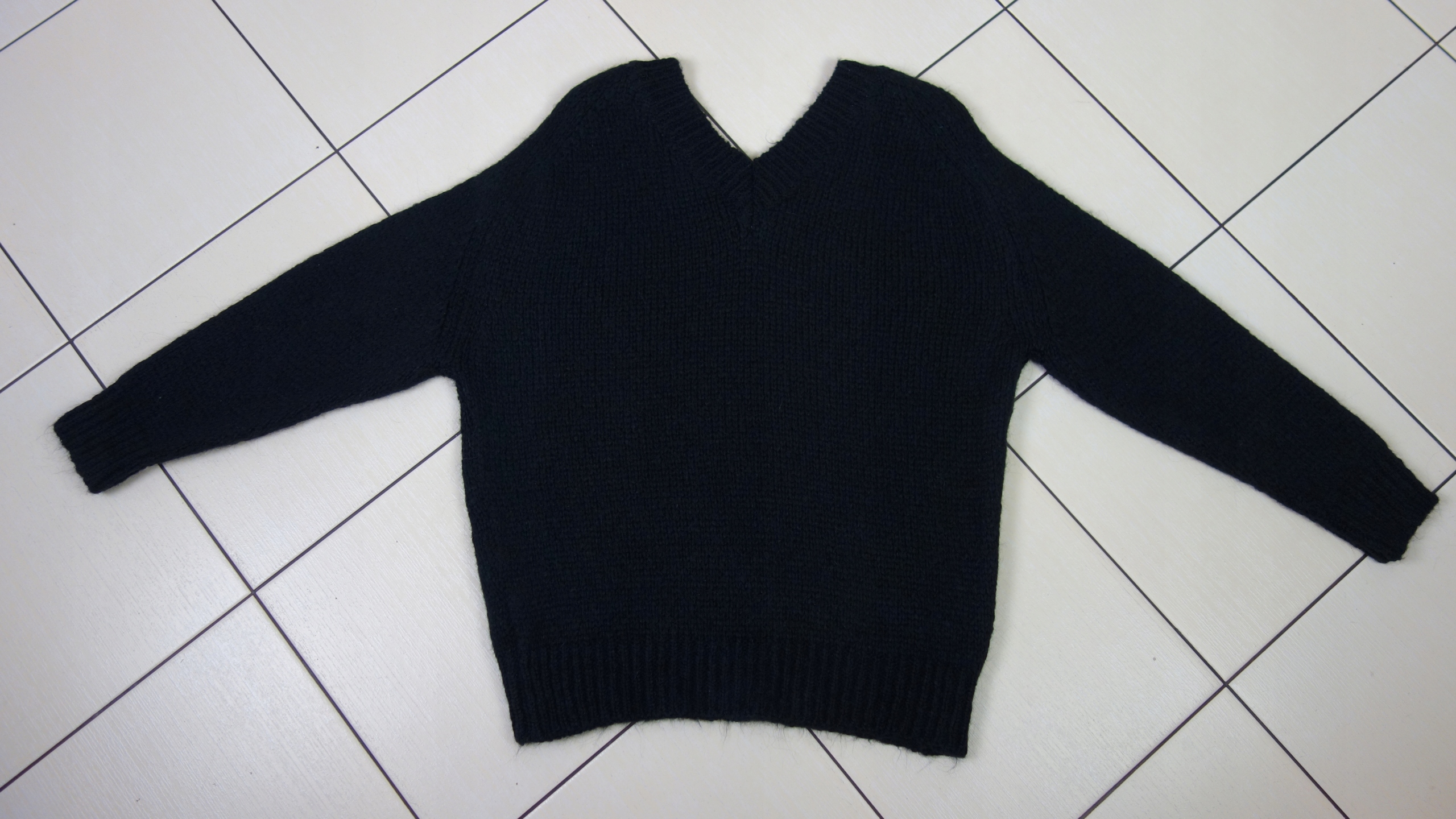 - Ponadczasowy sweterek z dekoltem V z przodu i z tyłu. Mięciutki i milutki w dotyku. Cienka włóczka