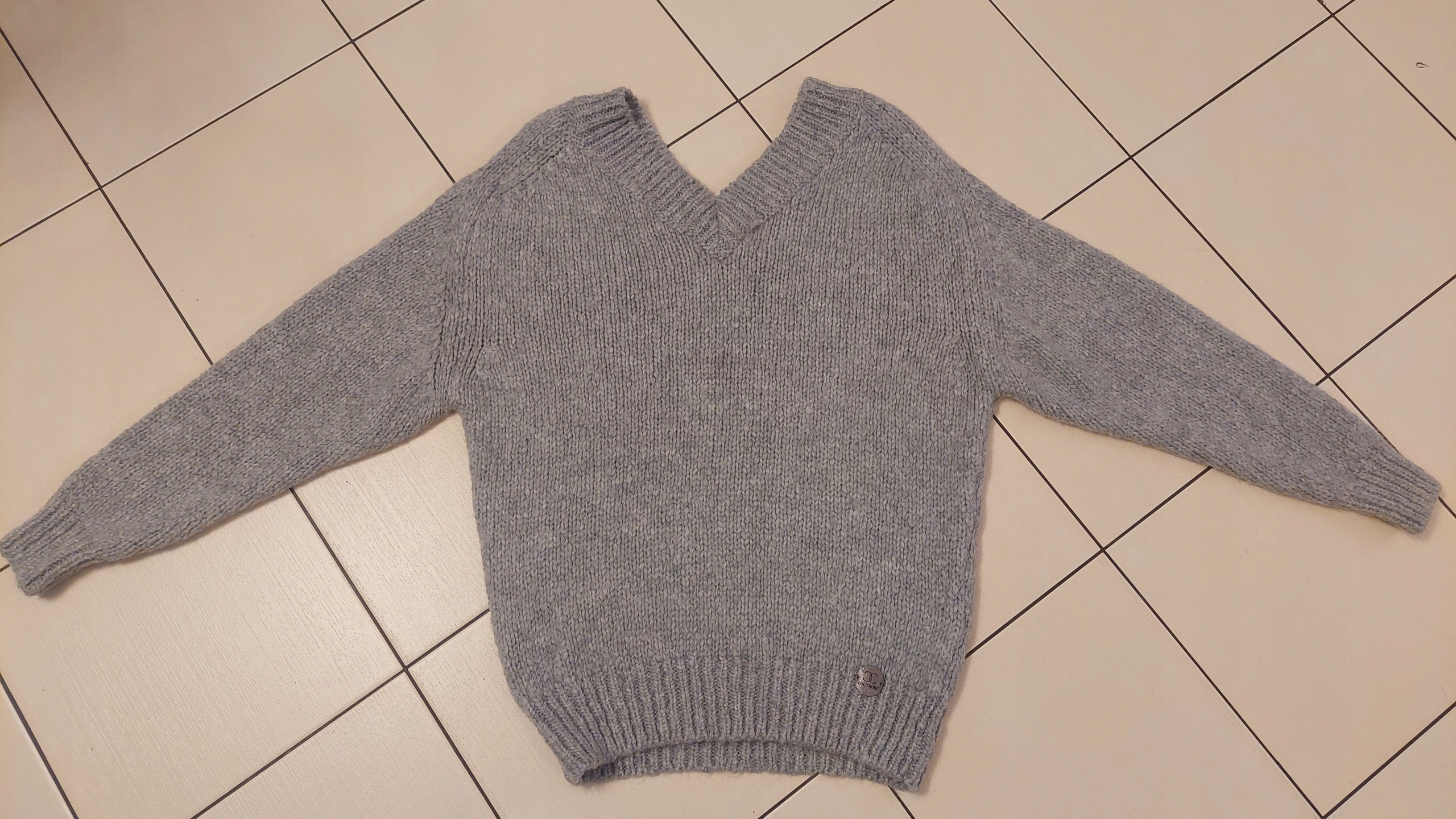 - Ponadczasowy sweterek z dekoltem V z przodu i z tyłu. Mięciutki i milutki w dotyku. Grubsza włóczka. Nowe Logo