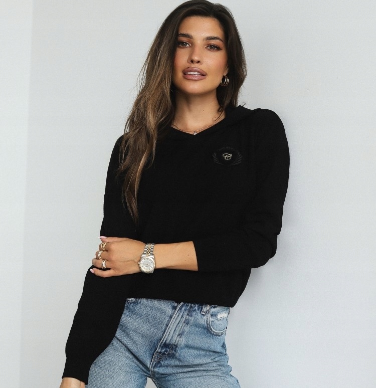 - Fantastyczna sweterkowa bluza z kapturem. Na przodzie naszywka z logo producenta
