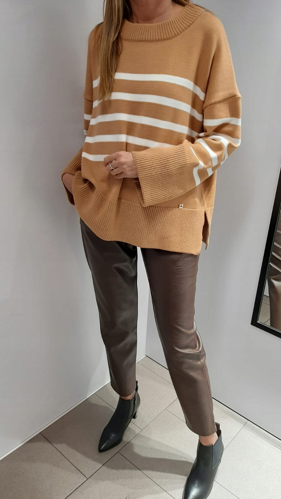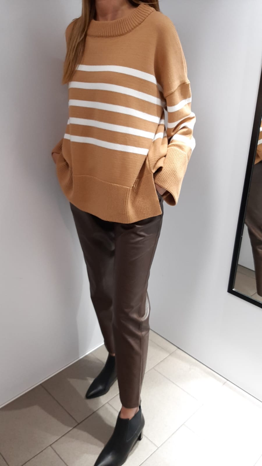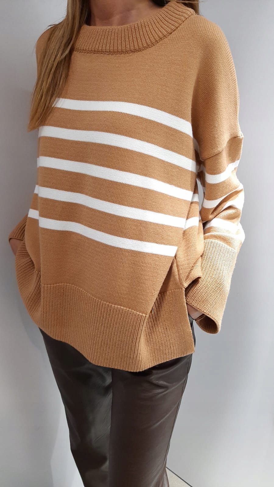 COCOMORE Sweter Camelowy + Biały Paski NEW
