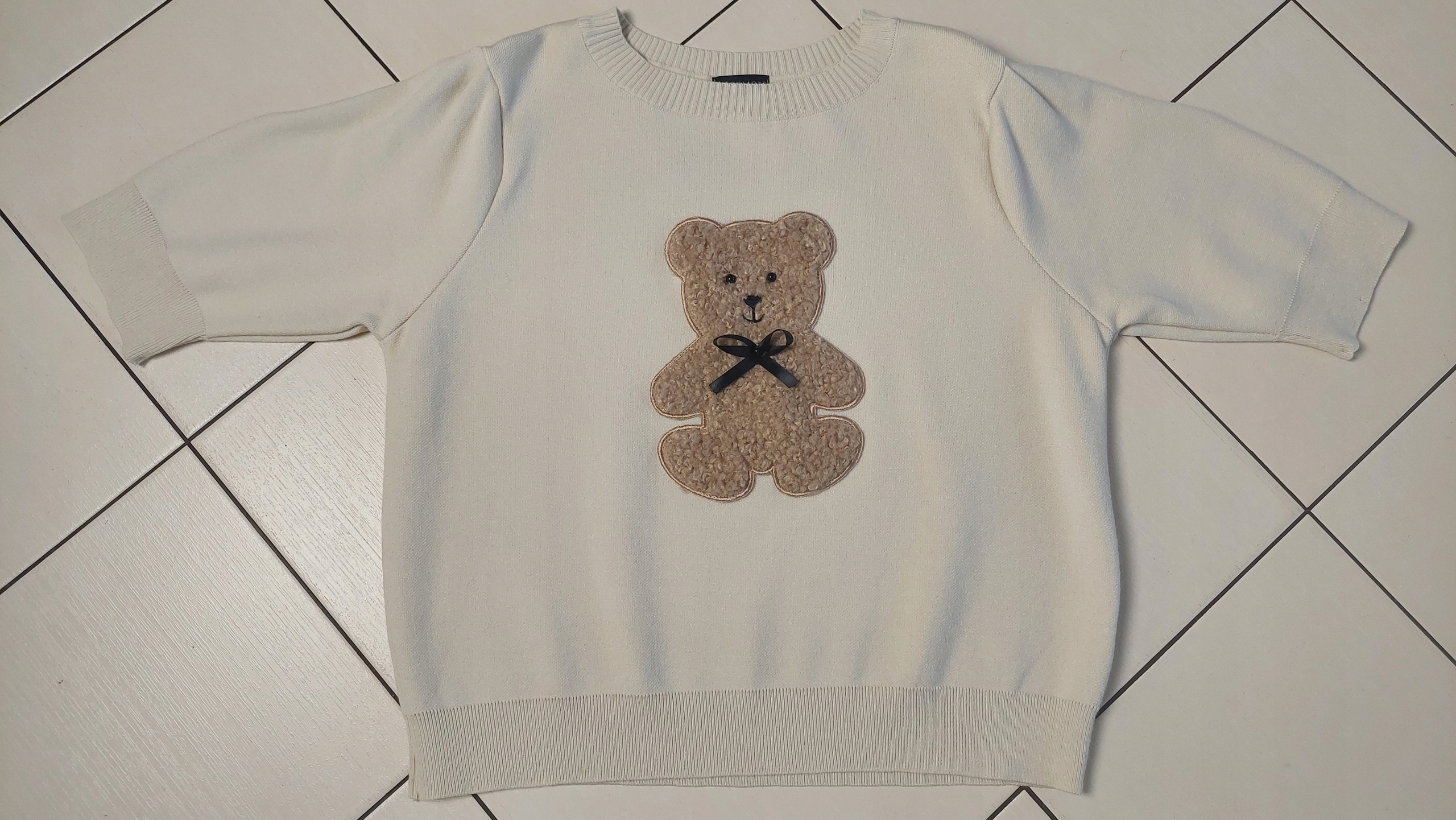 - Efektowny sweter TEDDY. Wykonany z milutkiej i mięciutkiej przędzy. Charakteru nadają duża naszywka na przodzie oraz szerokie rękawy ze ściągaczem