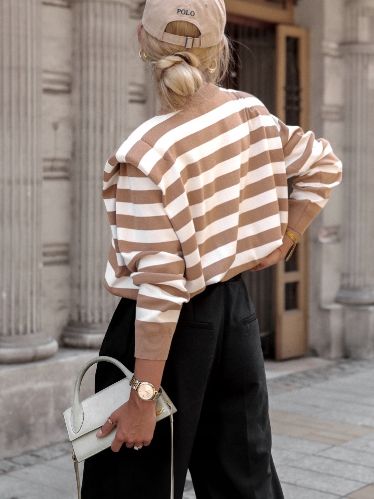 COCOMORE Sweter Czarny + Biały Pasy Poduszki NEW