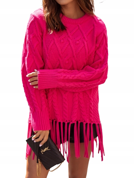 COCOMORE Sweter Frędzelki Różowy Amarantowy