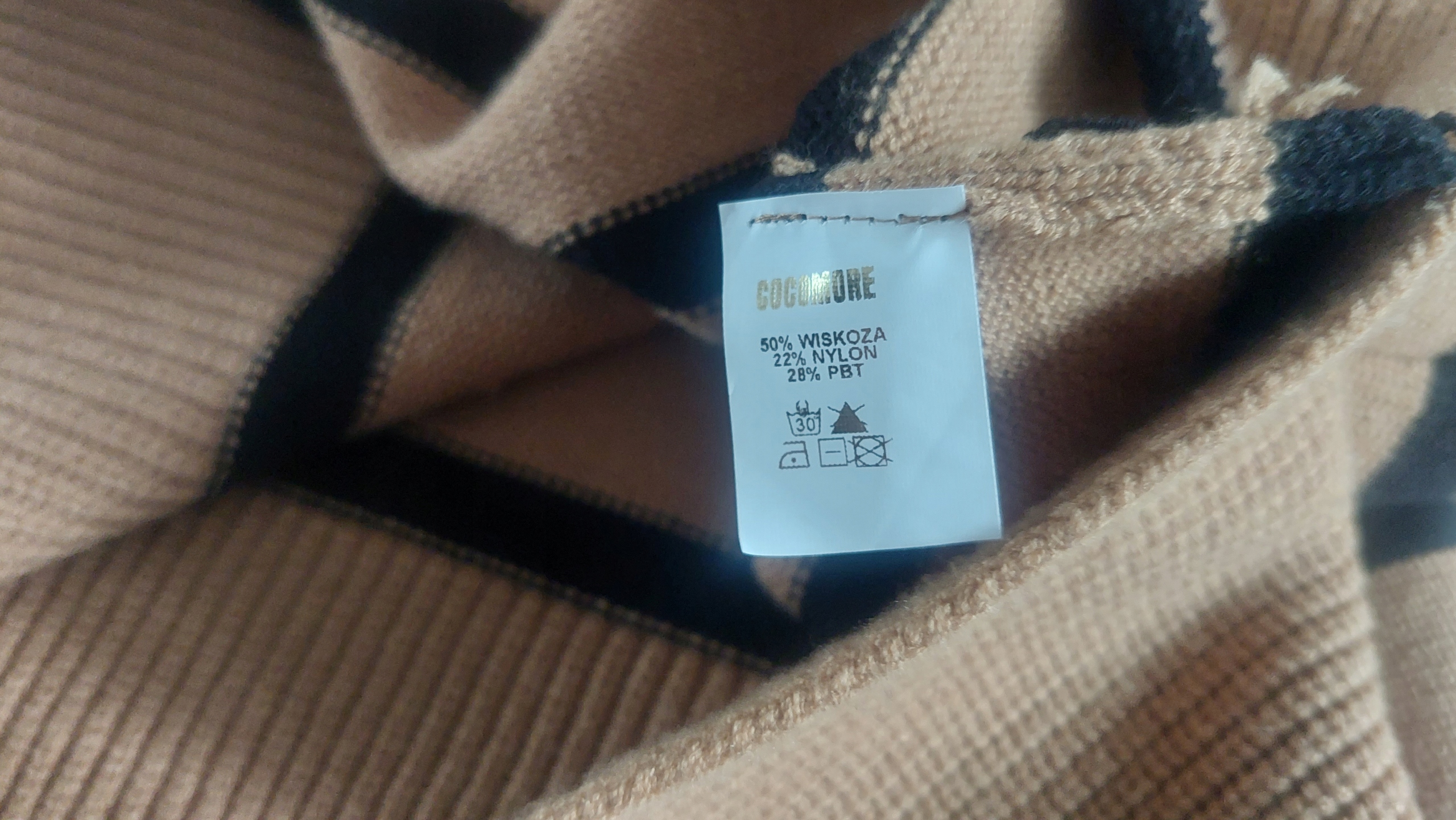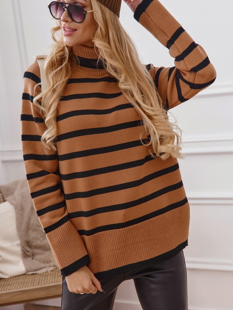 COCOMORE Sweter Golf Karmelowy + Czarny Pasy