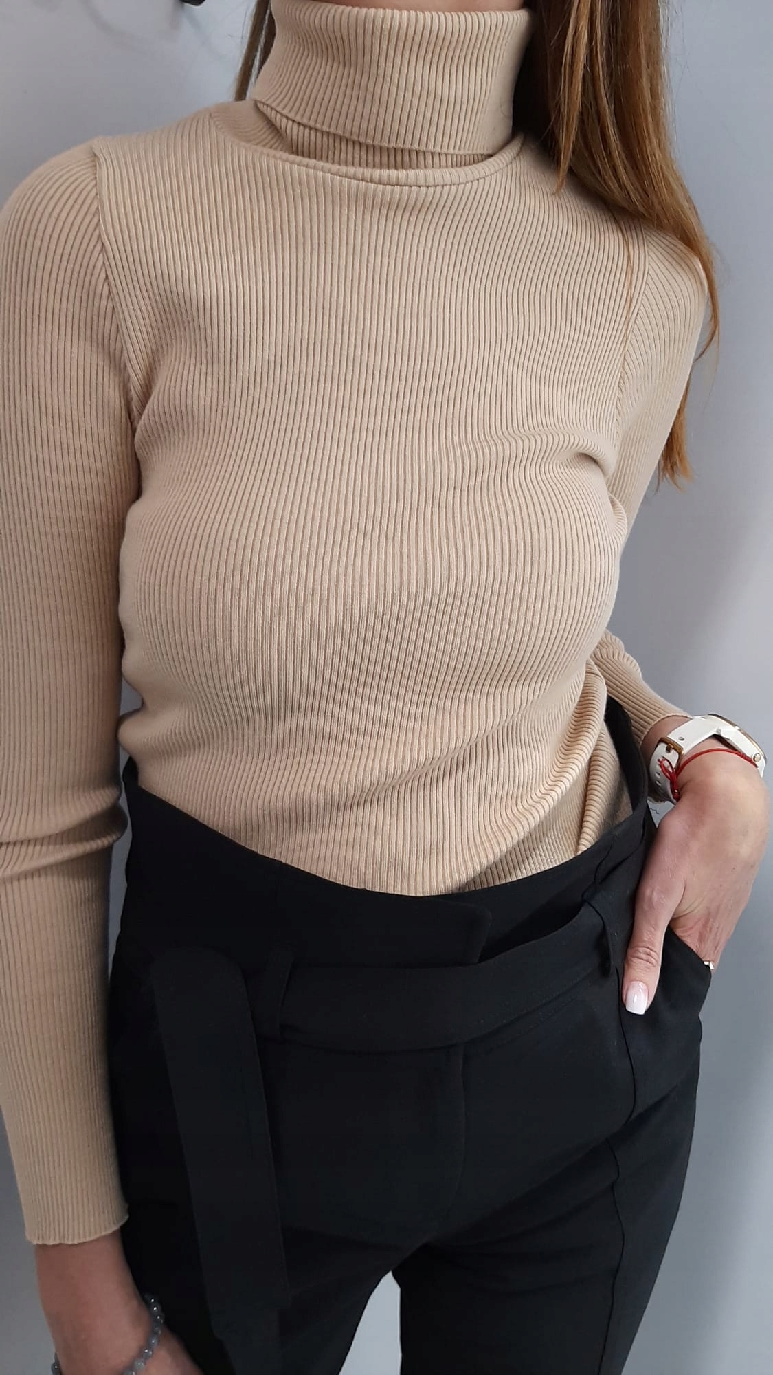COCOMORE Sweter Golf Prążki Ciemny Beżowy NEW