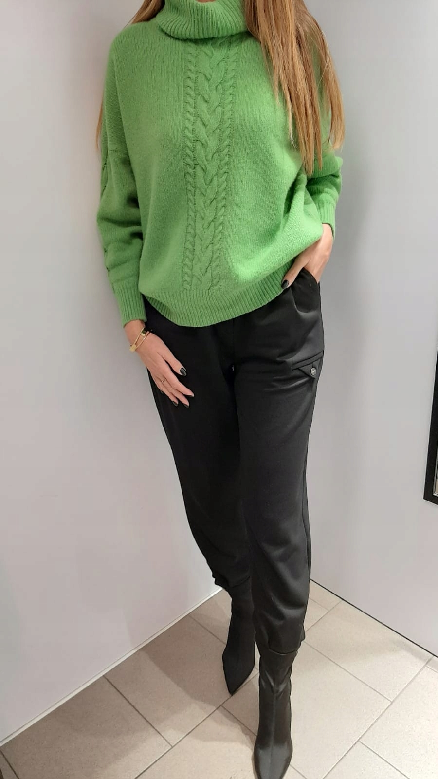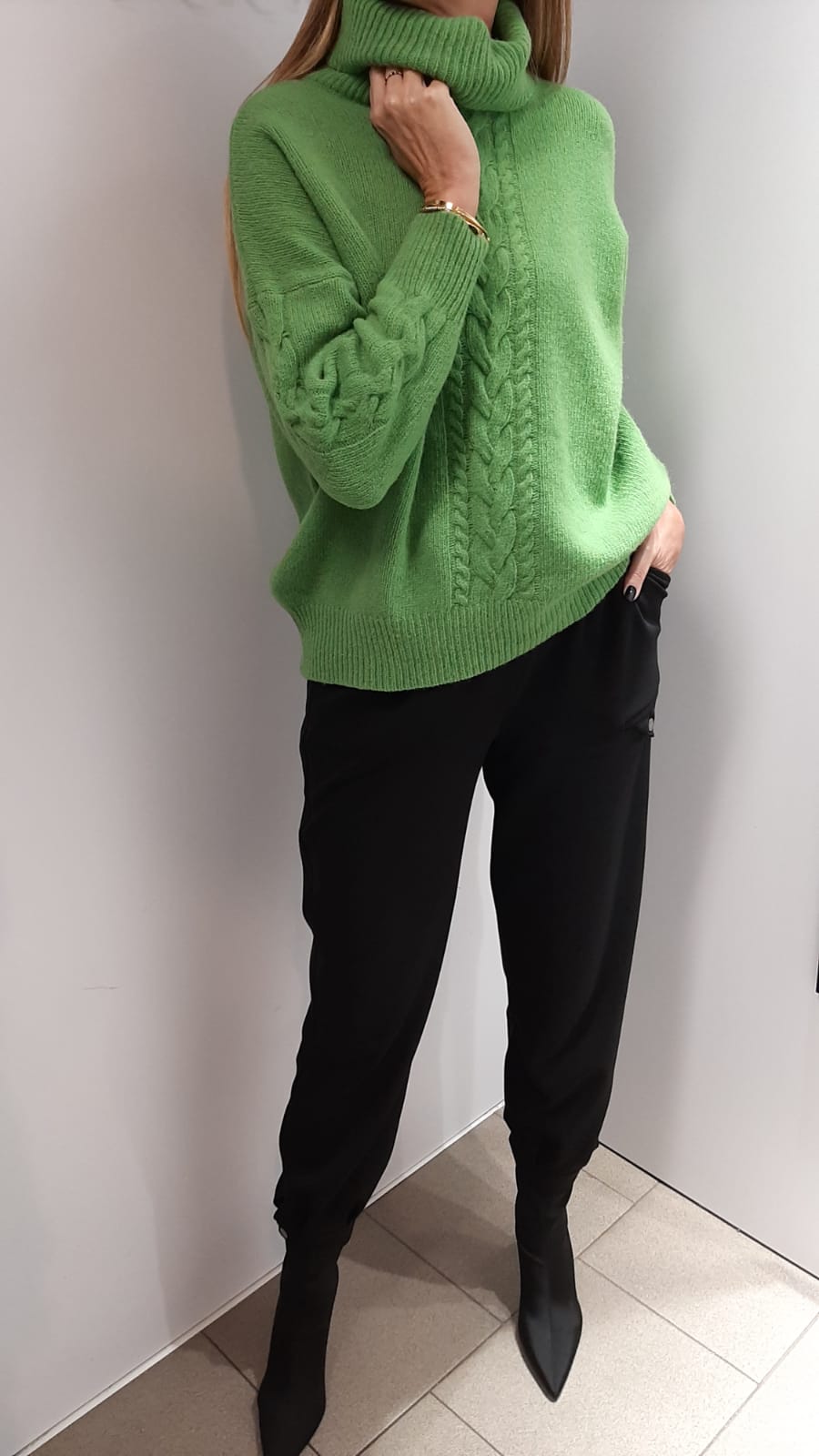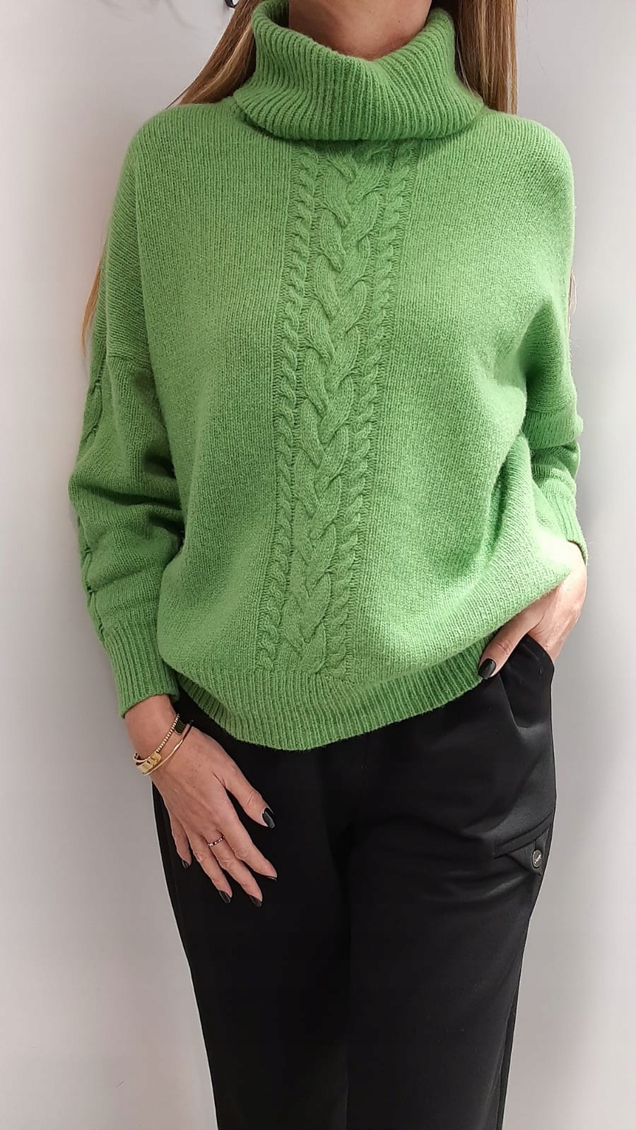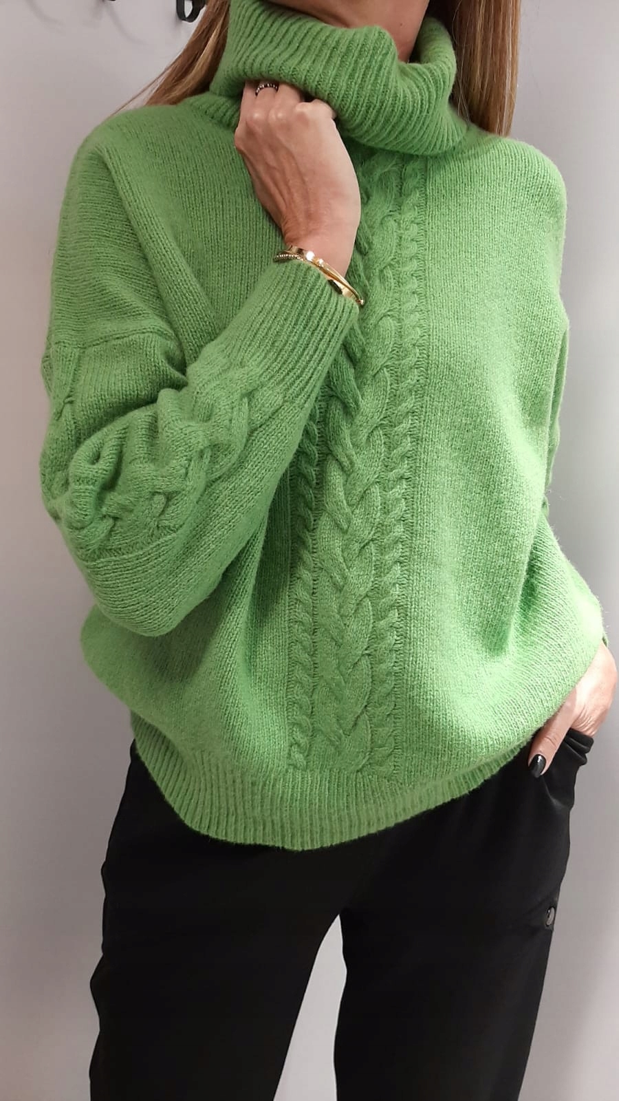 COCOMORE Sweter Golf Zielony Groszek Warkocz