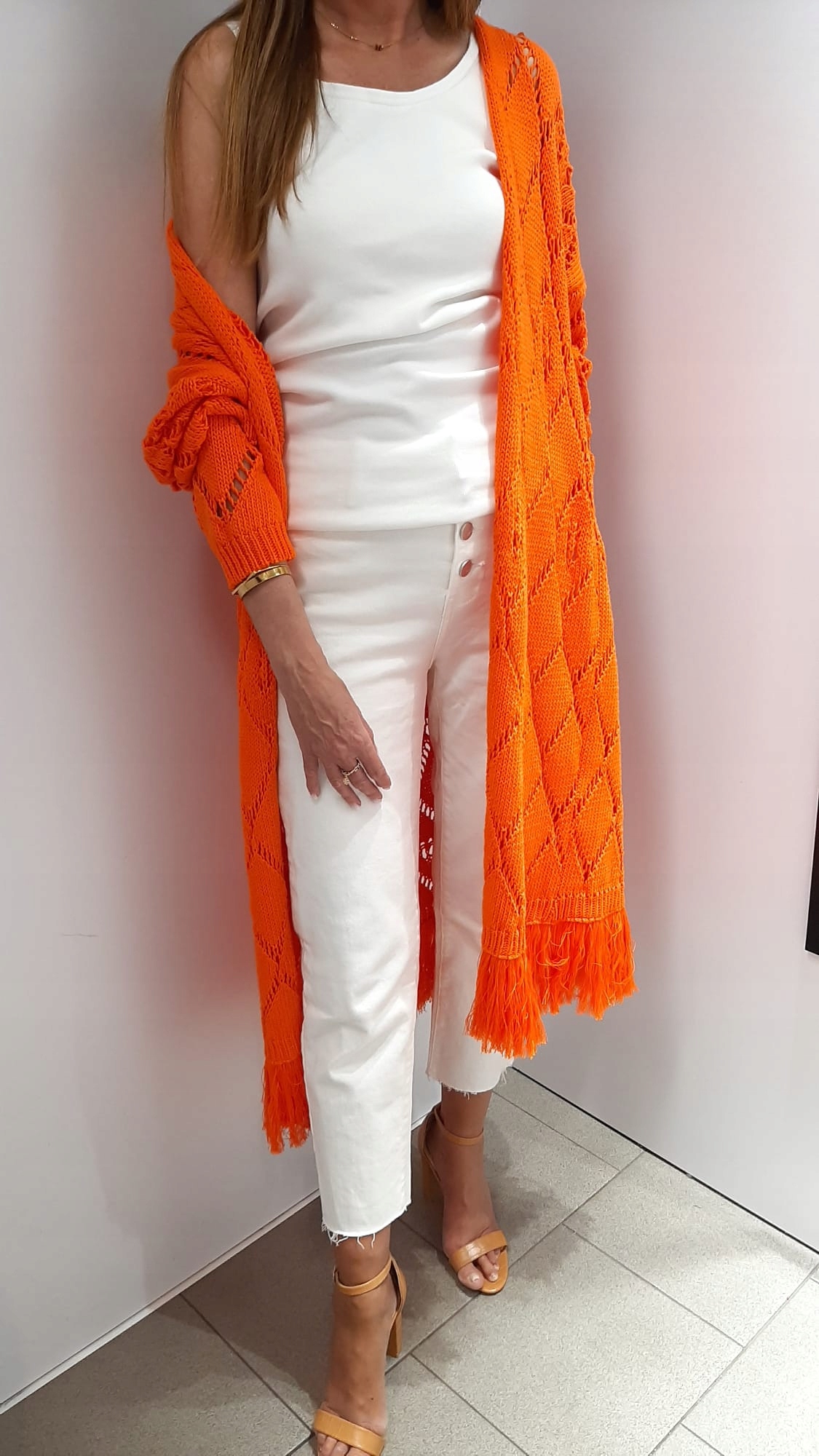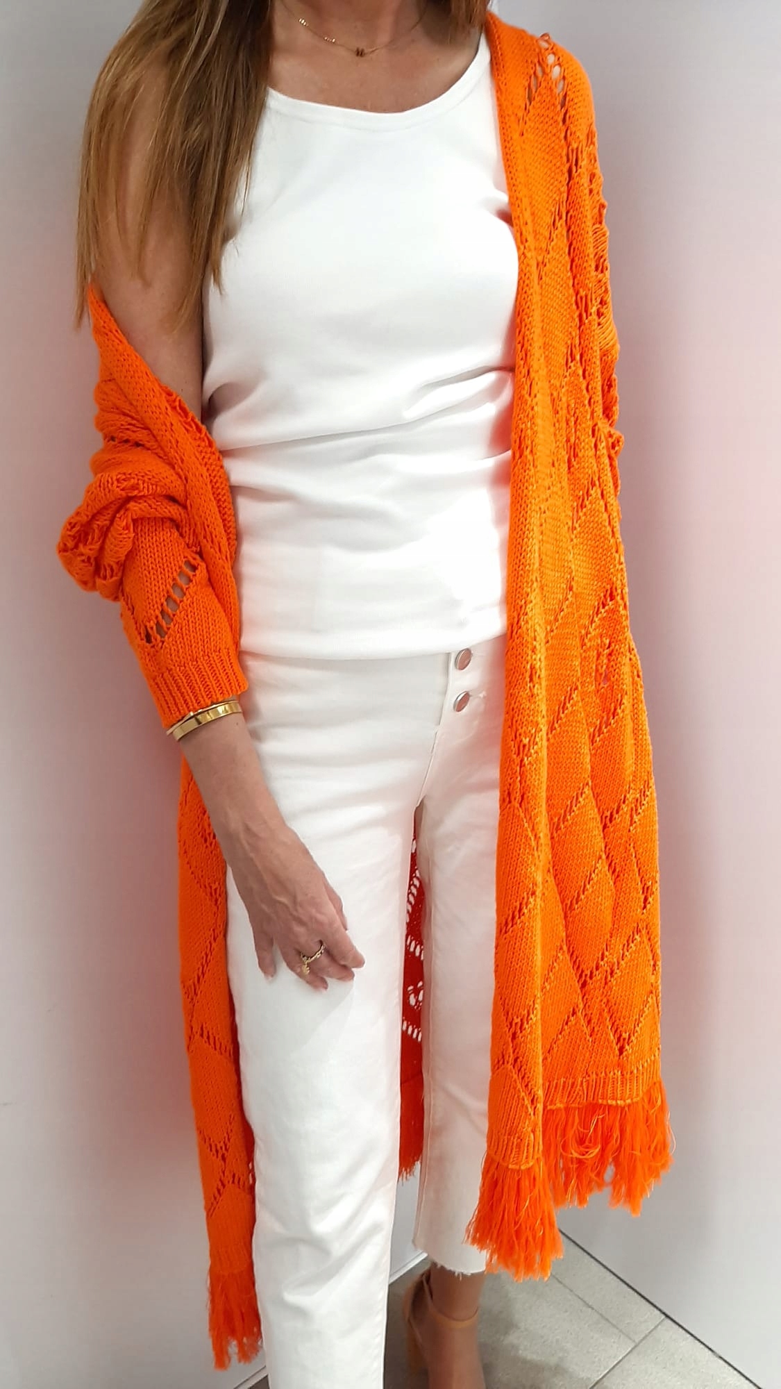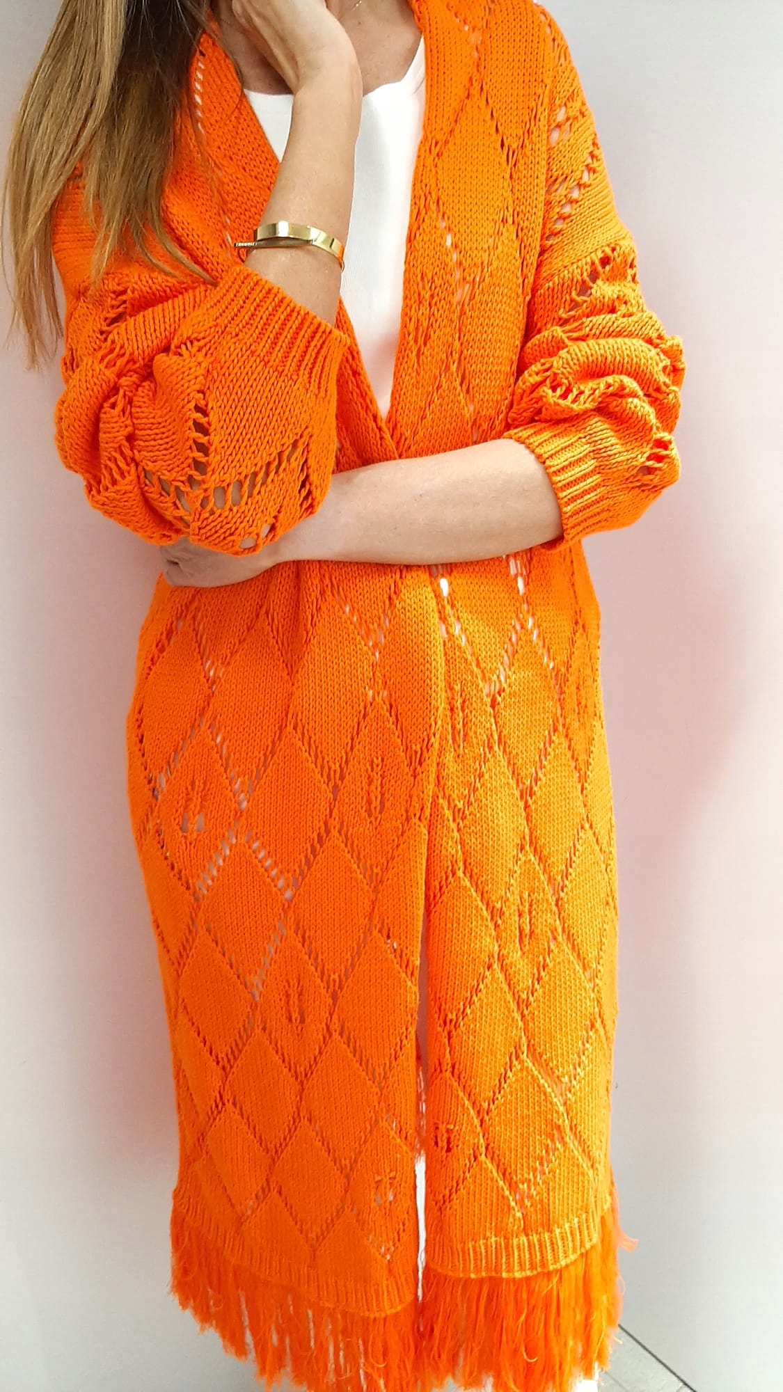 COCOMORE Sweter Kardigan Frędzelki Pomarańczowy